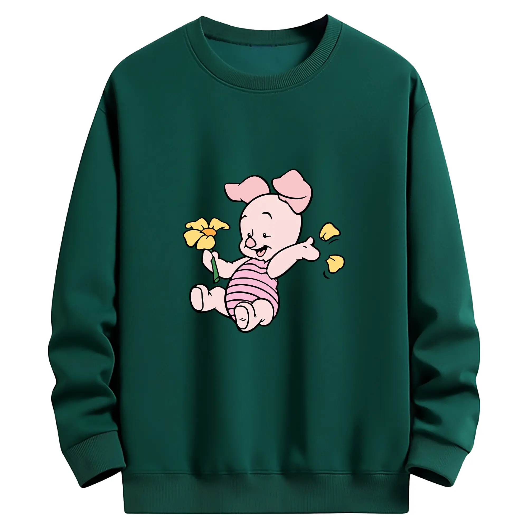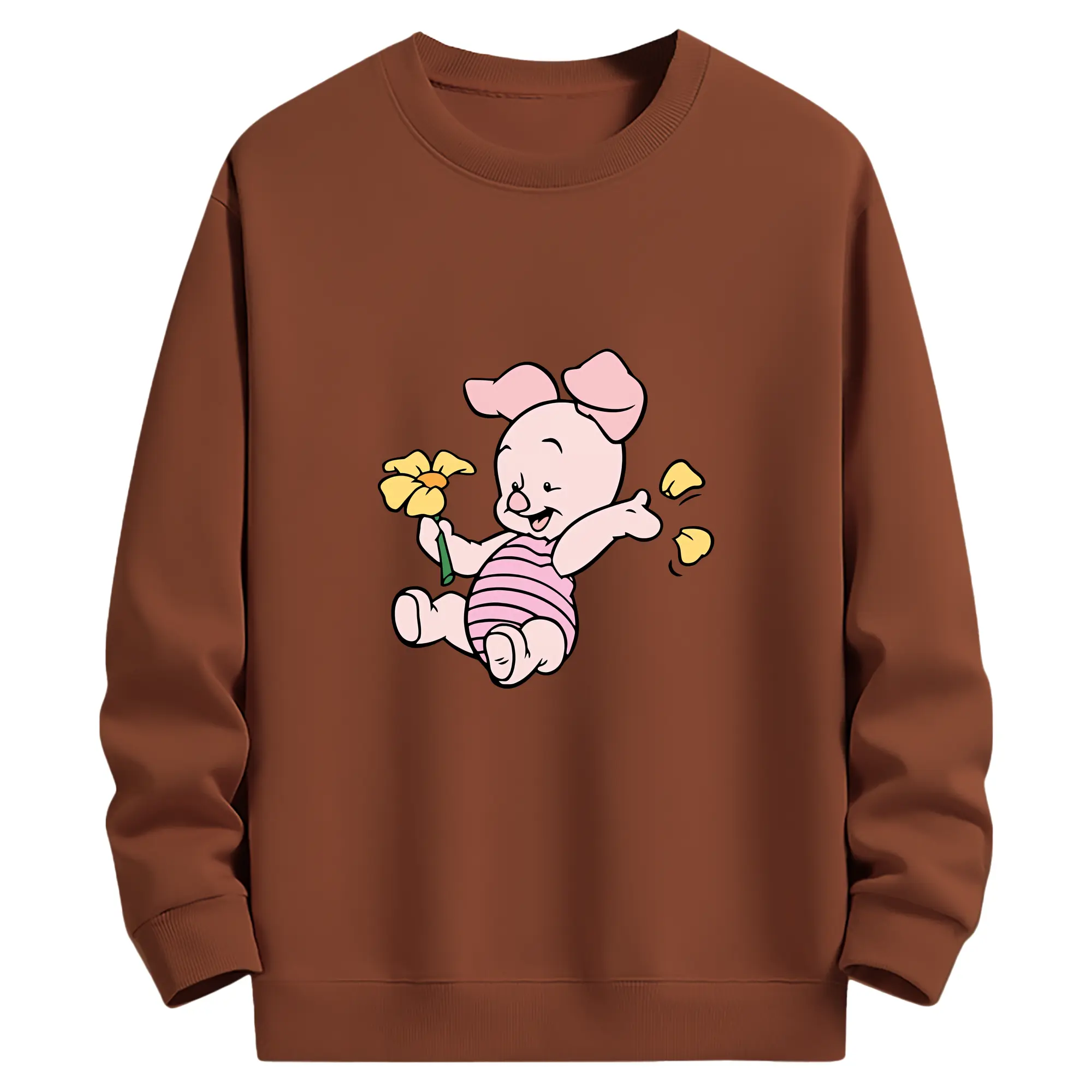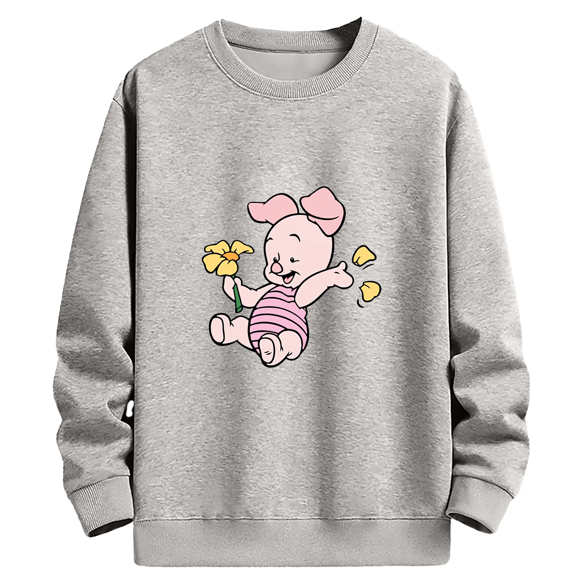 プーさん グッズ ピグレット - 薄手 クルーネック スウェット 裏毛260g · ポリエステル 春秋向け カジュアル 男女兼用 · トレーナー デイリー スポーツ 散歩に最適