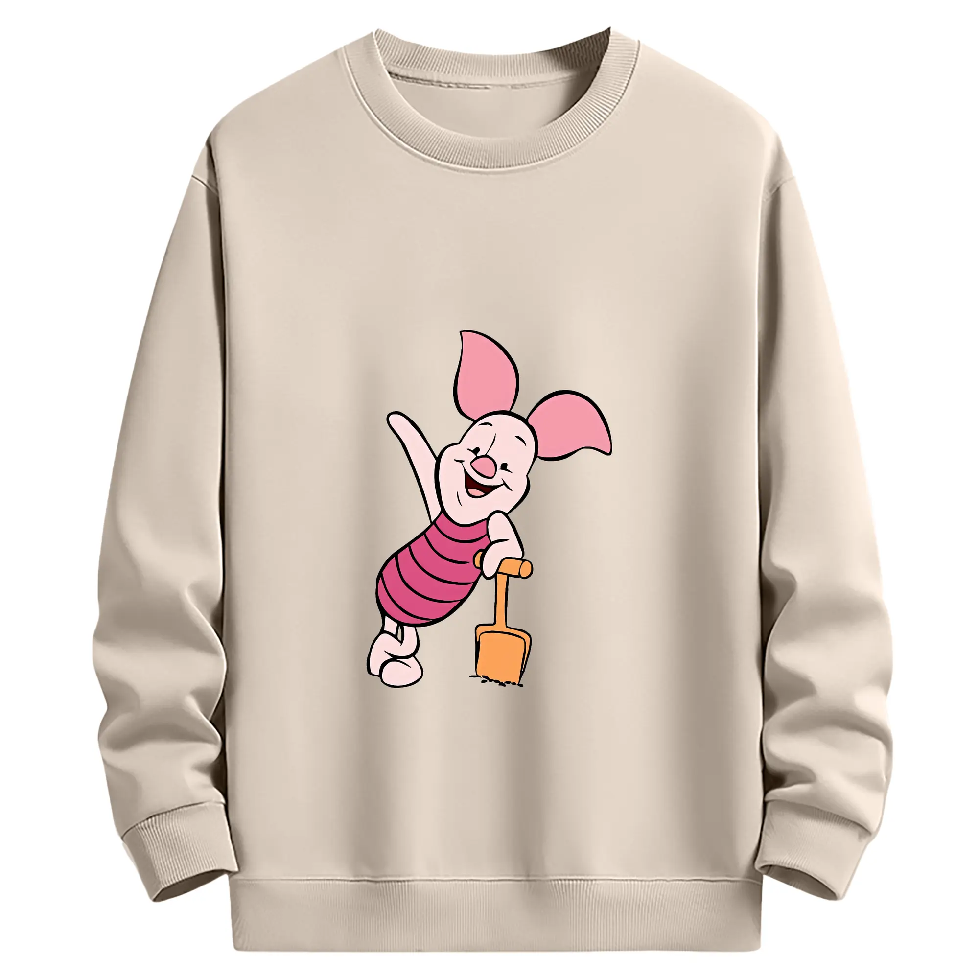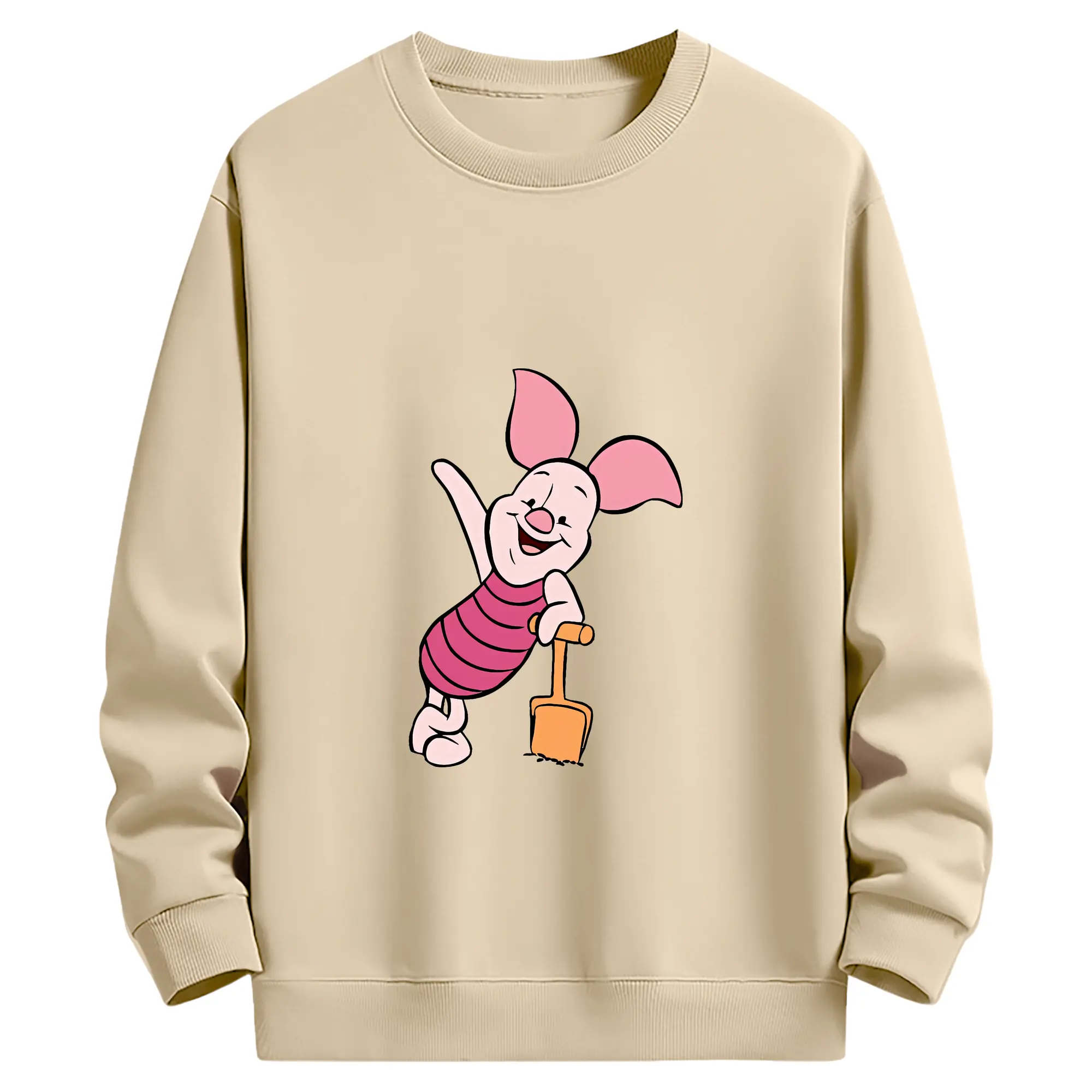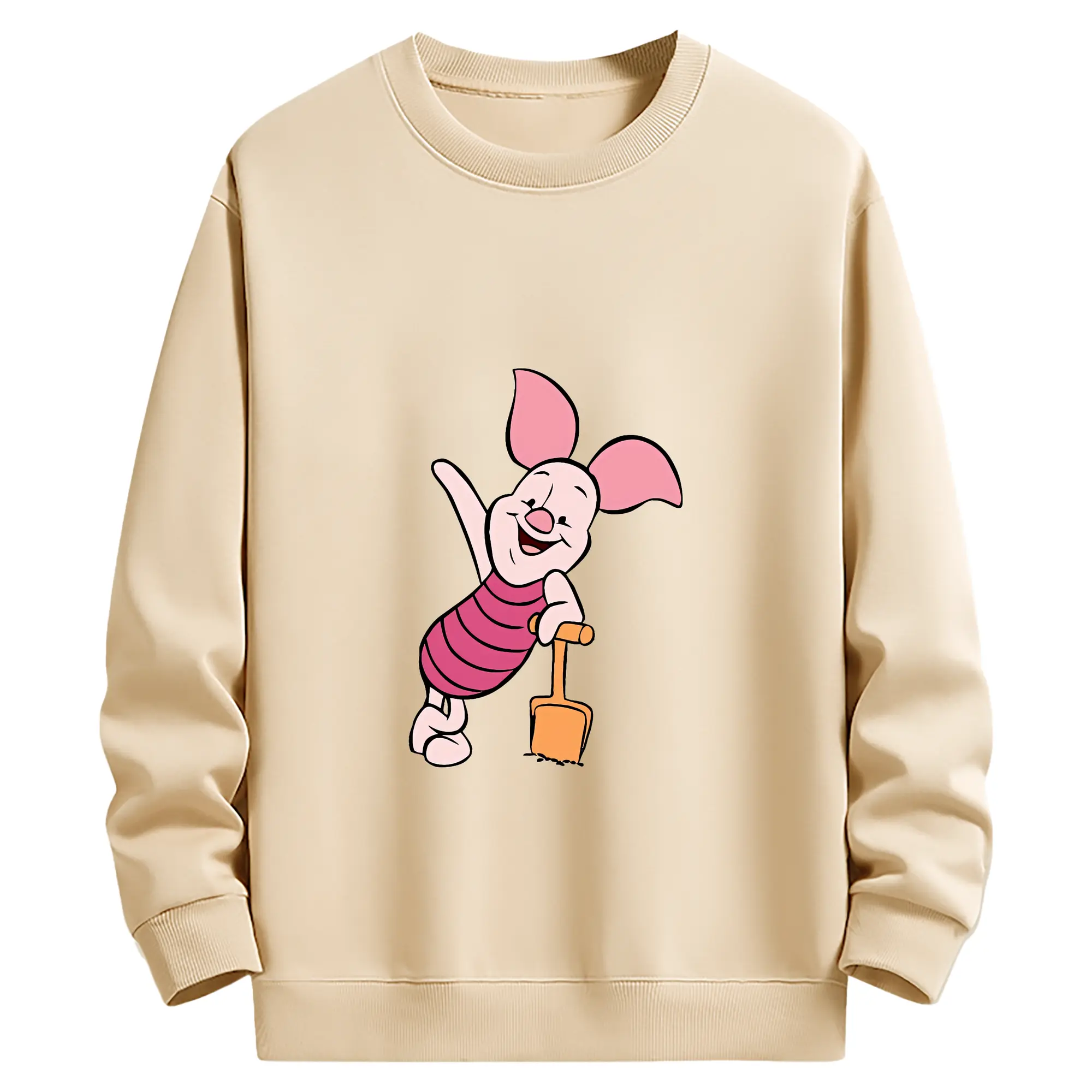プーさん グッズ ピグレット - 薄手 クルーネック スウェット 裏毛260g · ポリエステル 春秋向け カジュアル 男女兼用 · トレーナー デイリー スポーツ 散歩に最適