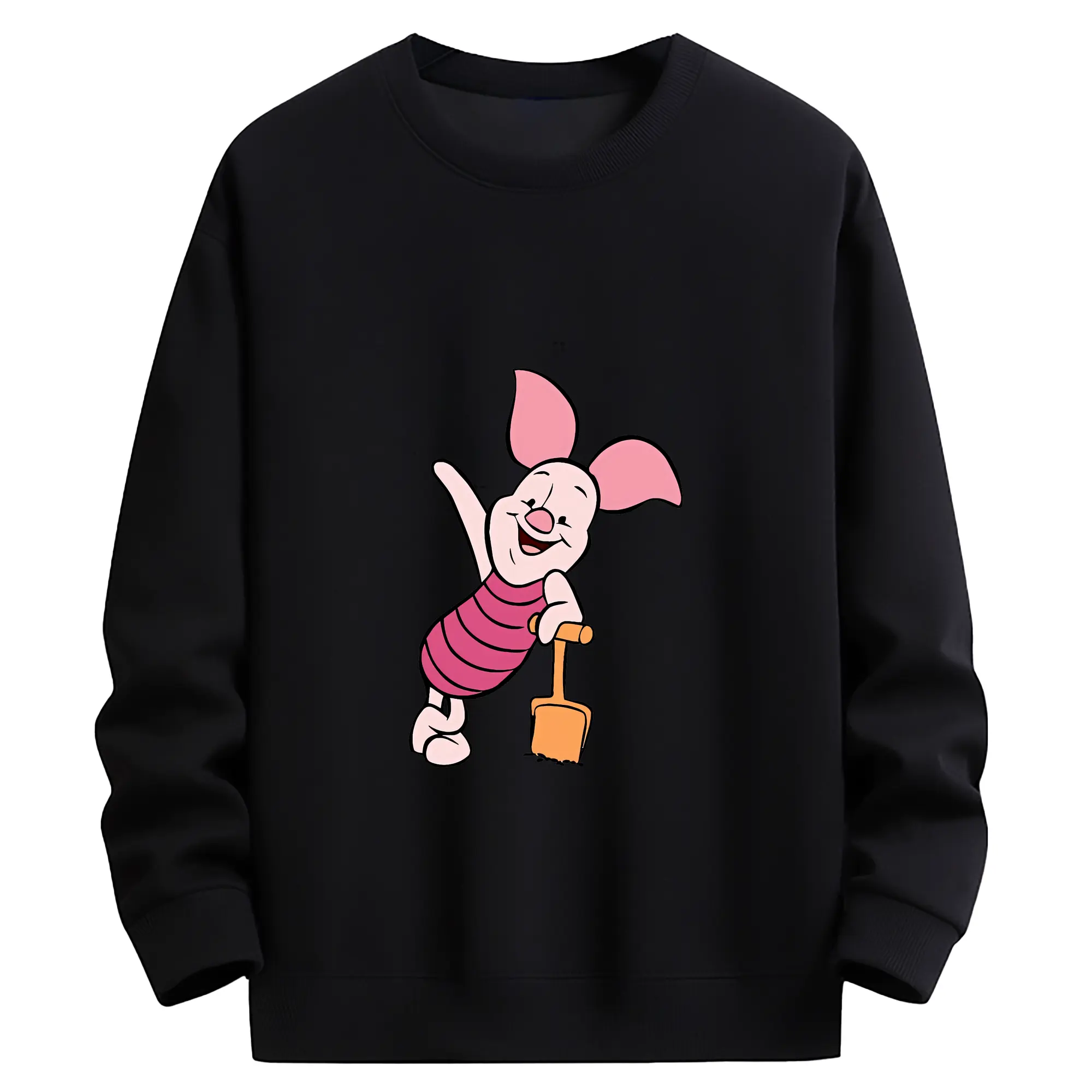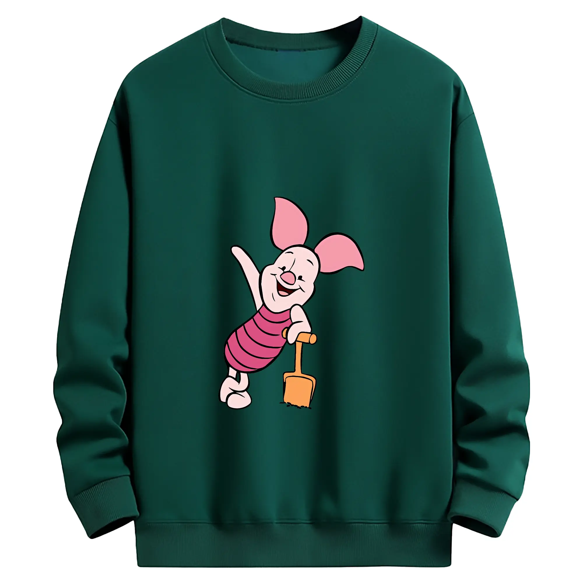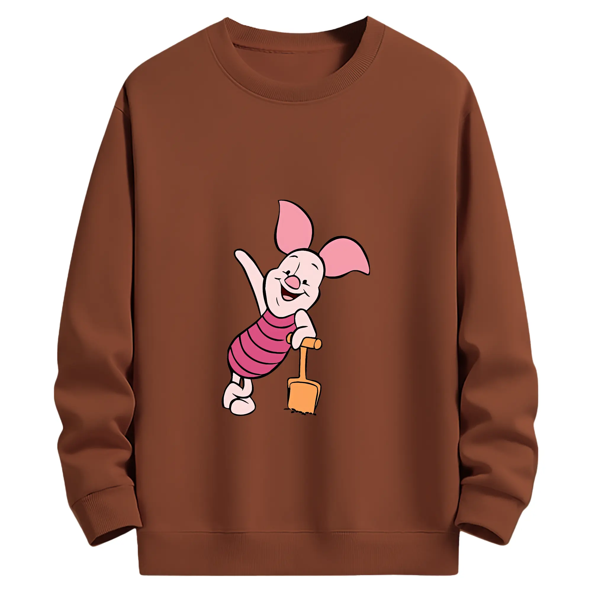 プーさん グッズ ピグレット - 薄手 クルーネック スウェット 裏毛260g · ポリエステル 春秋向け カジュアル 男女兼用 · トレーナー デイリー スポーツ 散歩に最適
