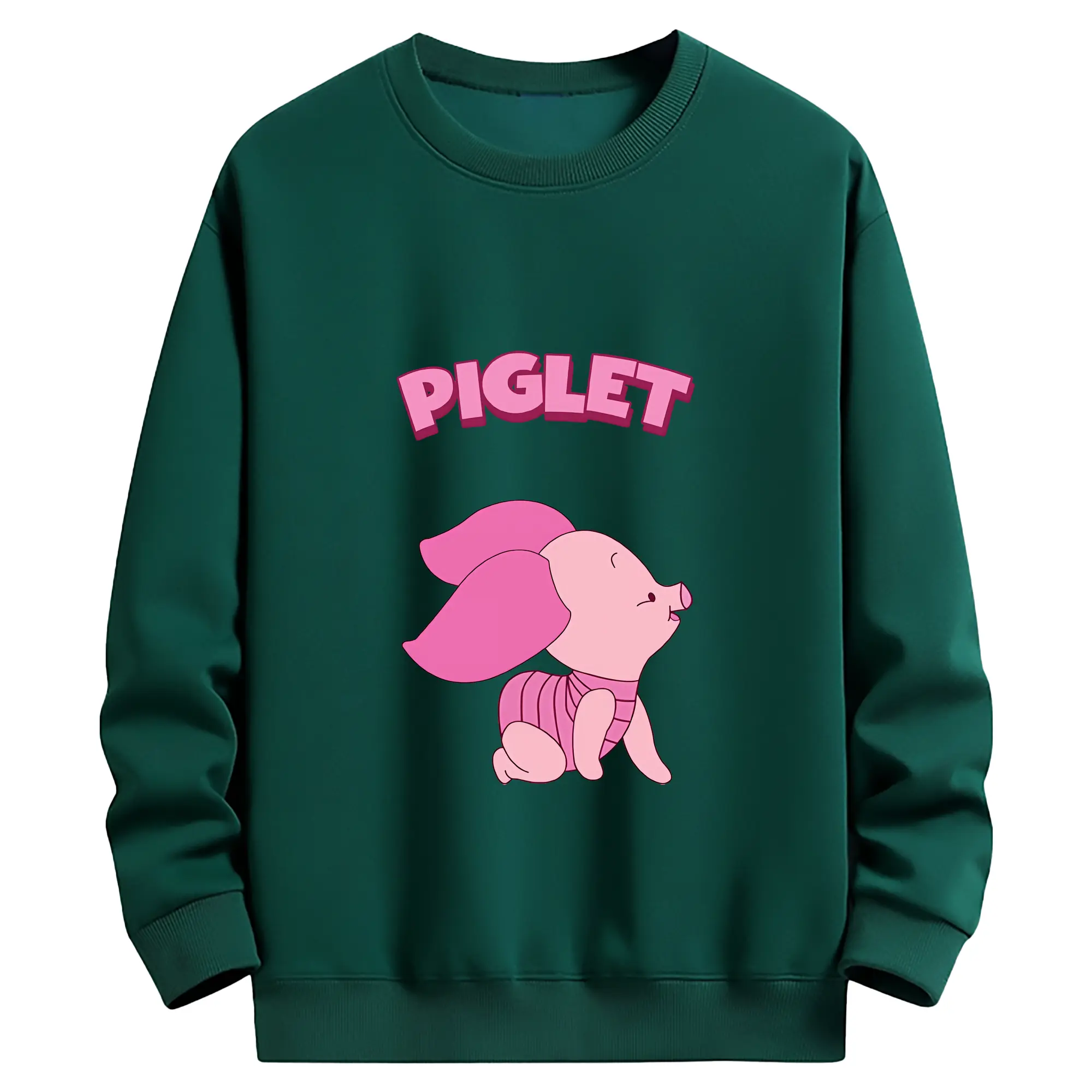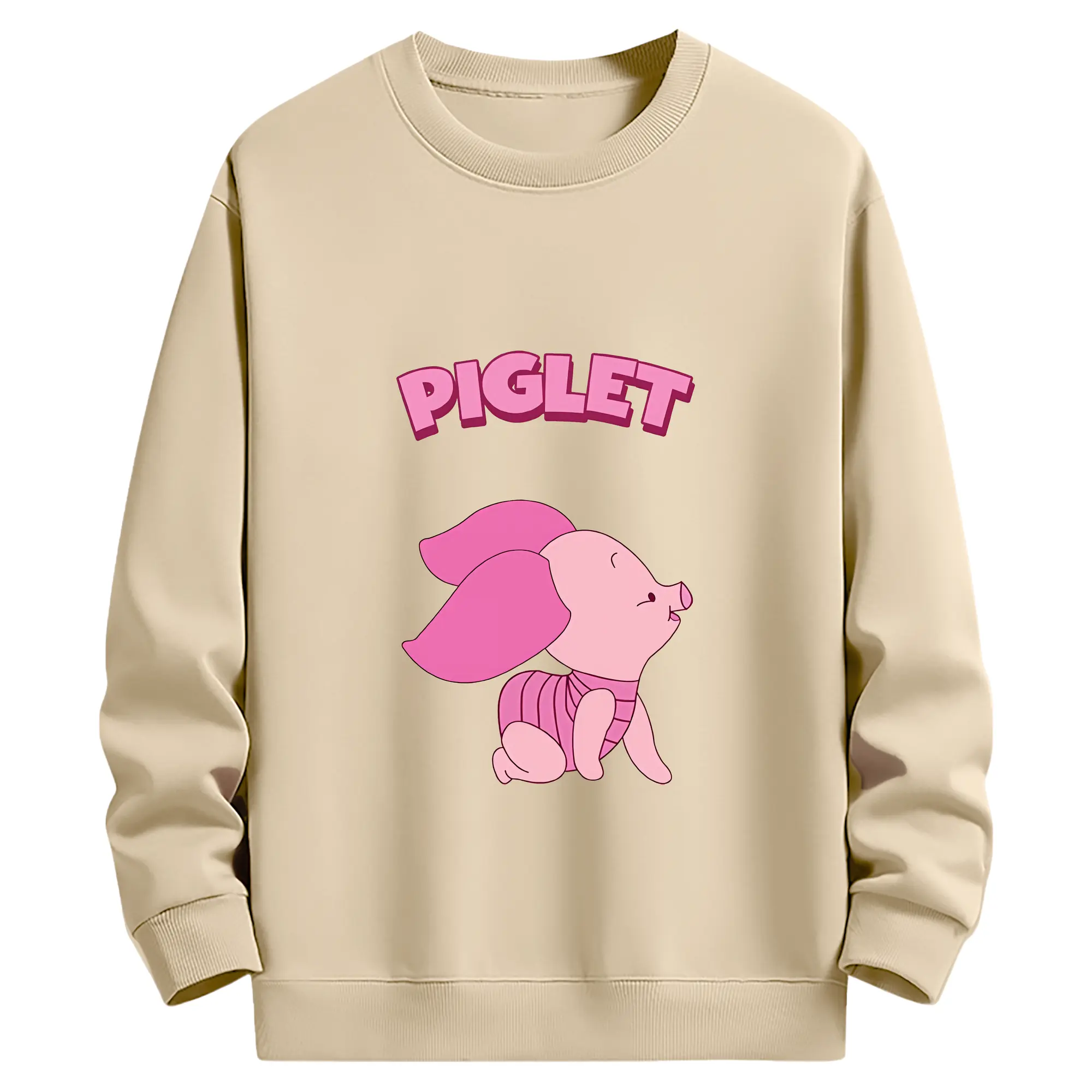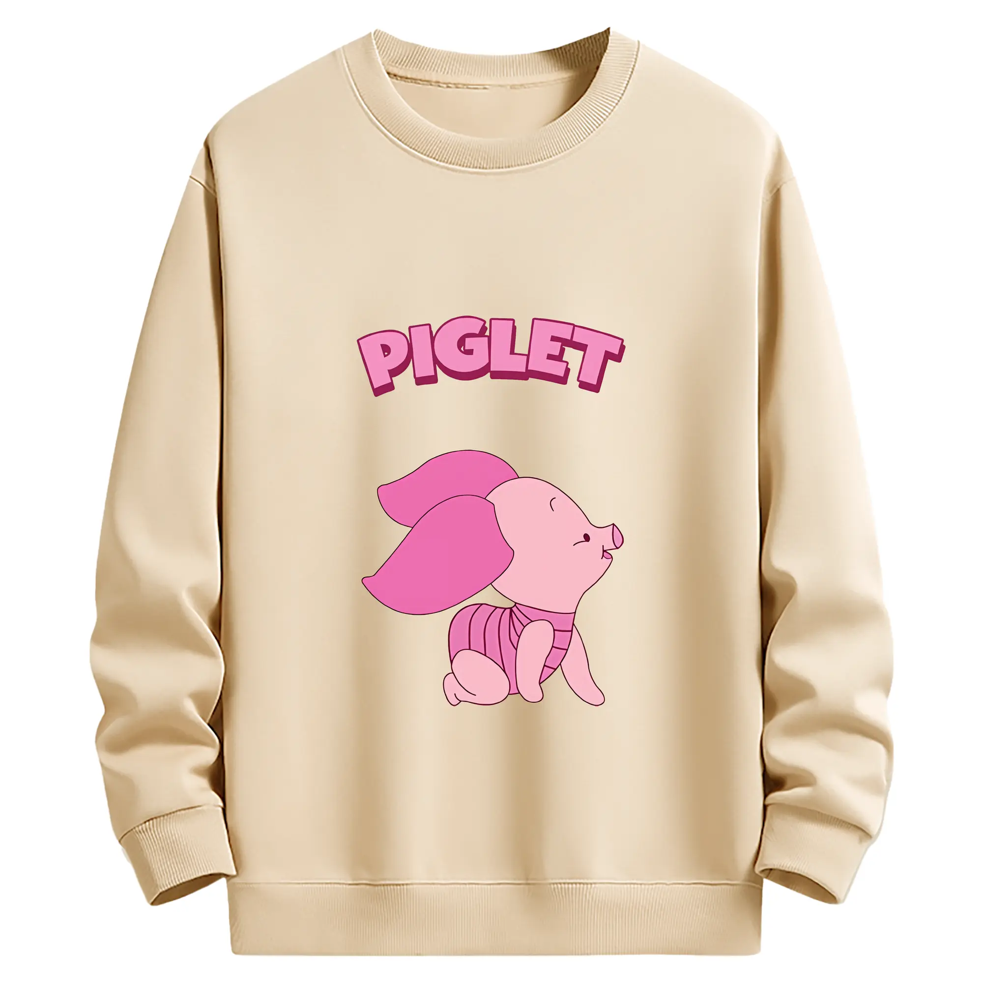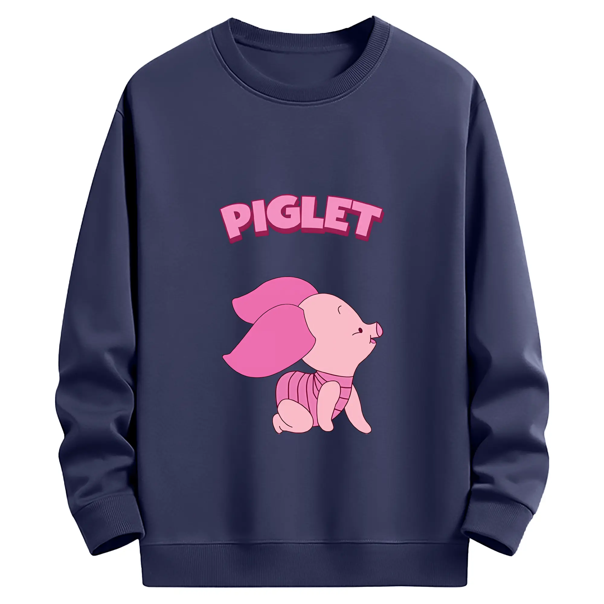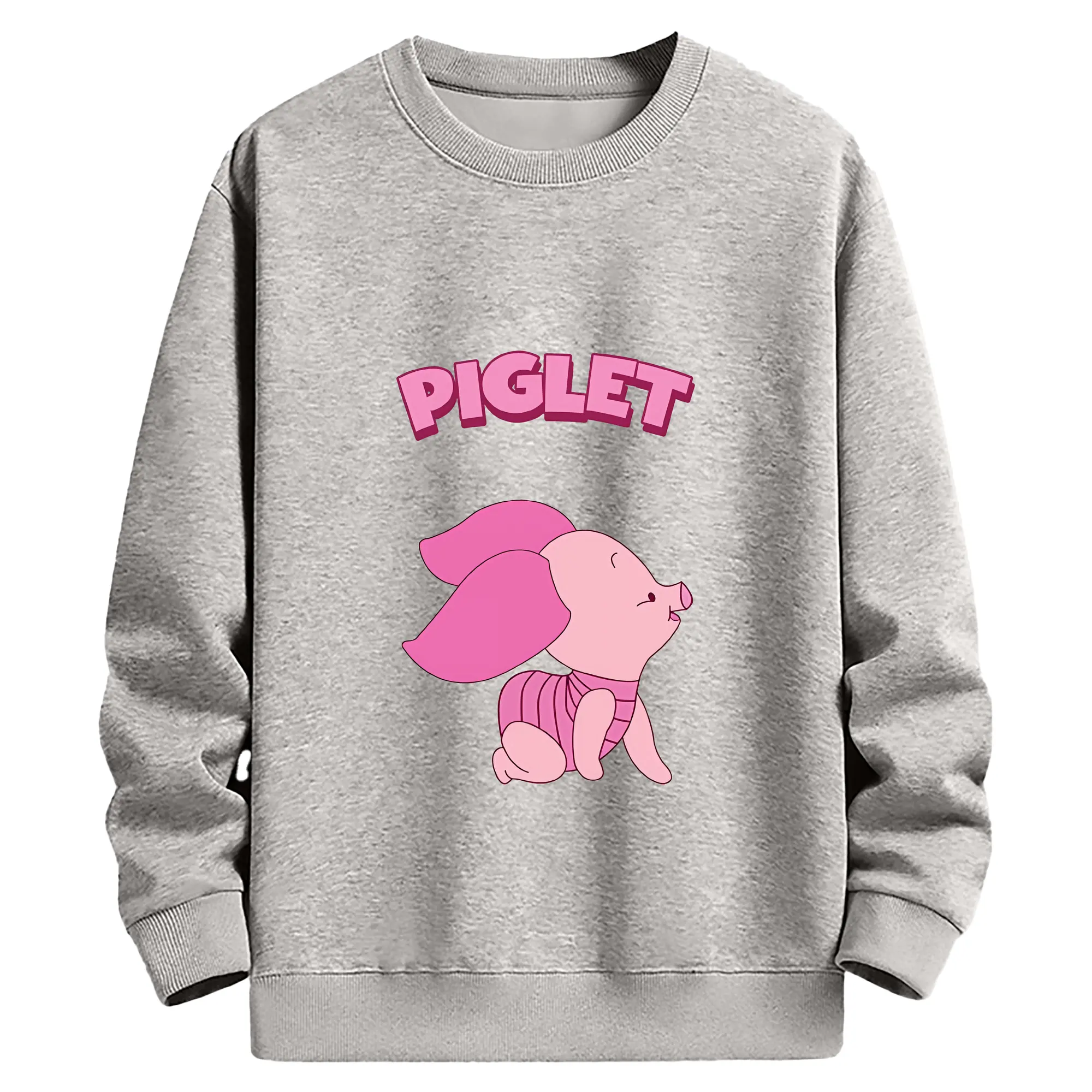 プーさん グッズ ピグレット - 薄手 クルーネック スウェット 裏毛260g · ポリエステル 春秋向け カジュアル 男女兼用 · トレーナー デイリー スポーツ 散歩に最適