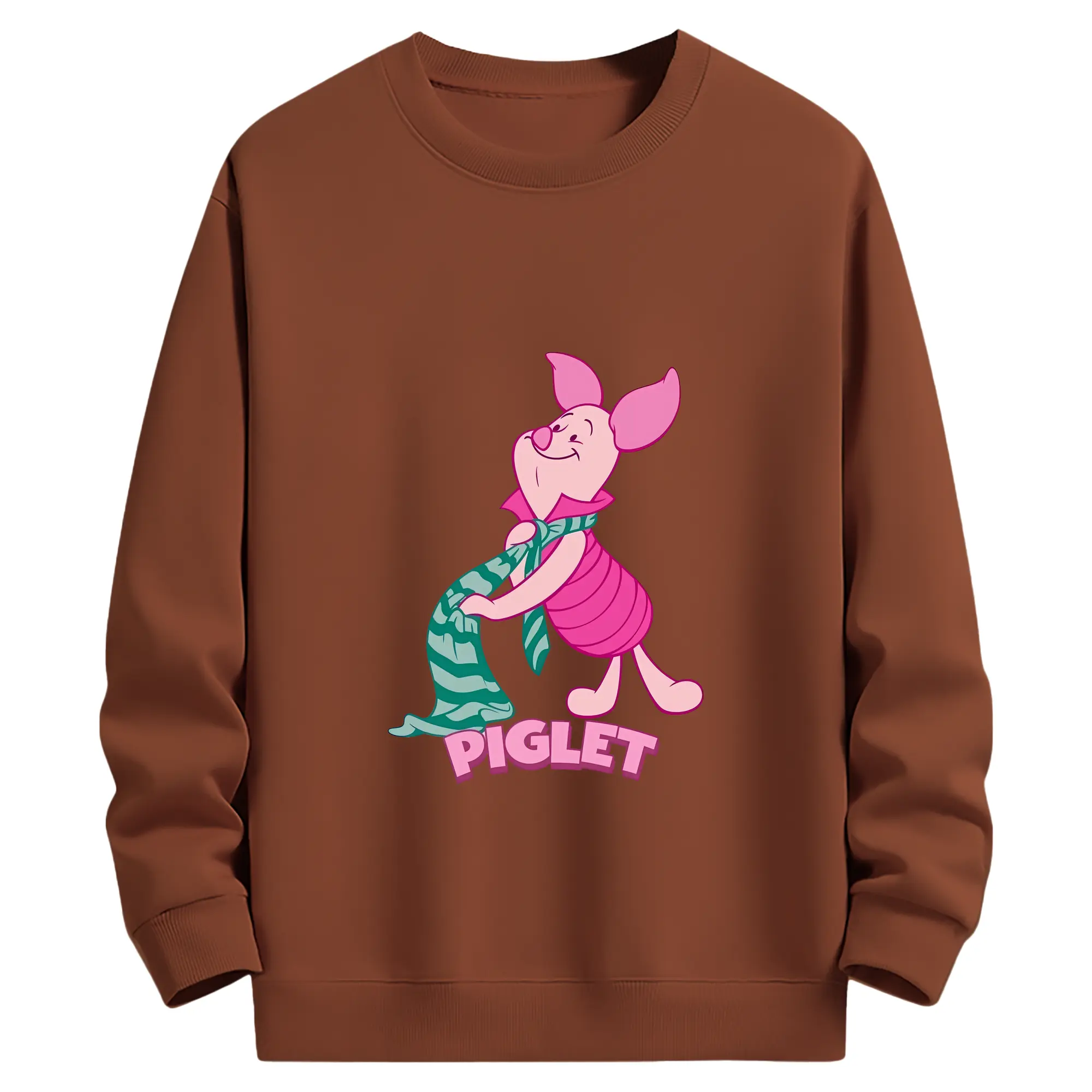 プーさん グッズ ピグレット - 薄手 クルーネック スウェット 裏毛260g · ポリエステル 春秋向け カジュアル 男女兼用 · トレーナー デイリー スポーツ 散歩に最適
