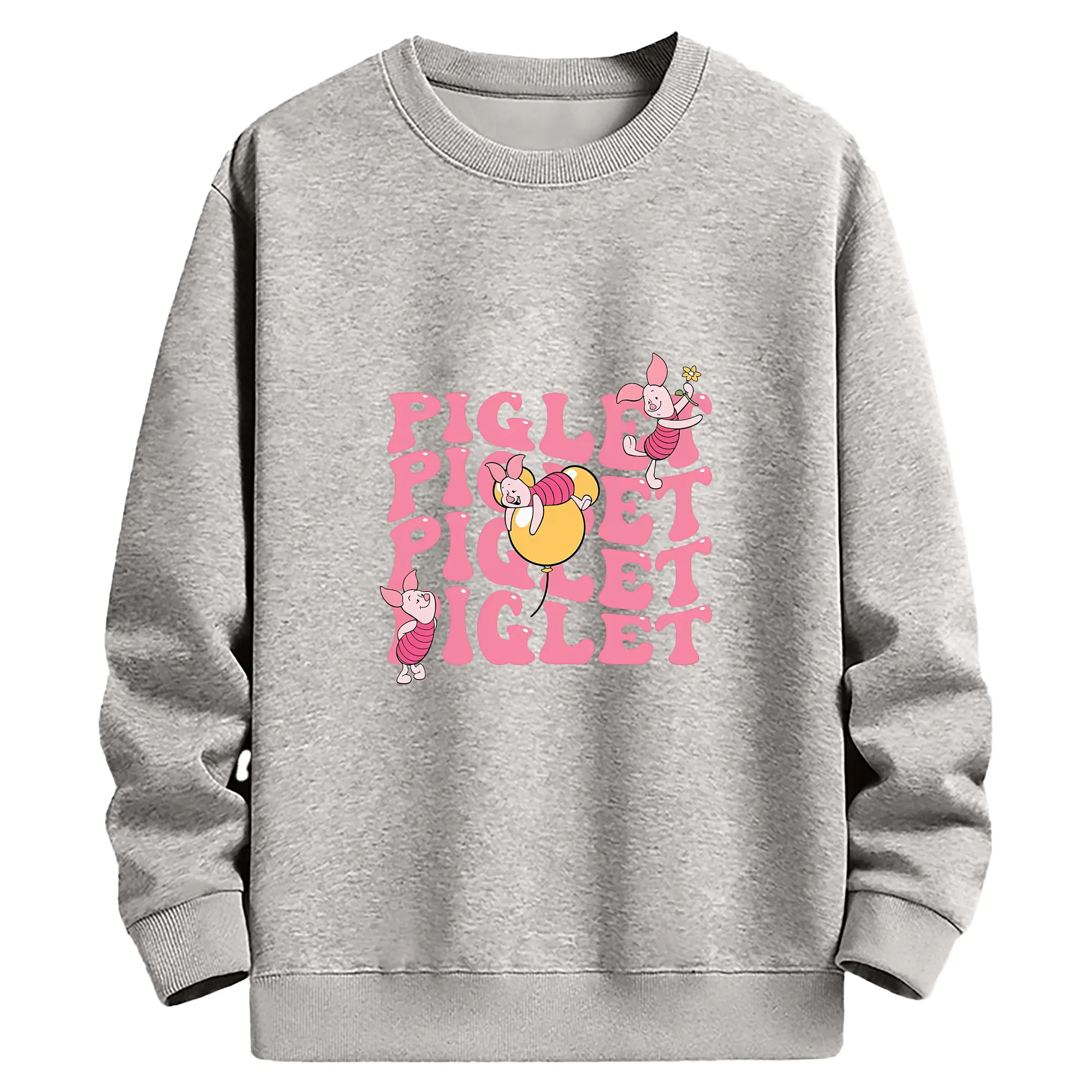 プーさん グッズ ピグレット - 薄手 クルーネック スウェット 裏毛260g · ポリエステル 春秋向け カジュアル 男女兼用 · トレーナー デイリー スポーツ 散歩に最適