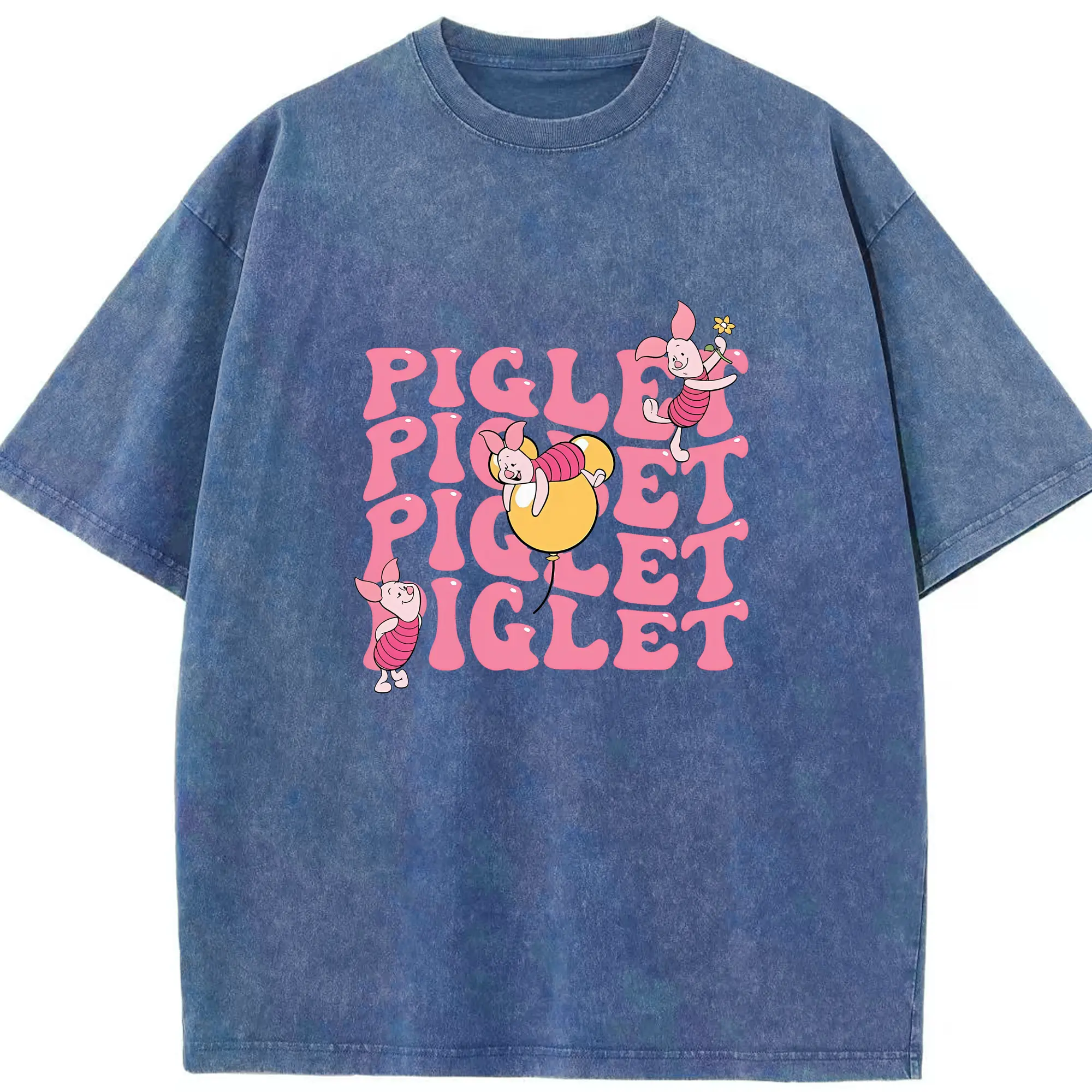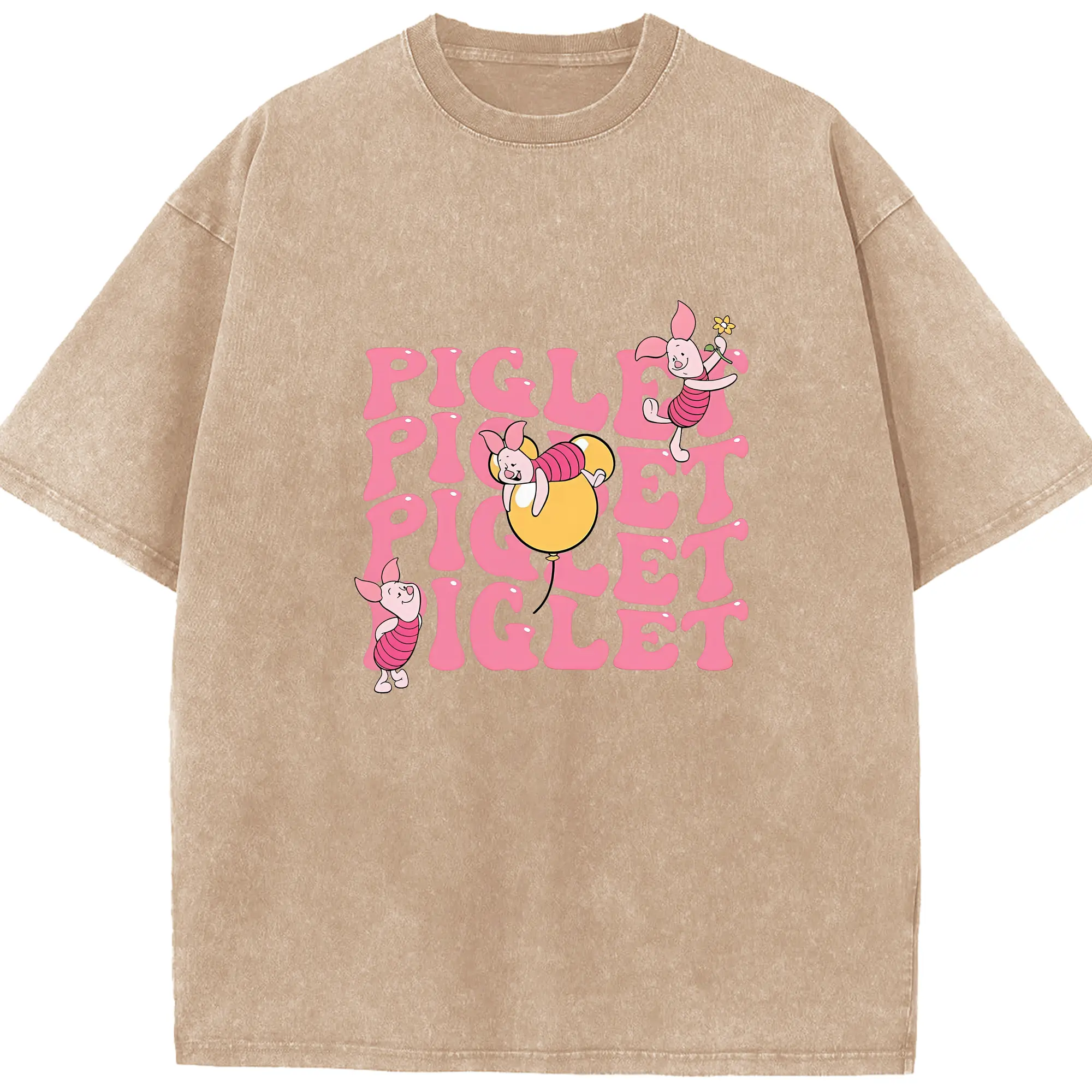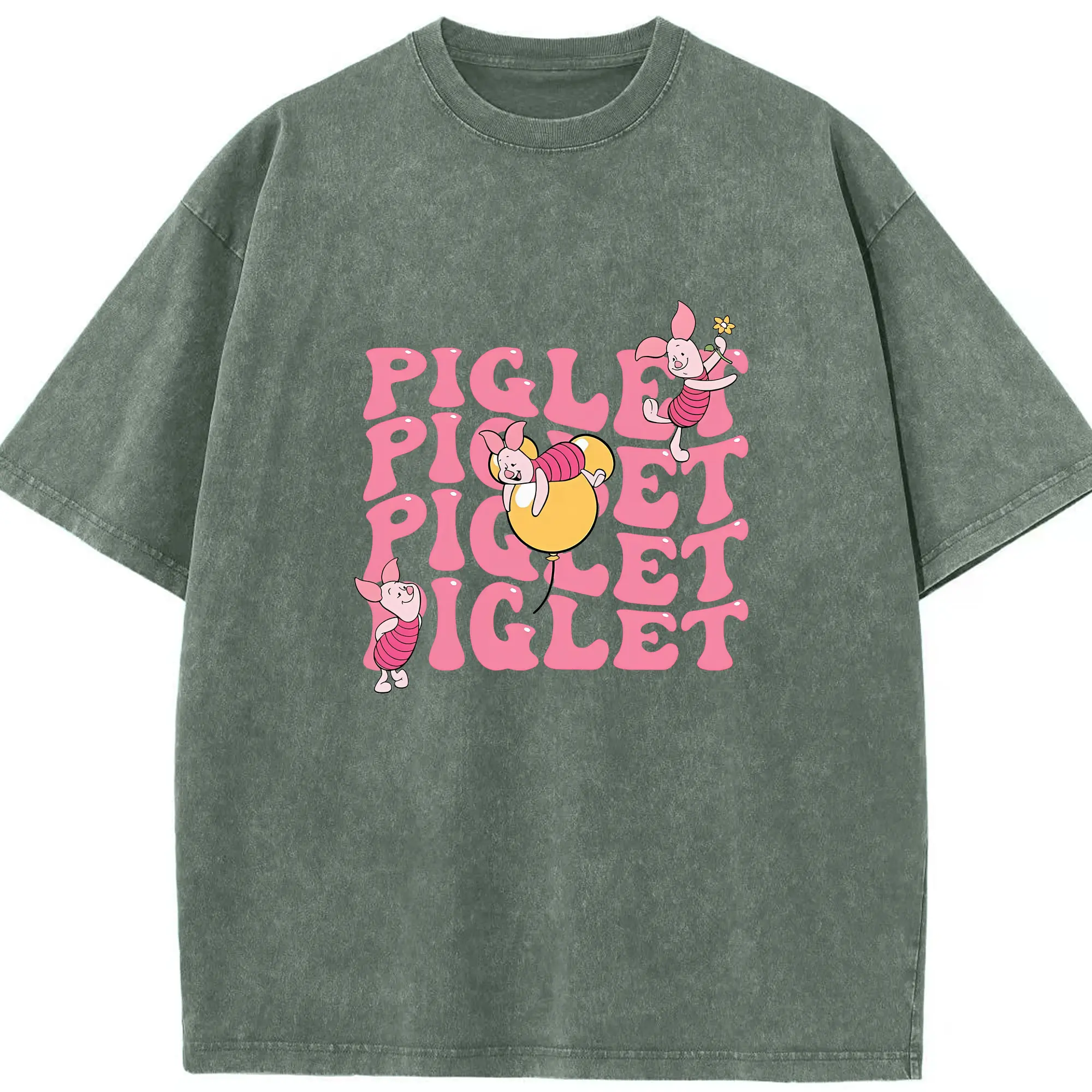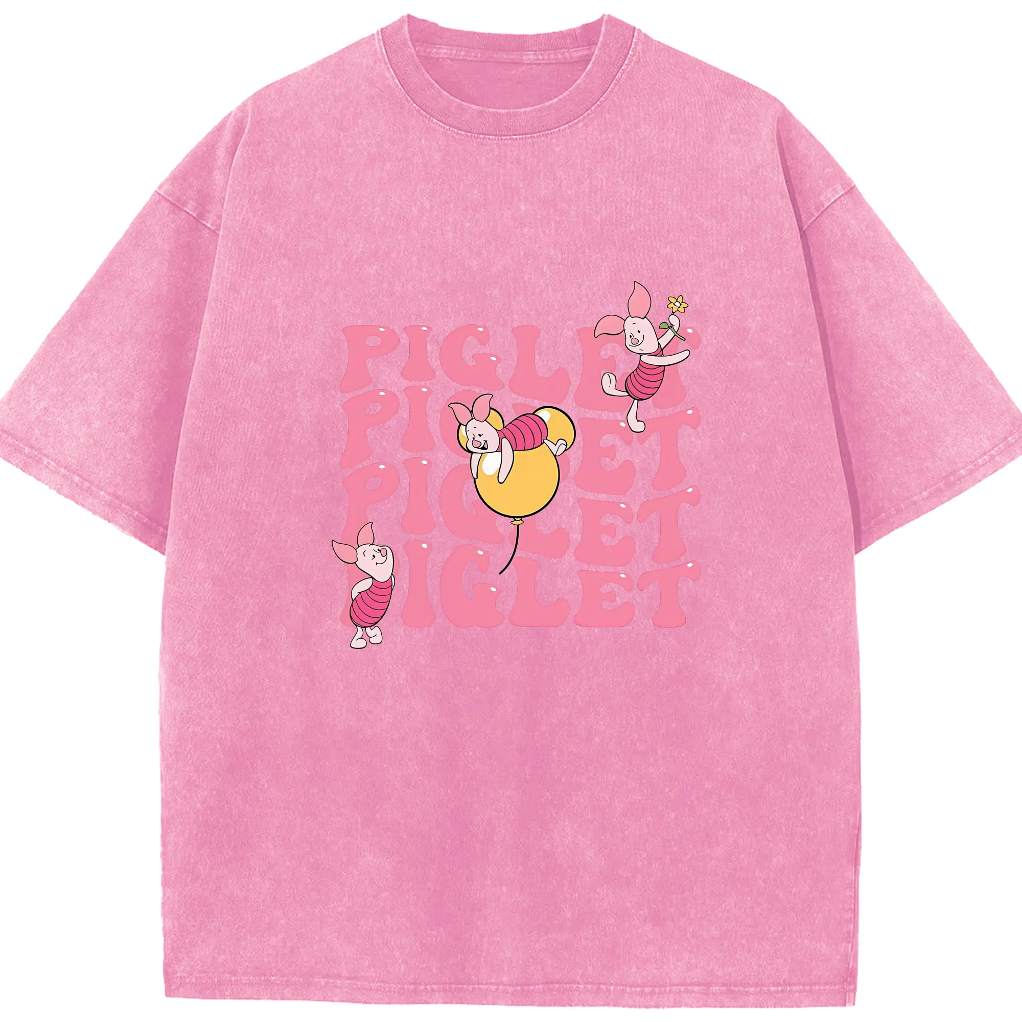 プーさん グッズ ピグレット - 綿100% ヴィンテージ風 半袖Tシャツ ・ 背面プリント ・ 柔らか肌触り ・ 通気性 快適 ・ スポーツ カジュアル 外出用