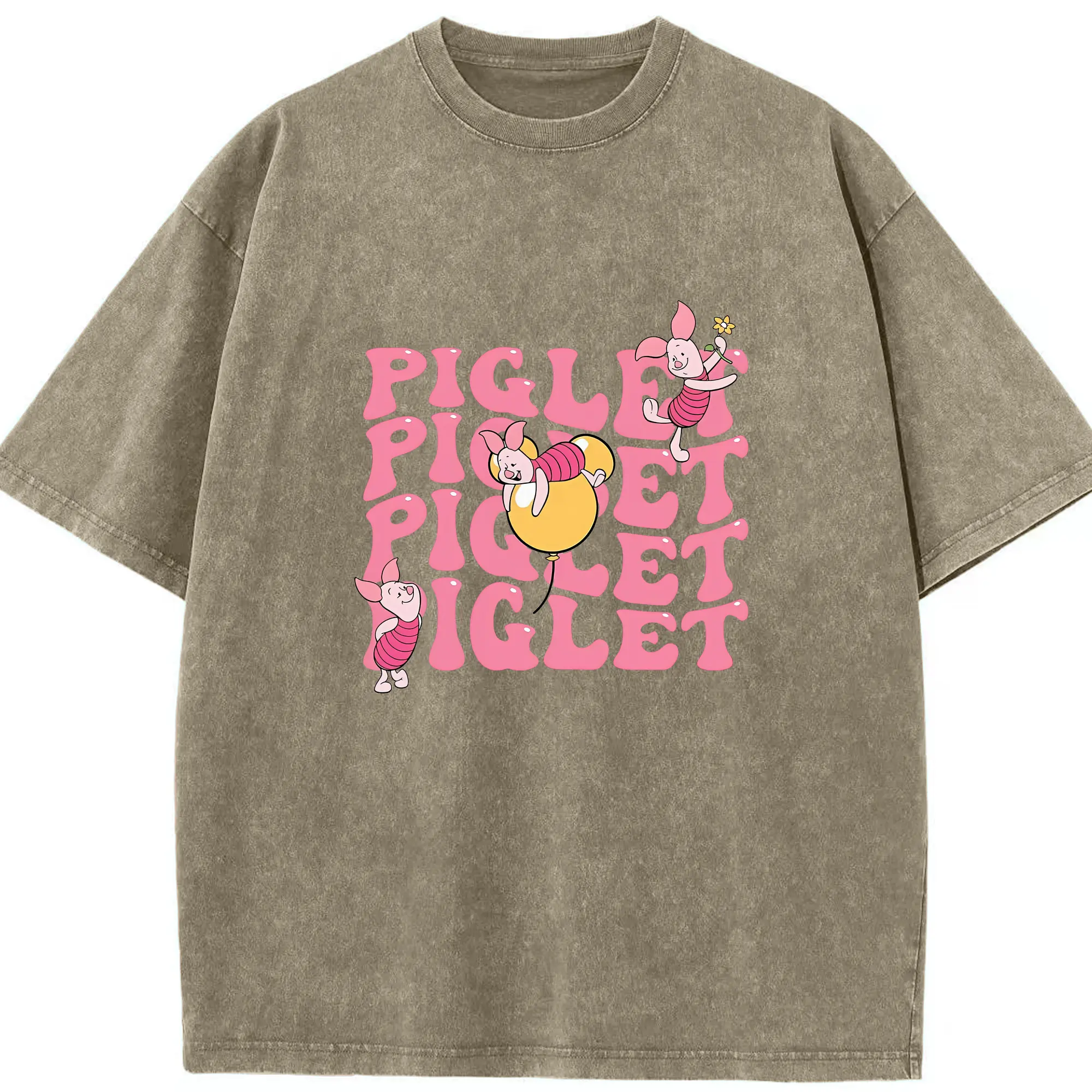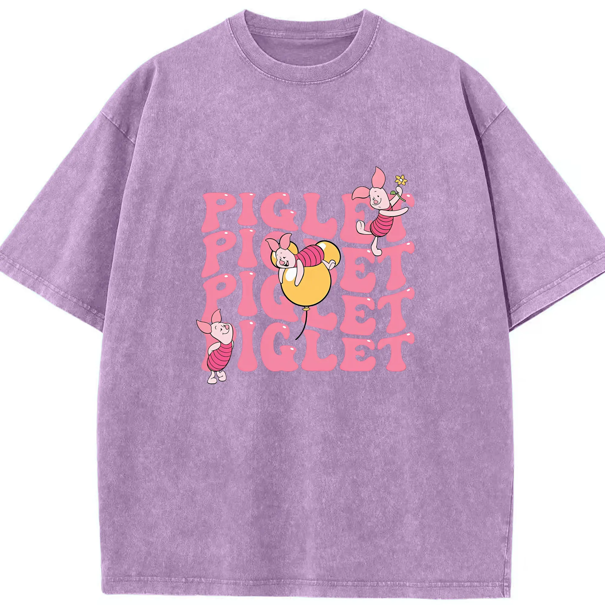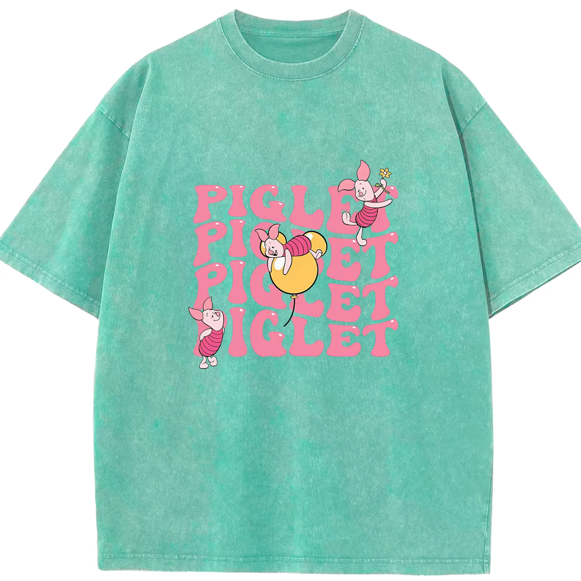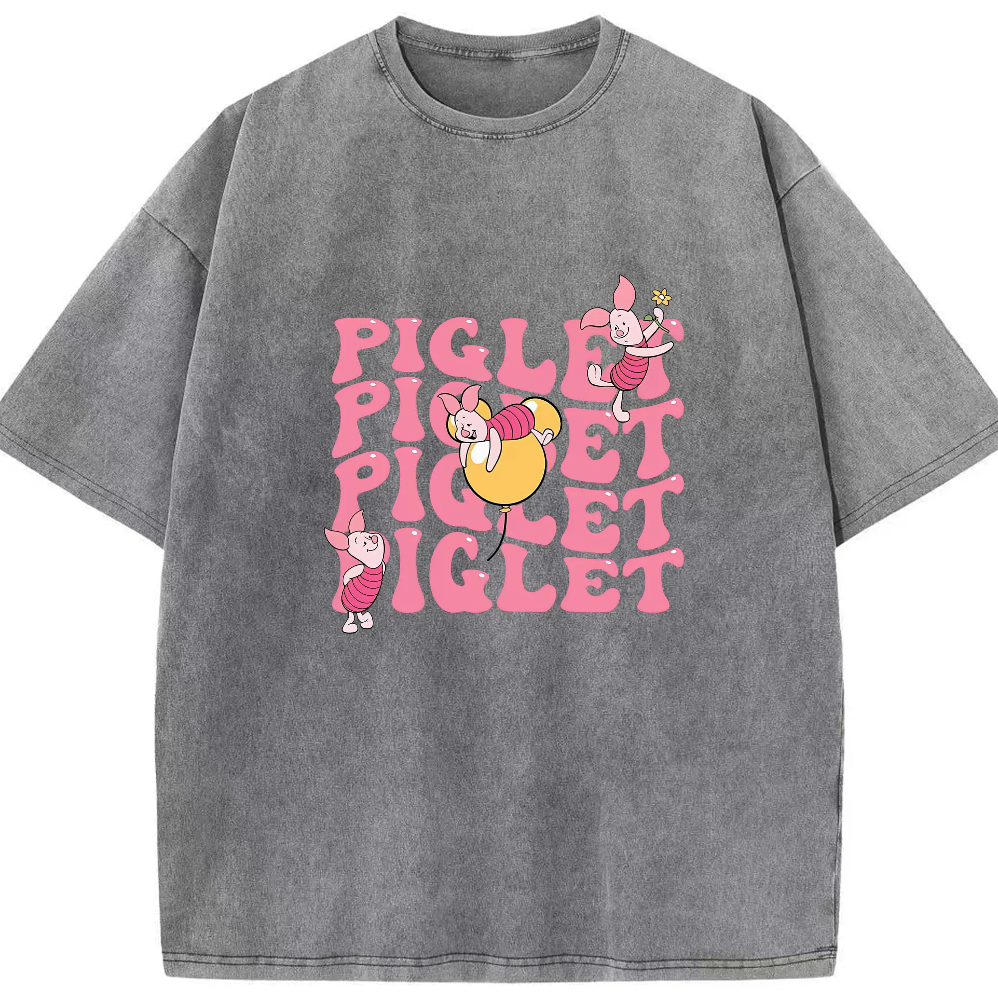 プーさん グッズ ピグレット - 綿100% ヴィンテージ風 半袖Tシャツ ・ 背面プリント ・ 柔らか肌触り ・ 通気性 快適 ・ スポーツ カジュアル 外出用