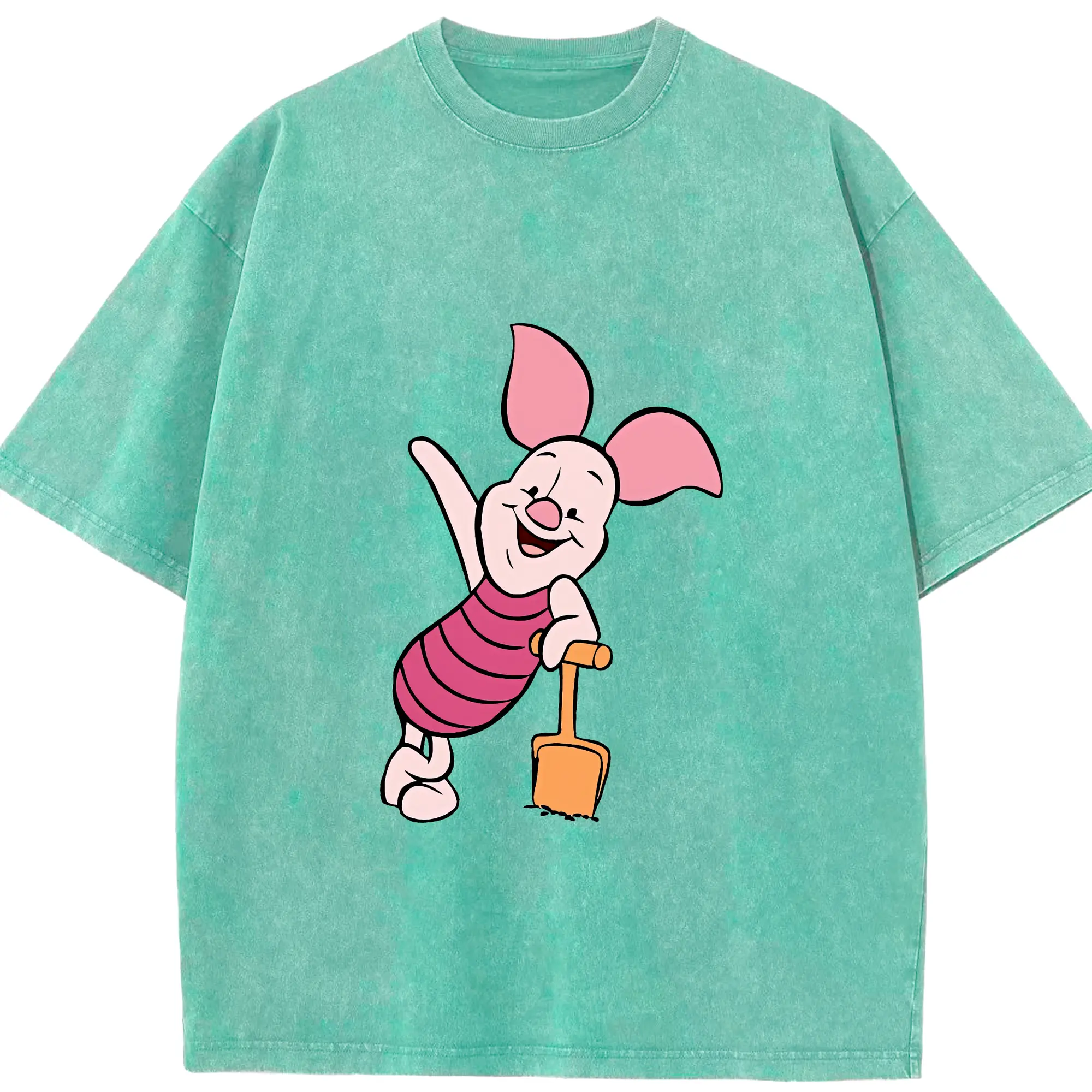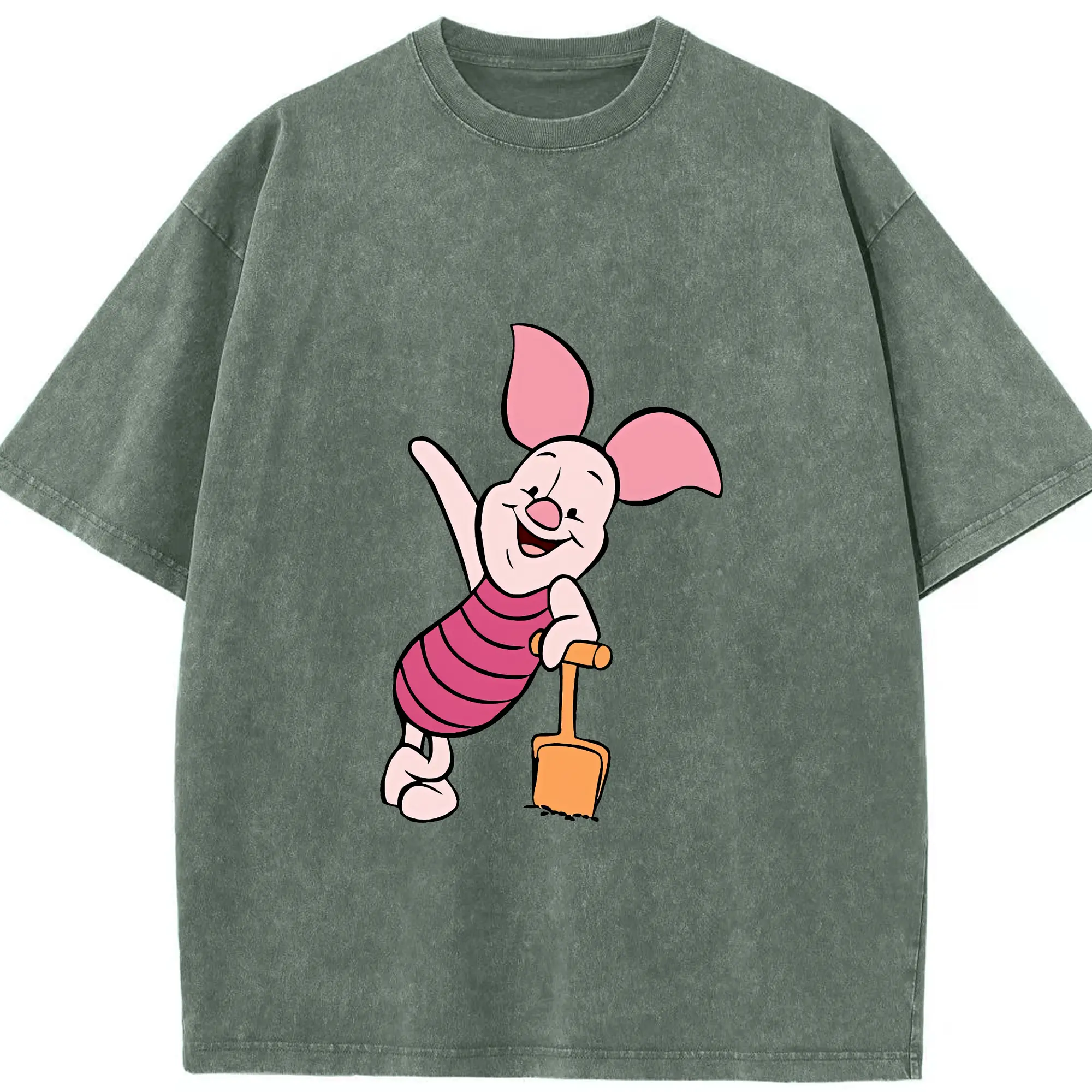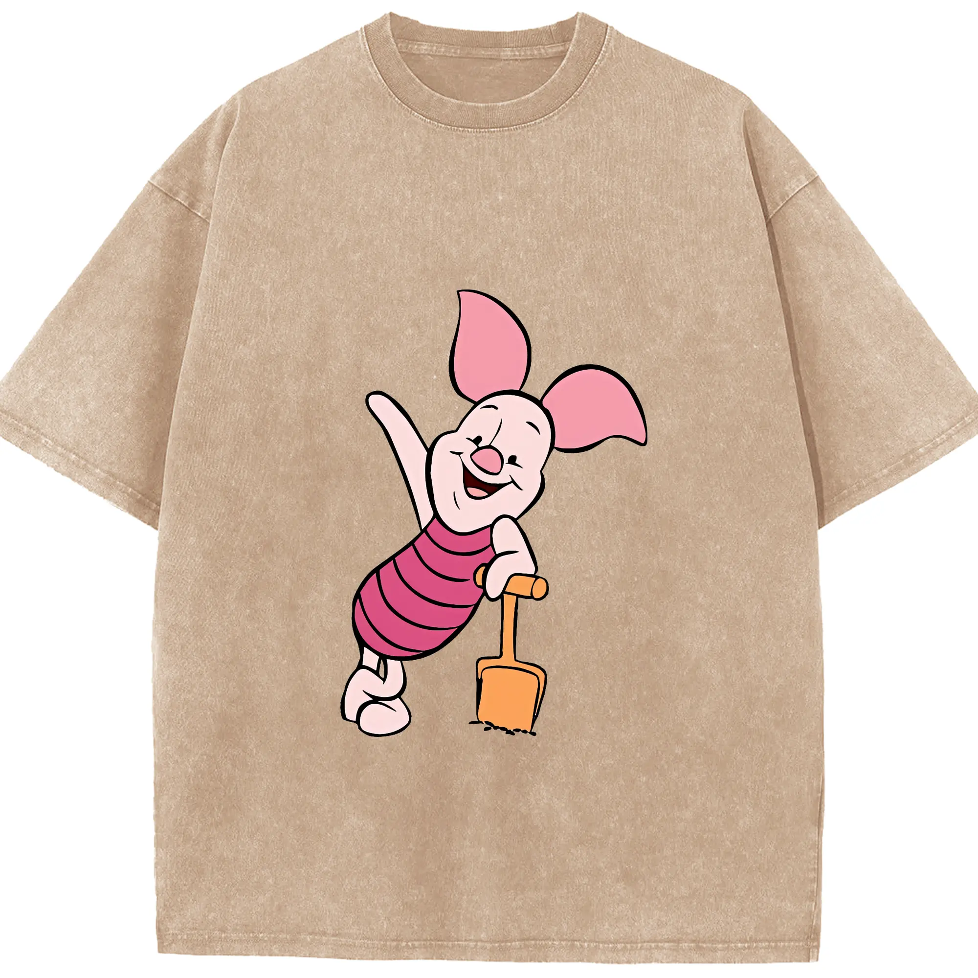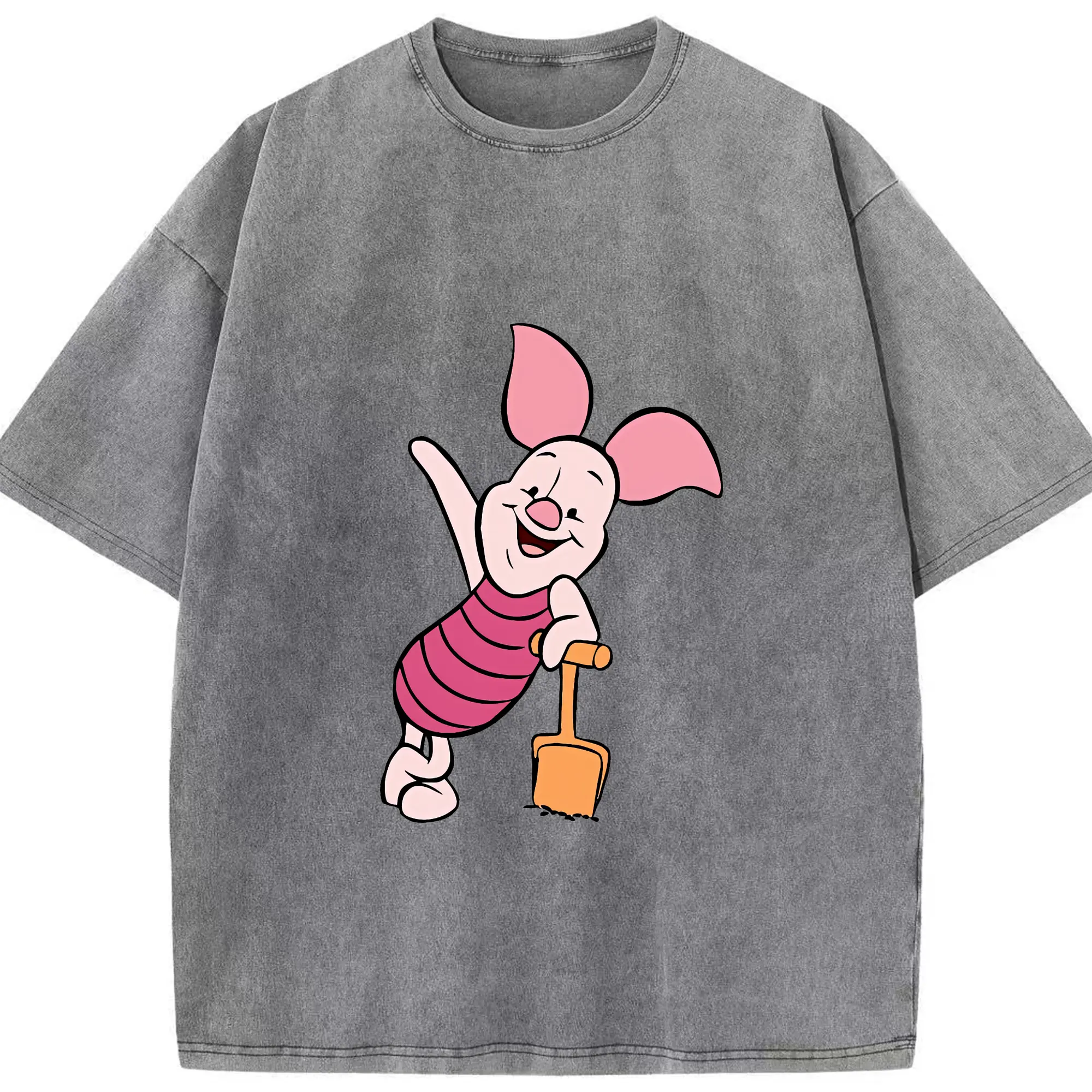プーさん グッズ ピグレット - 綿100% ヴィンテージ風 半袖Tシャツ ・ 背面プリント ・ 柔らか肌触り ・ 通気性 快適 ・ スポーツ カジュアル 外出用