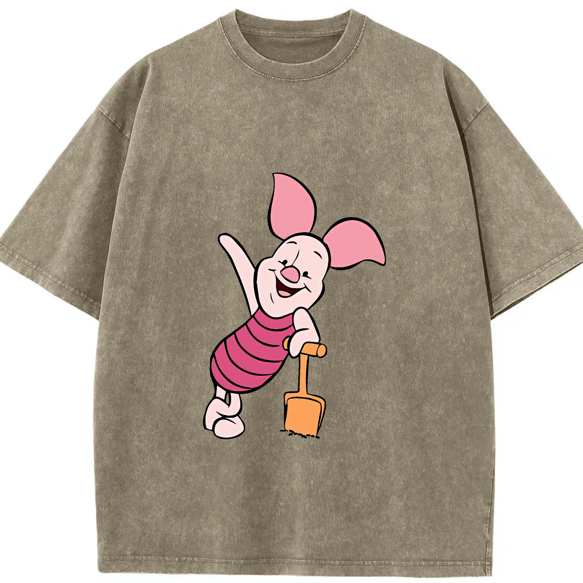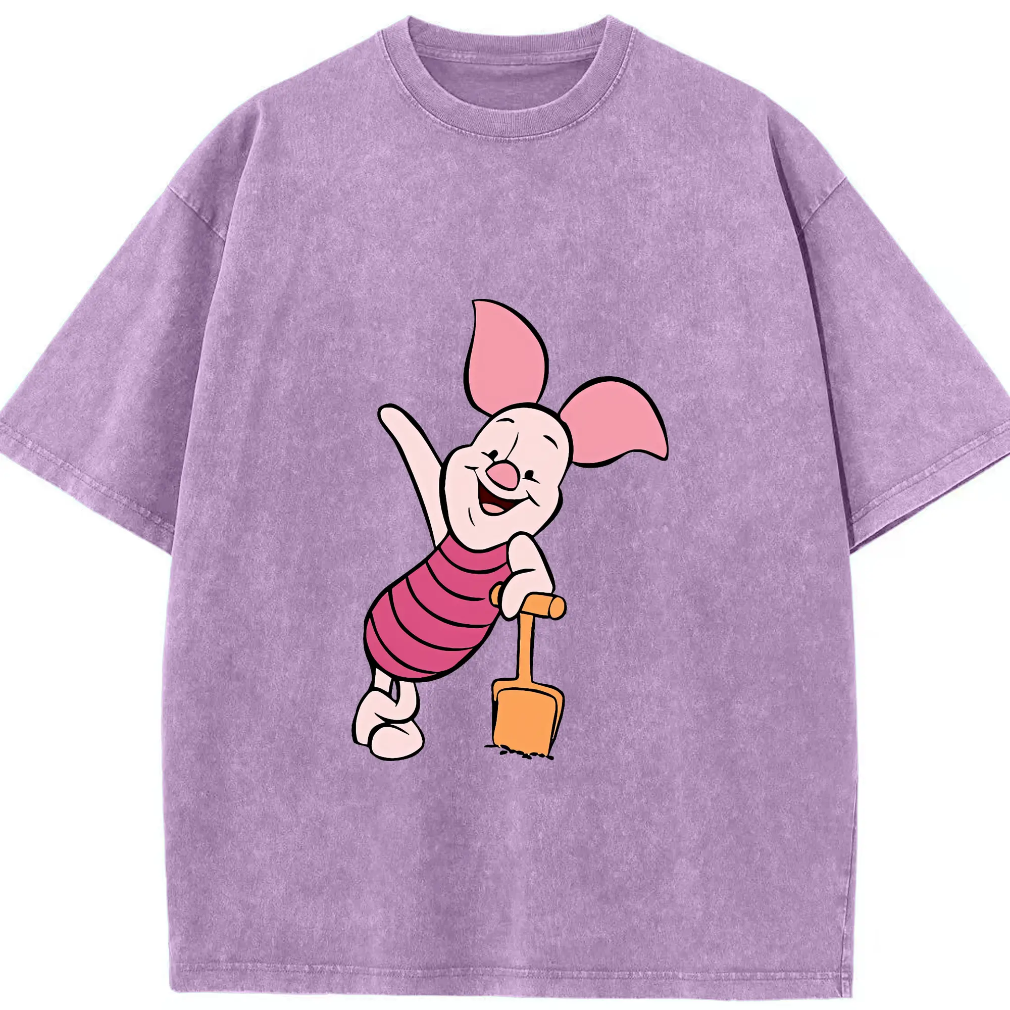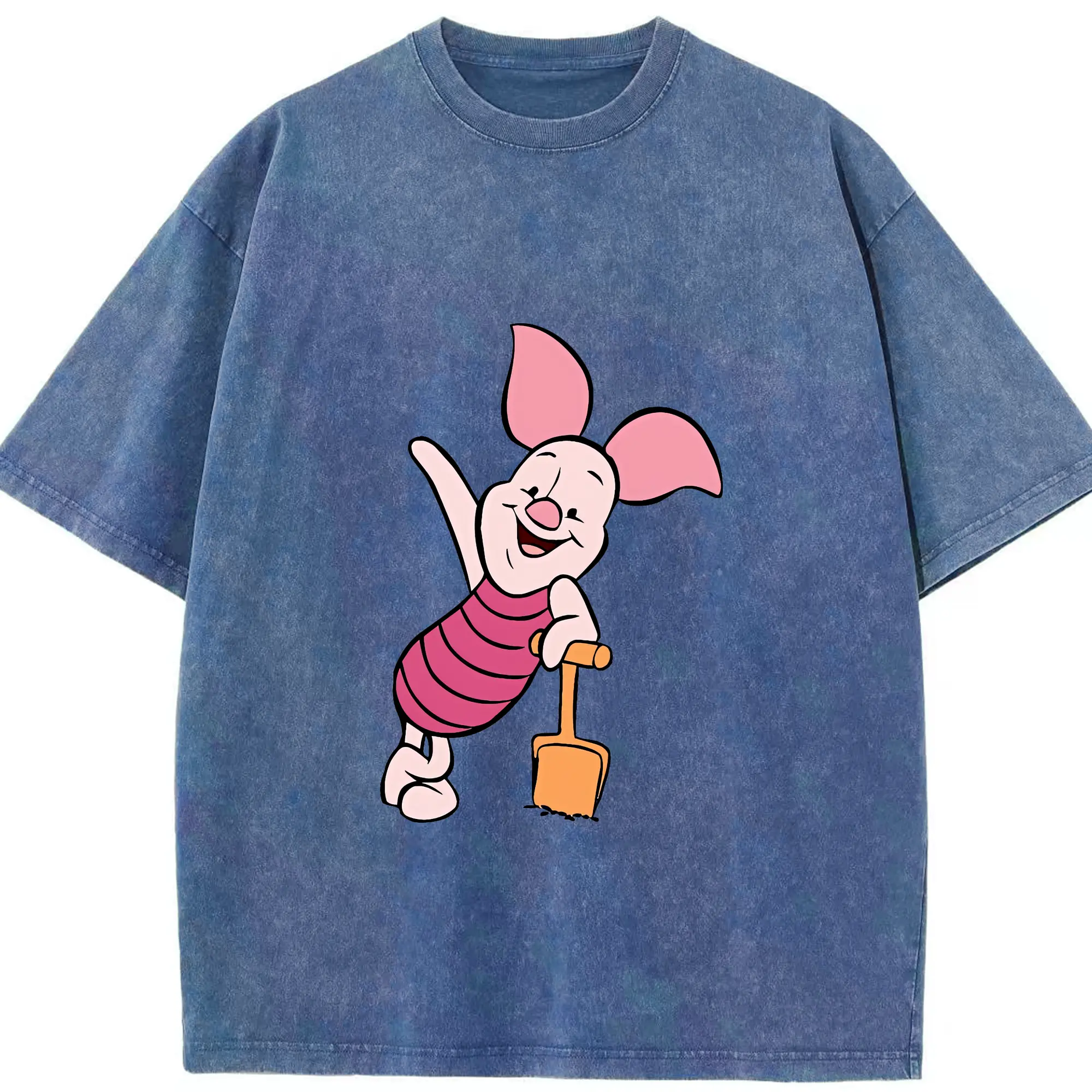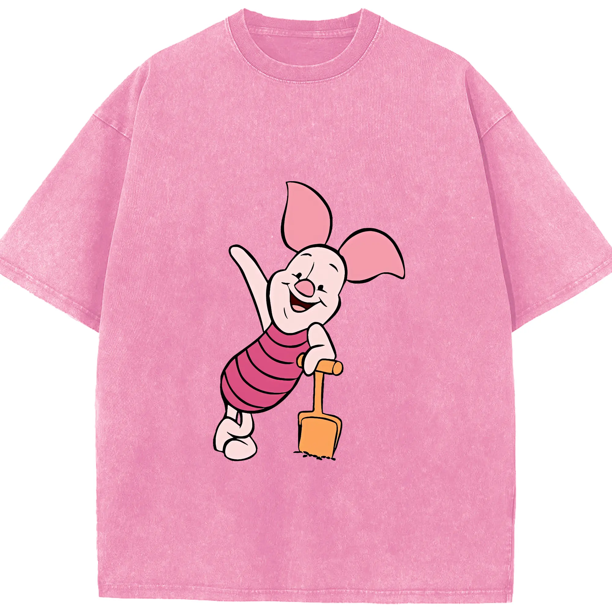 プーさん グッズ ピグレット - 綿100% ヴィンテージ風 半袖Tシャツ ・ 背面プリント ・ 柔らか肌触り ・ 通気性 快適 ・ スポーツ カジュアル 外出用