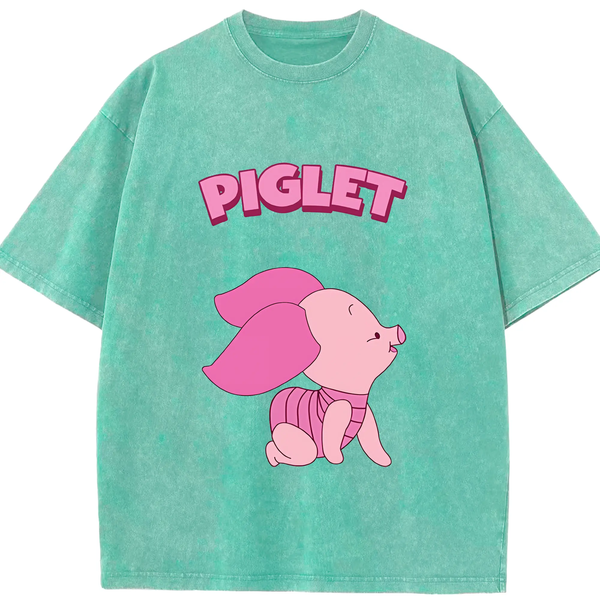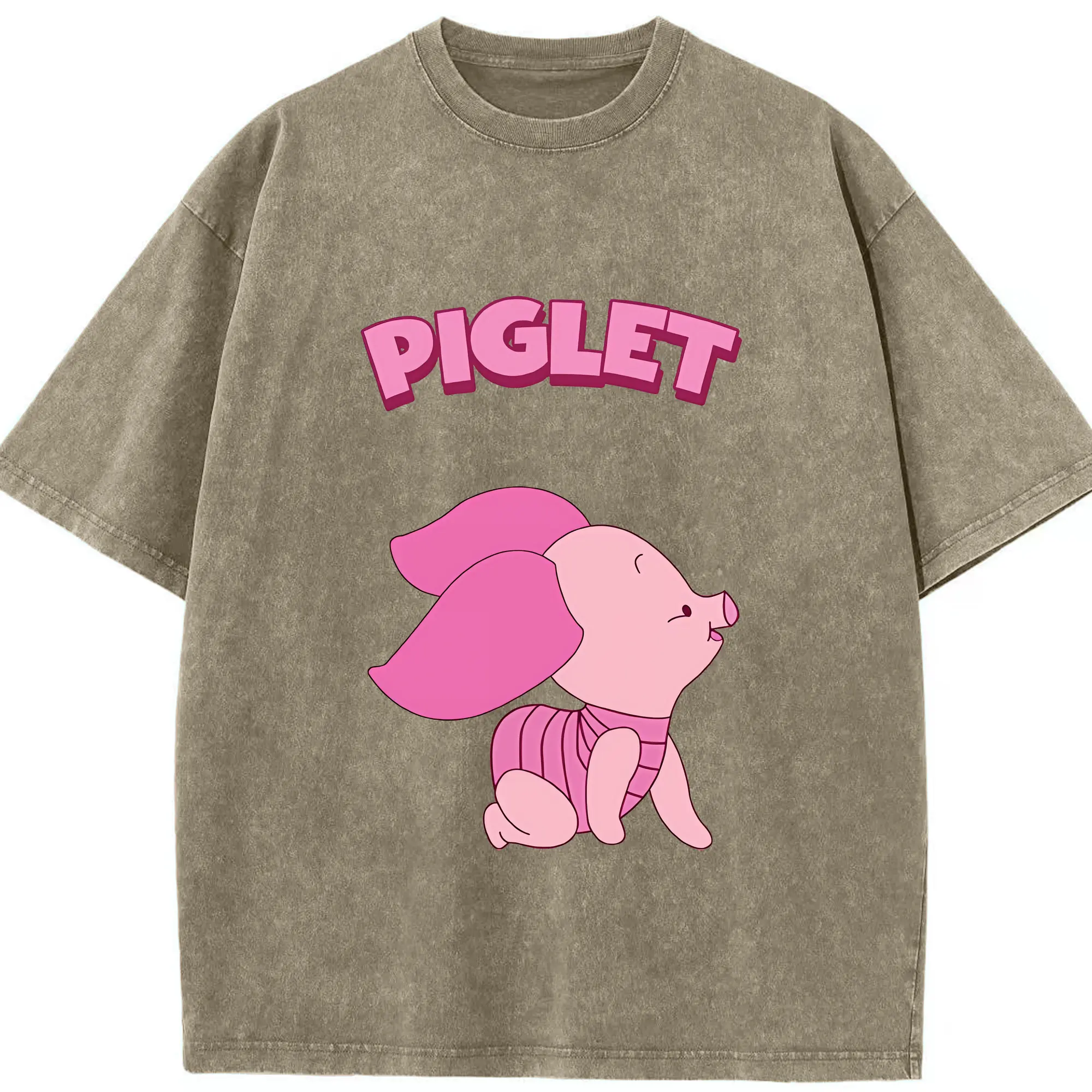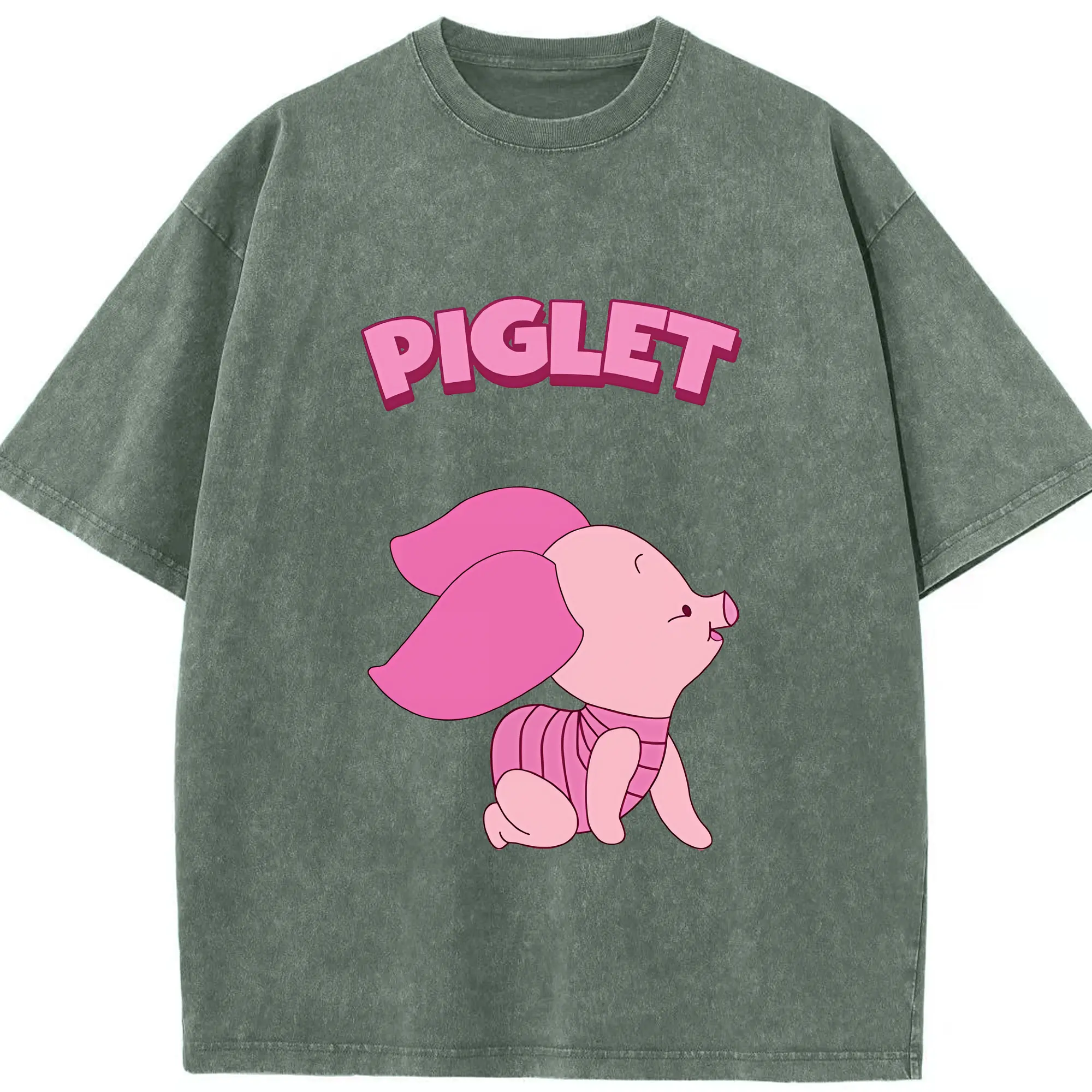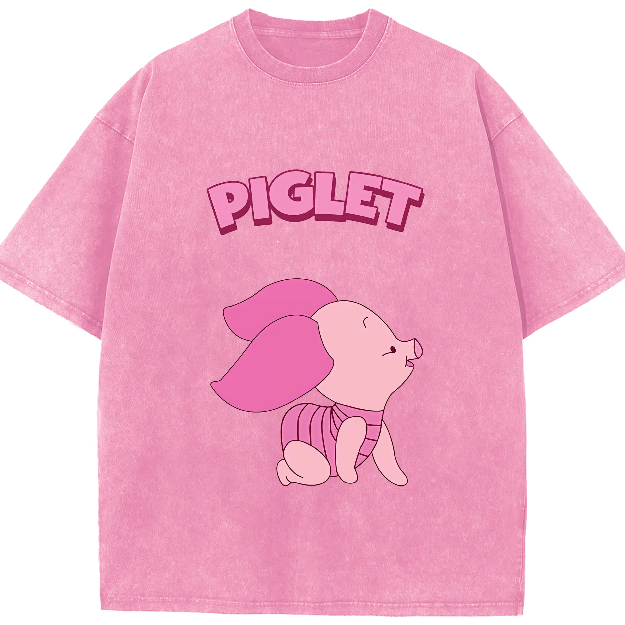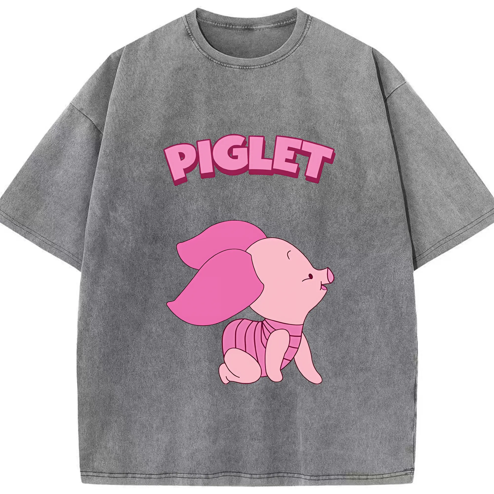 プーさん グッズ ピグレット - 綿100% ヴィンテージ風 半袖Tシャツ ・ 背面プリント ・ 柔らか肌触り ・ 通気性 快適 ・ スポーツ カジュアル 外出用