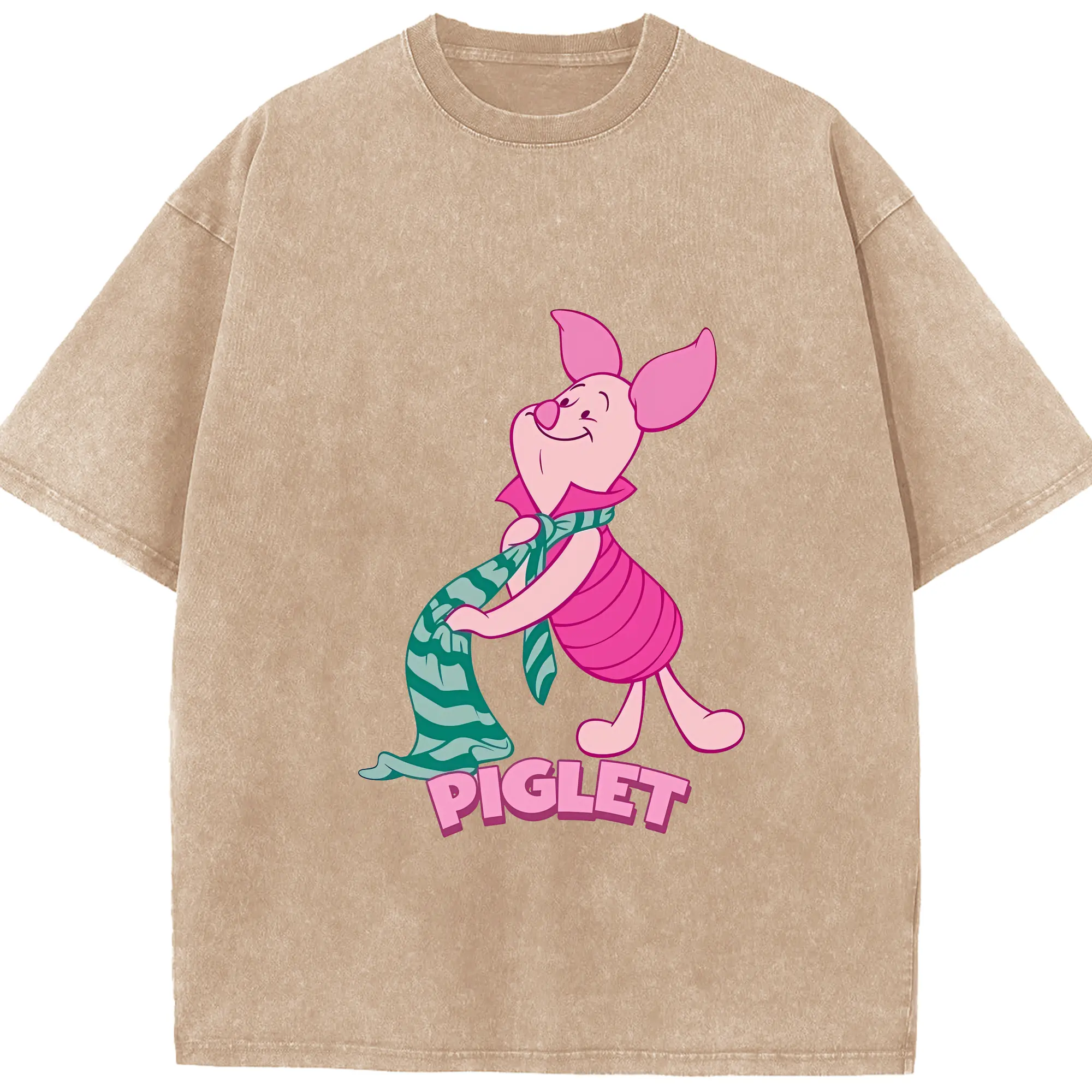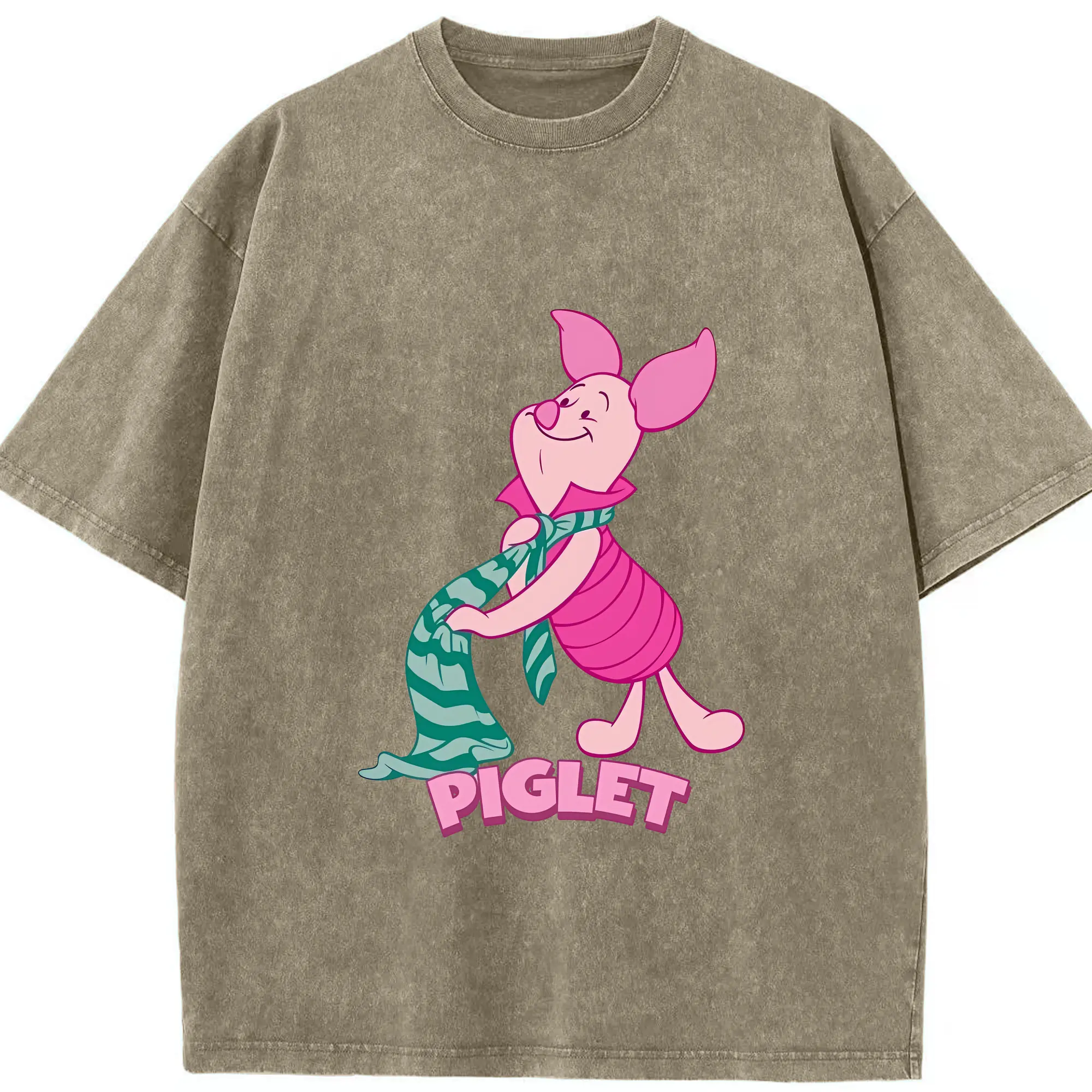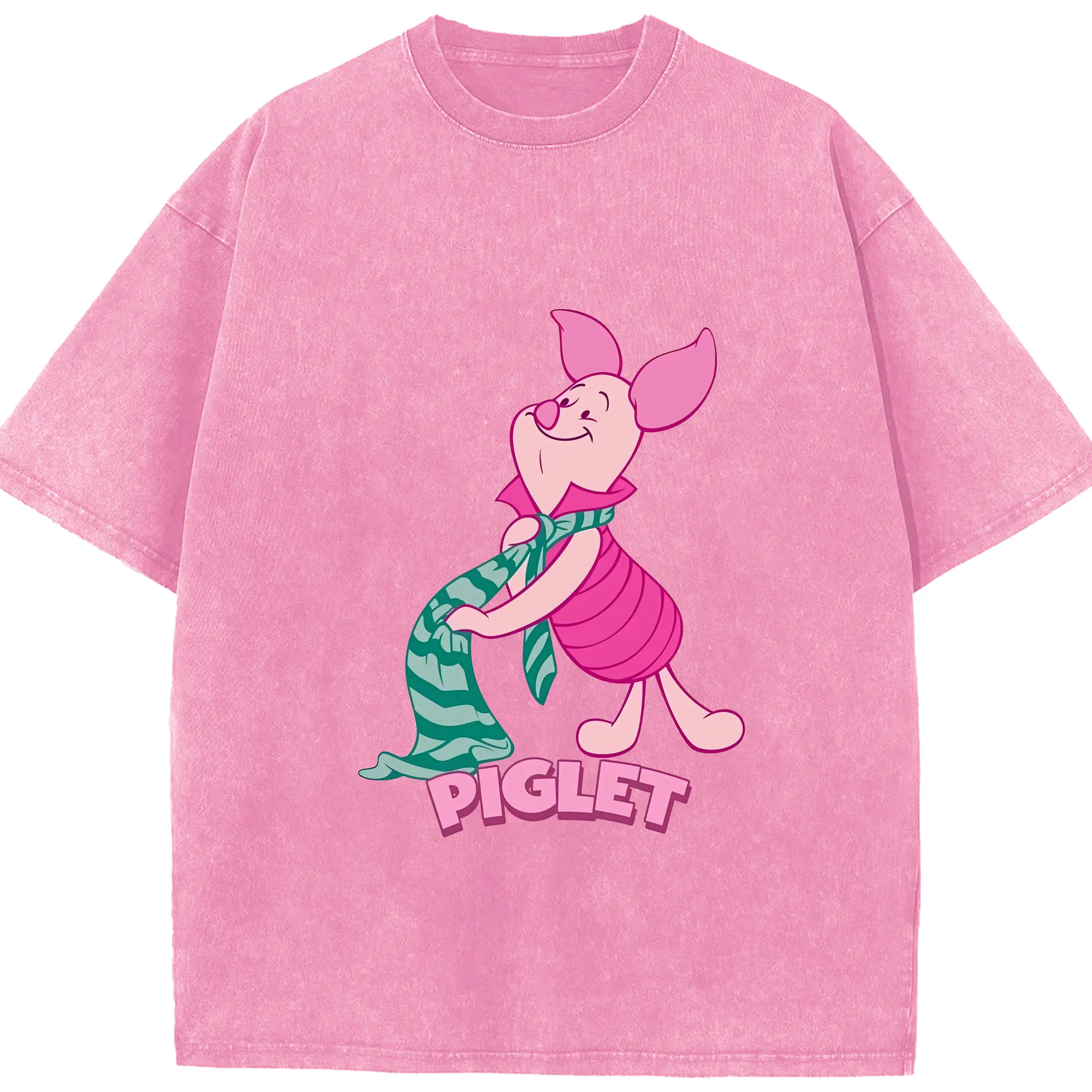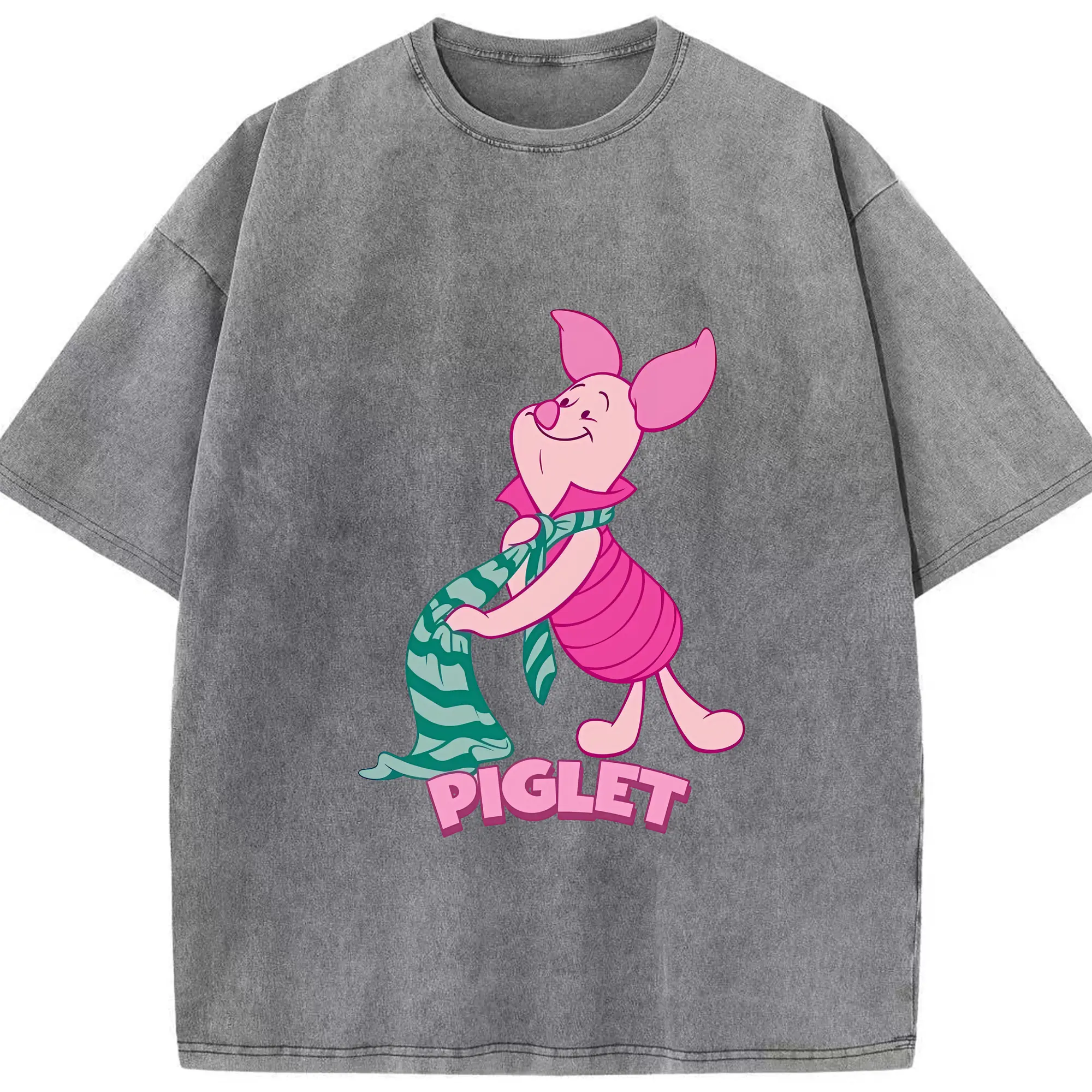 プーさん グッズ ピグレット - 綿100% ヴィンテージ風 半袖Tシャツ ・ 背面プリント ・ 柔らか肌触り ・ 通気性 快適 ・ スポーツ カジュアル 外出用