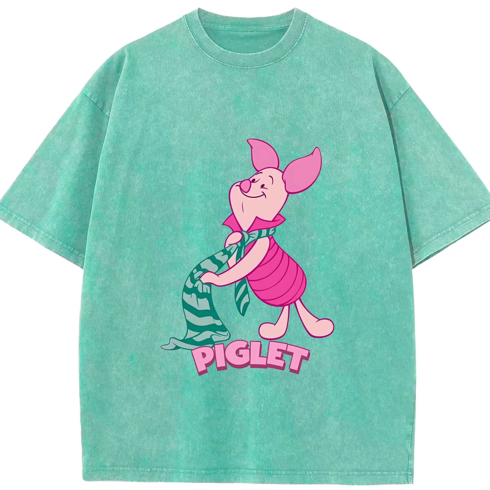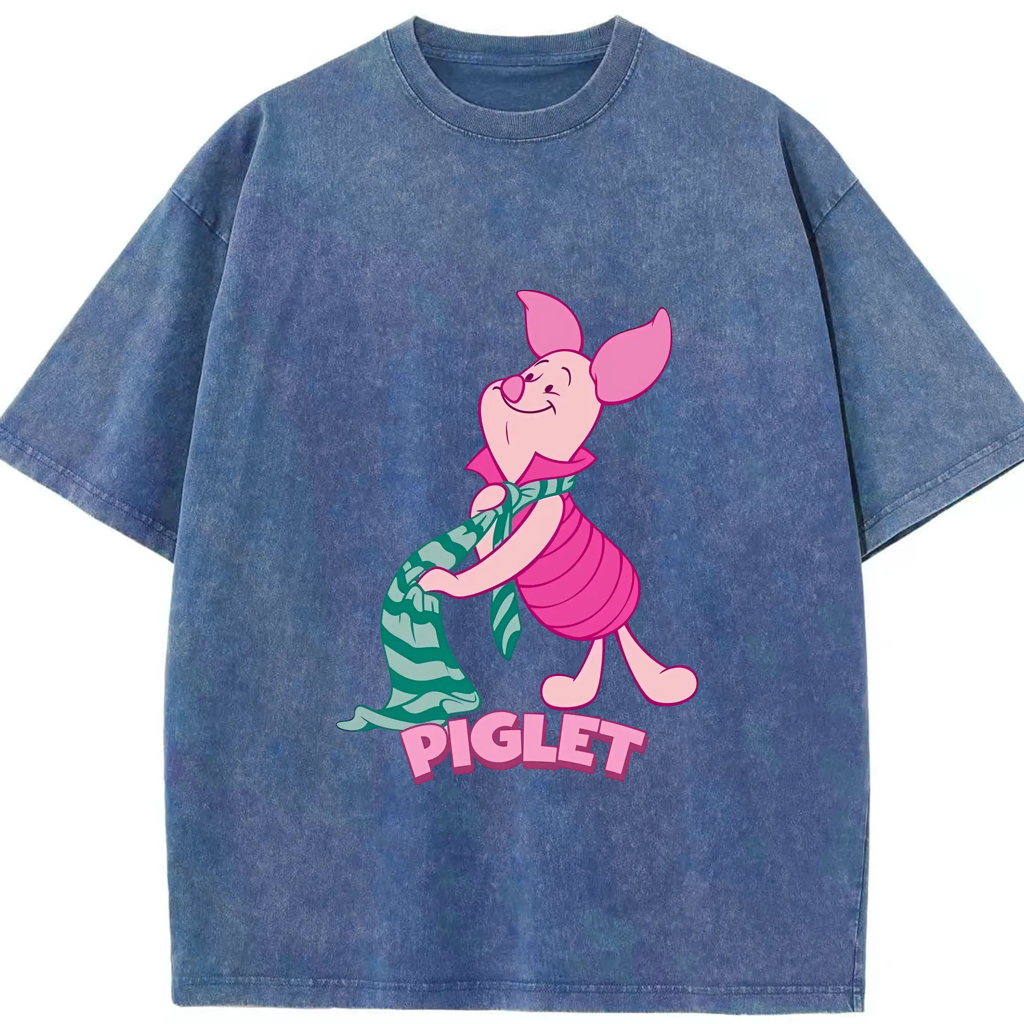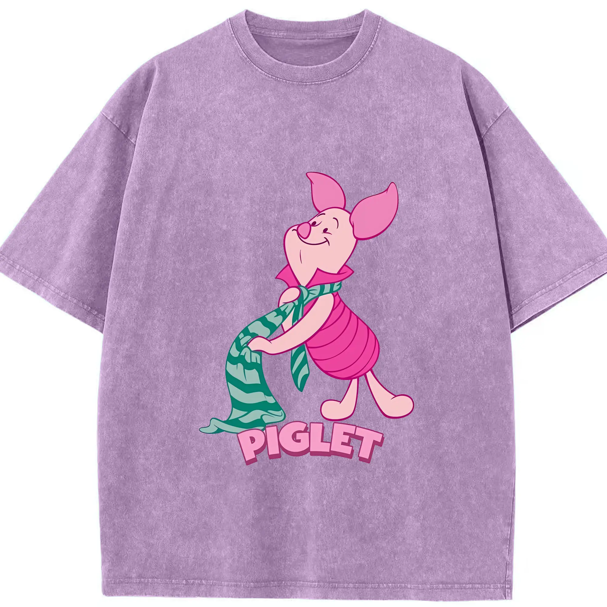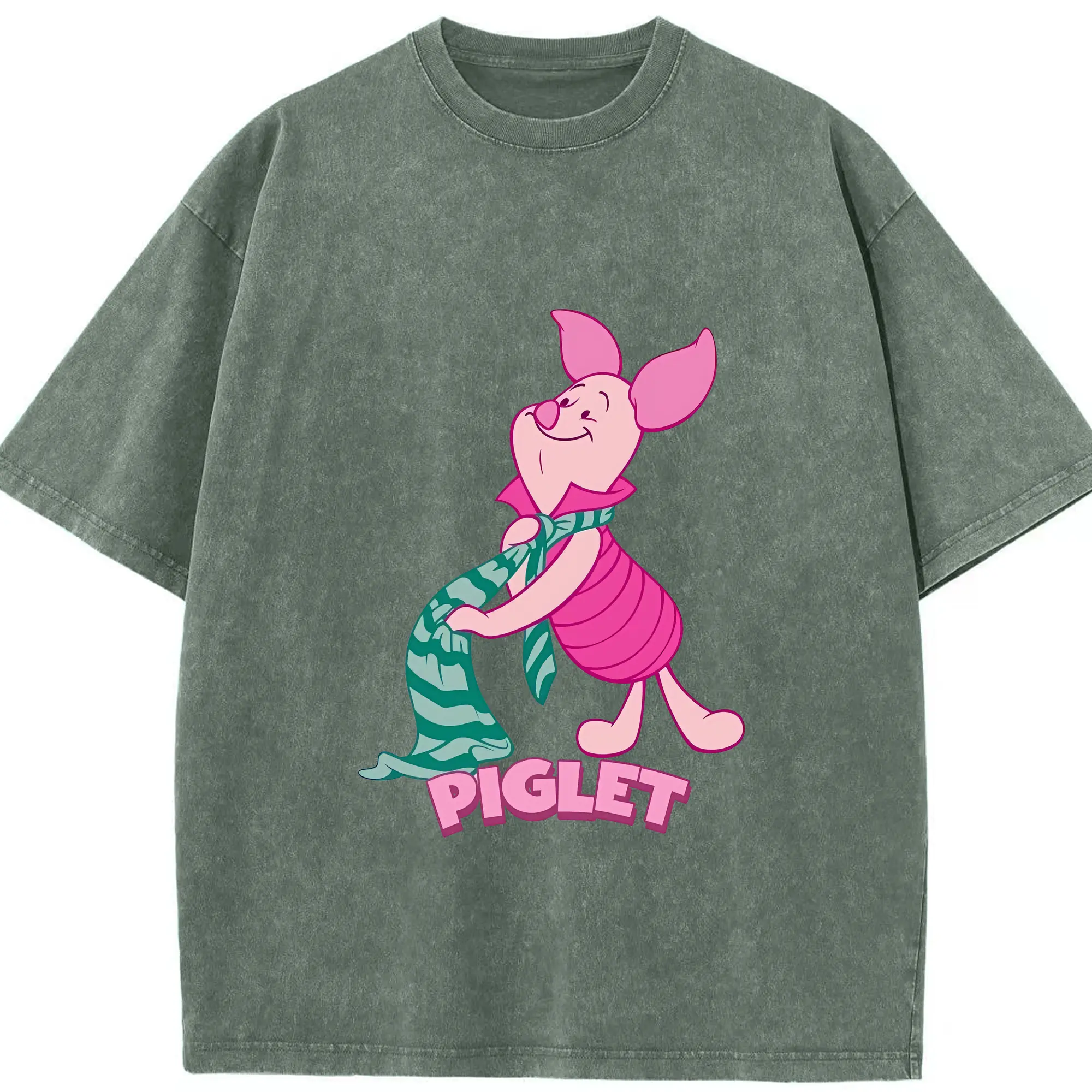 プーさん グッズ ピグレット - 綿100% ヴィンテージ風 半袖Tシャツ ・ 背面プリント ・ 柔らか肌触り ・ 通気性 快適 ・ スポーツ カジュアル 外出用