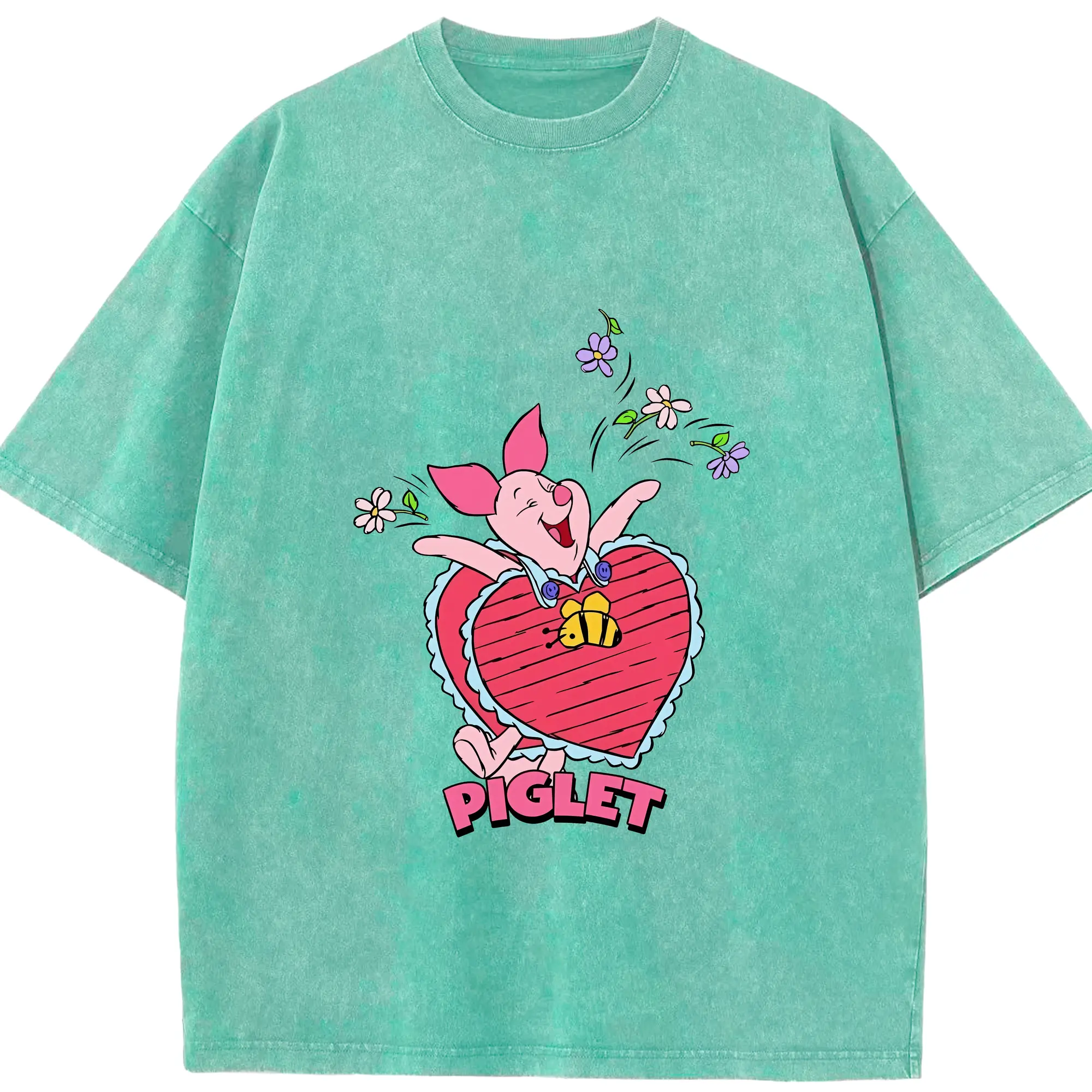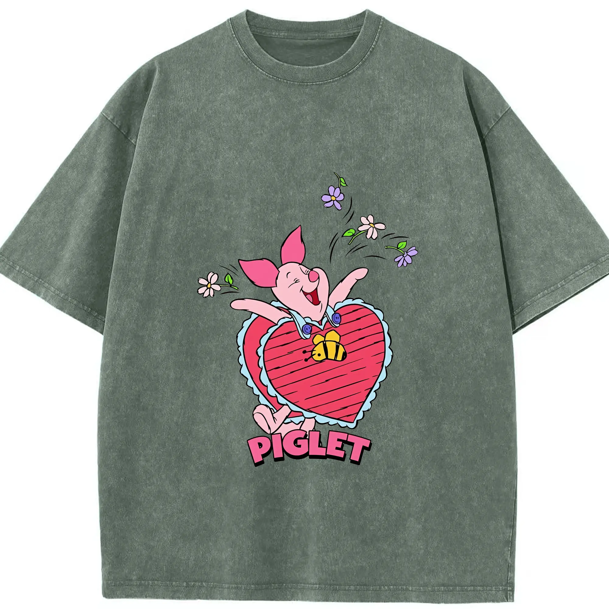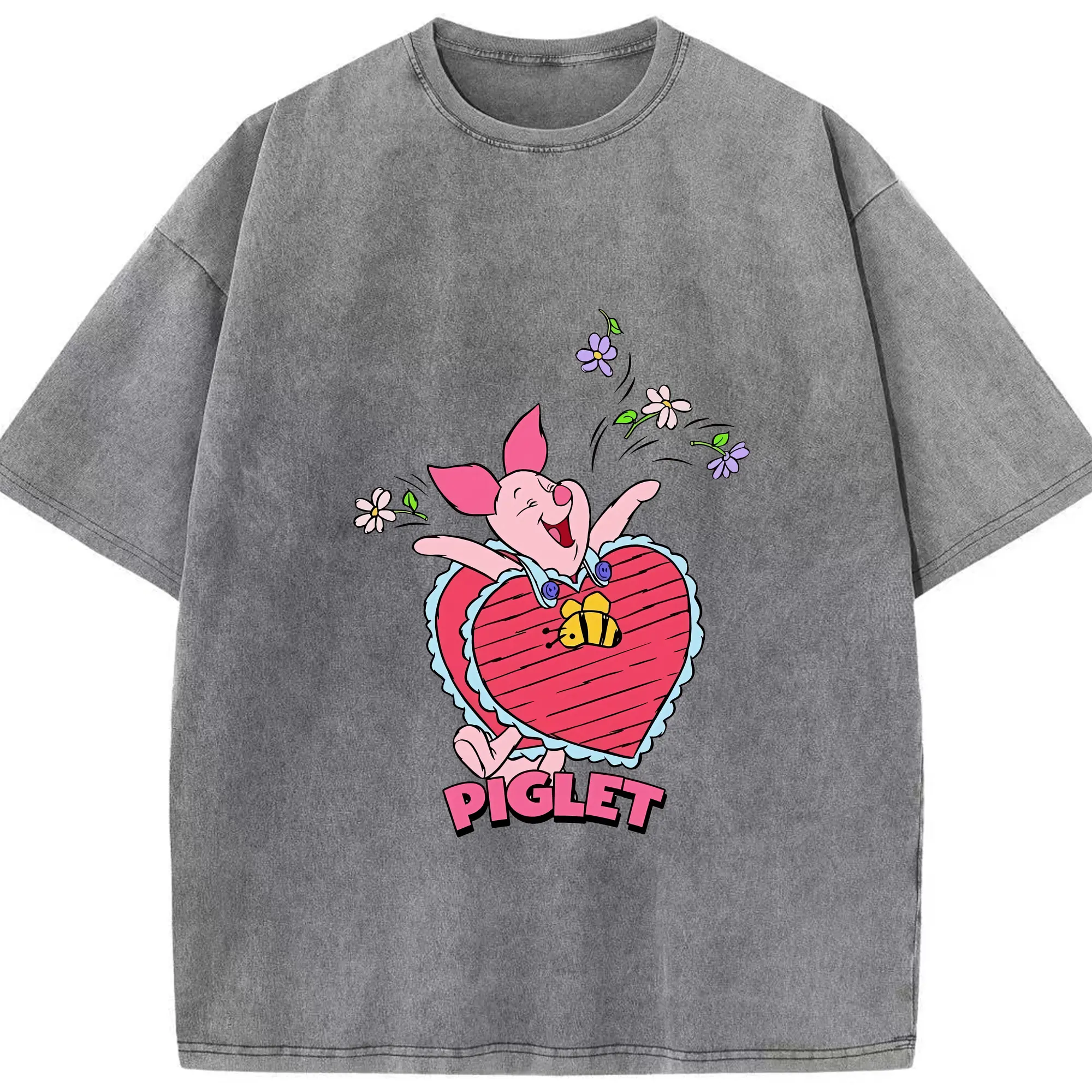 プーさん グッズ ピグレット - 綿100% ヴィンテージ風 半袖Tシャツ ・ 背面プリント ・ 柔らか肌触り ・ 通気性 快適 ・ スポーツ カジュアル 外出用