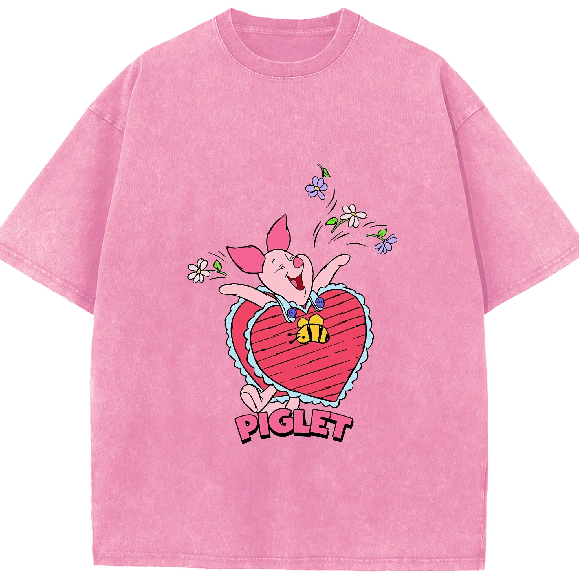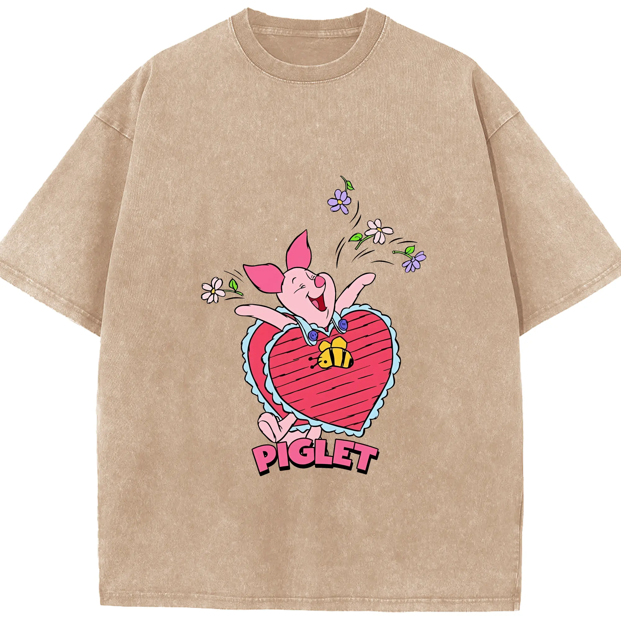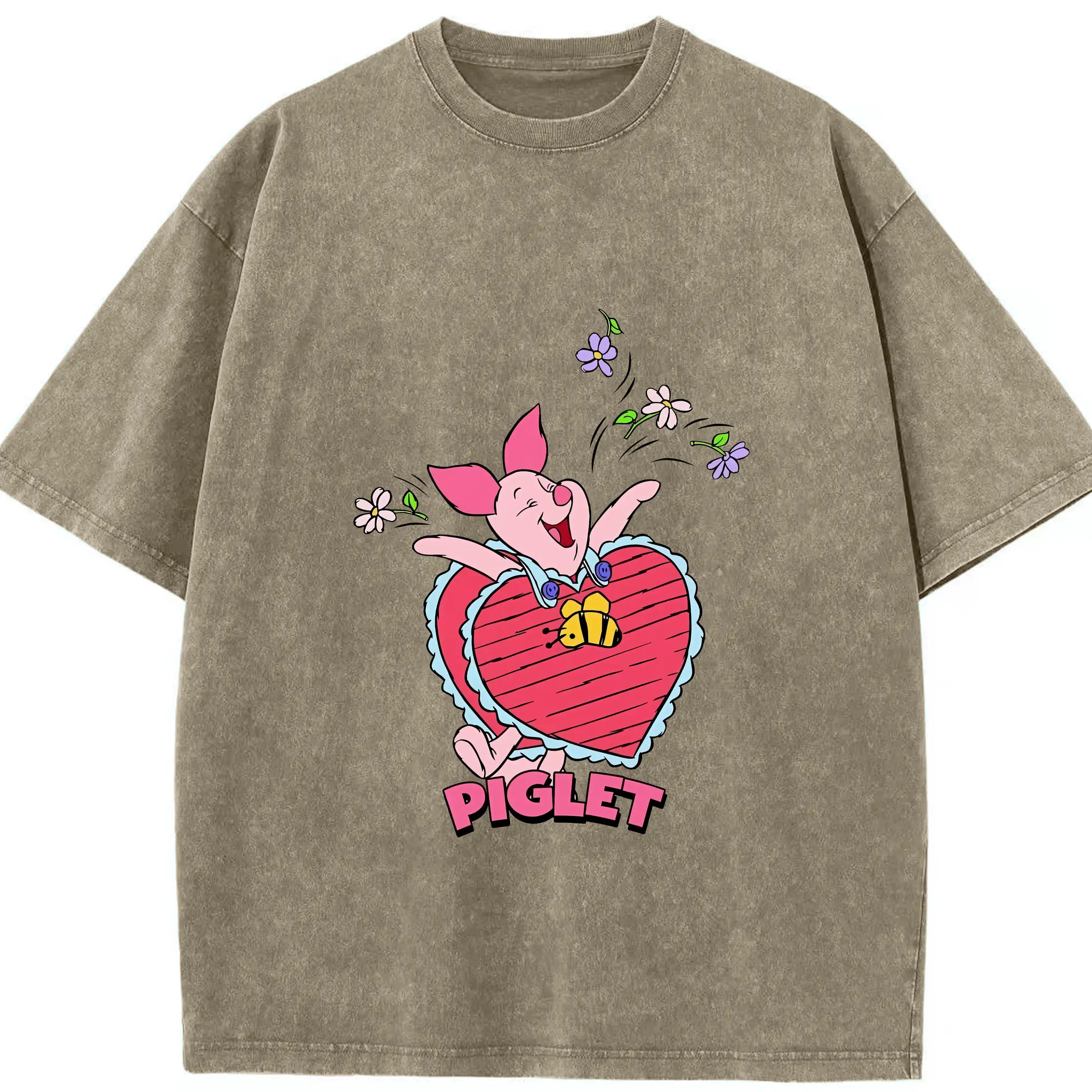 プーさん グッズ ピグレット - 綿100% ヴィンテージ風 半袖Tシャツ ・ 背面プリント ・ 柔らか肌触り ・ 通気性 快適 ・ スポーツ カジュアル 外出用