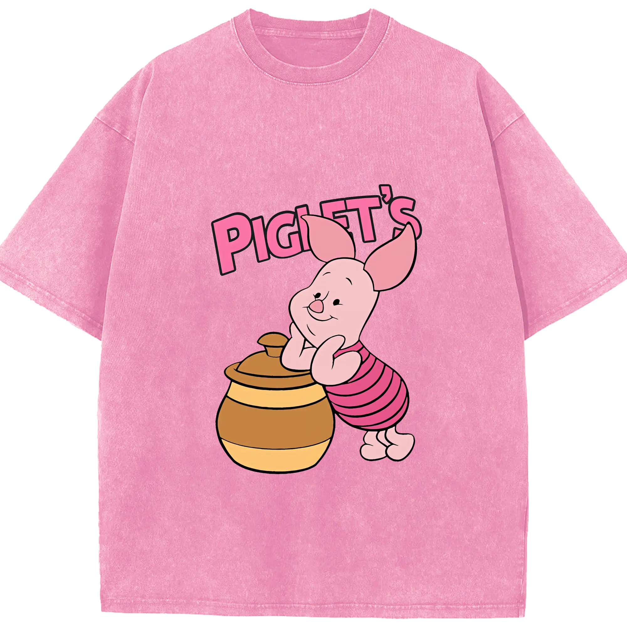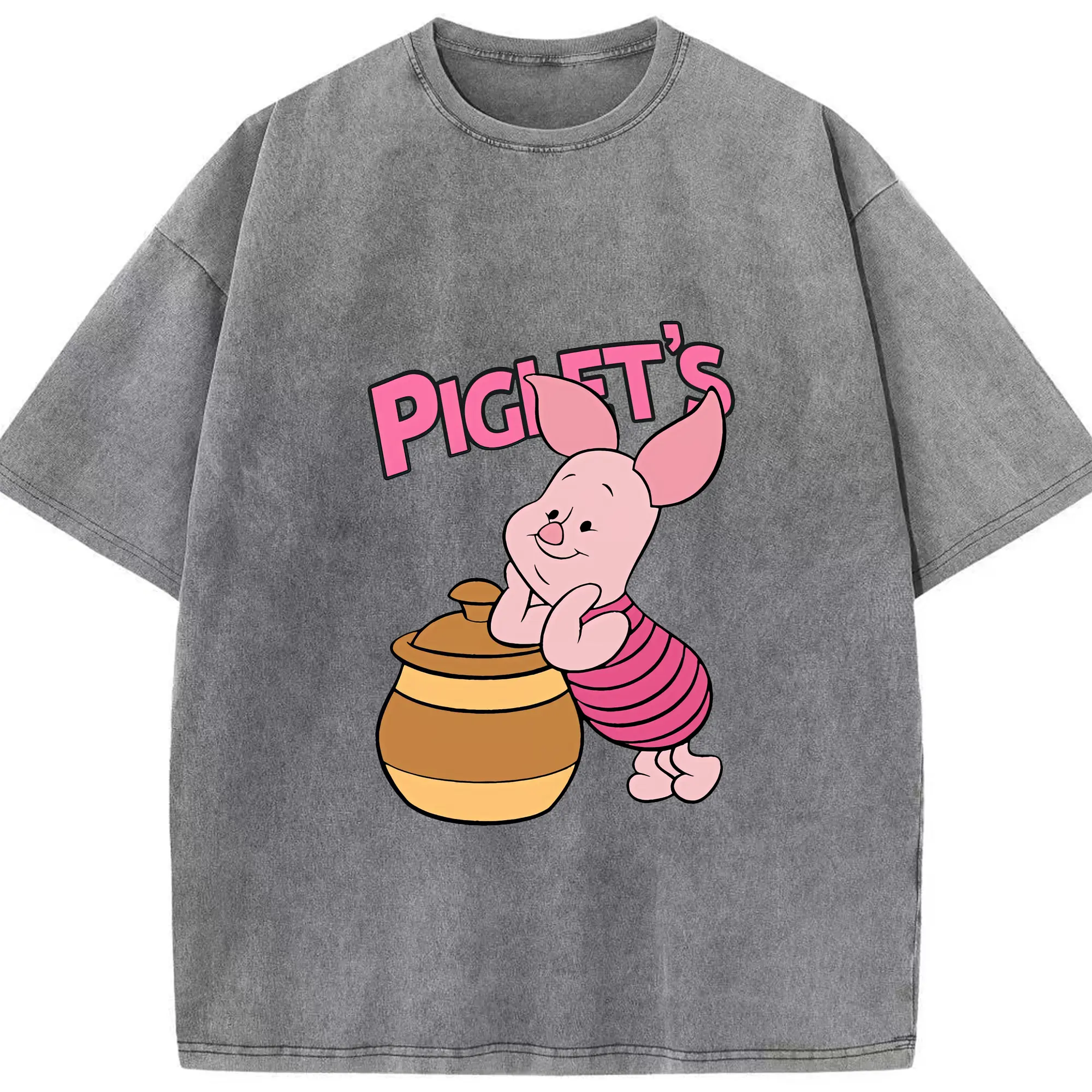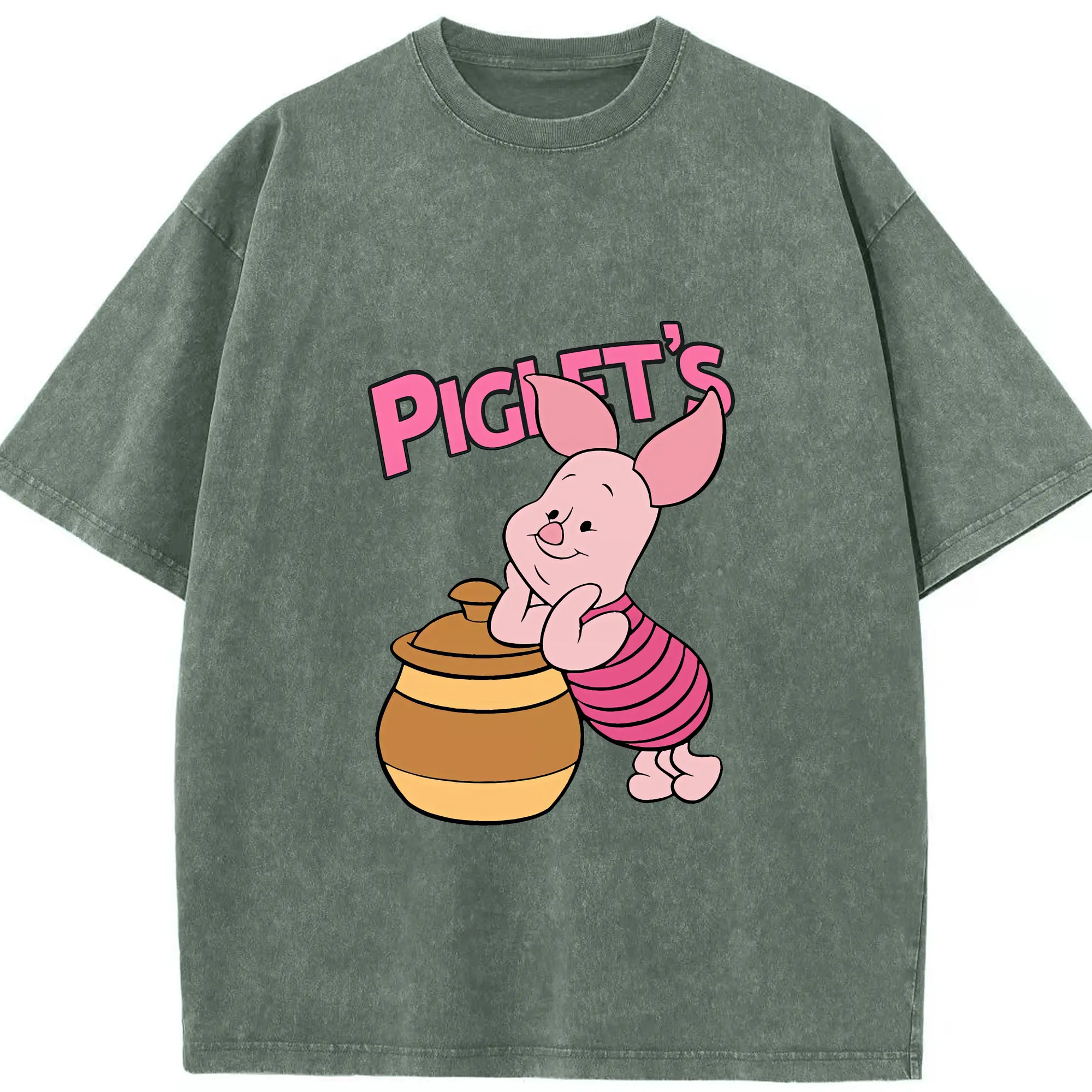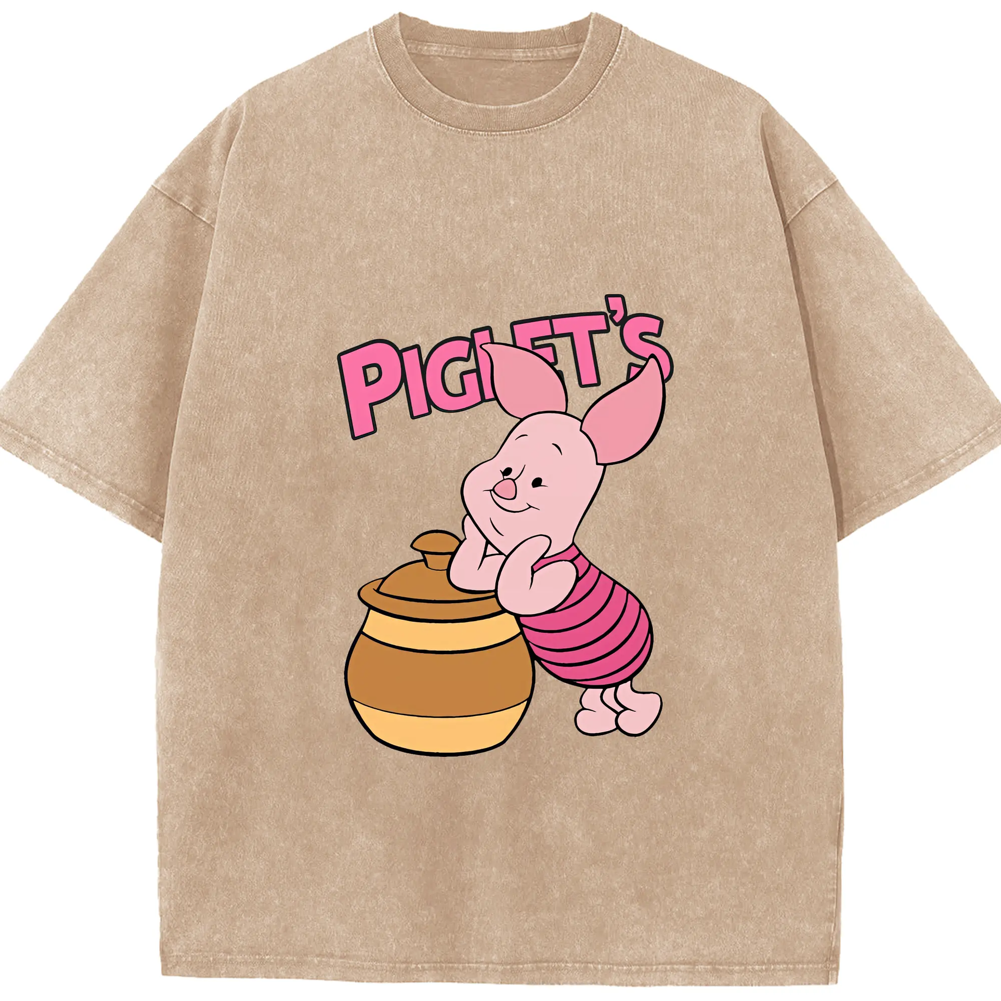 プーさん グッズ ピグレット - 綿100% ヴィンテージ風 半袖Tシャツ ・ 背面プリント ・ 柔らか肌触り ・ 通気性 快適 ・ スポーツ カジュアル 外出用