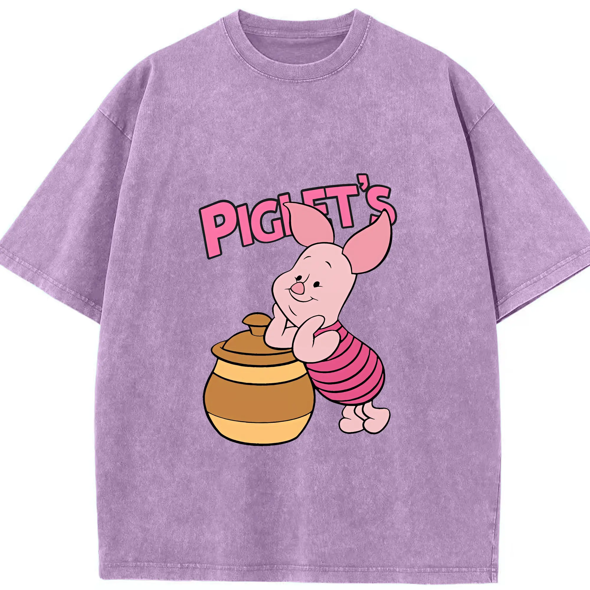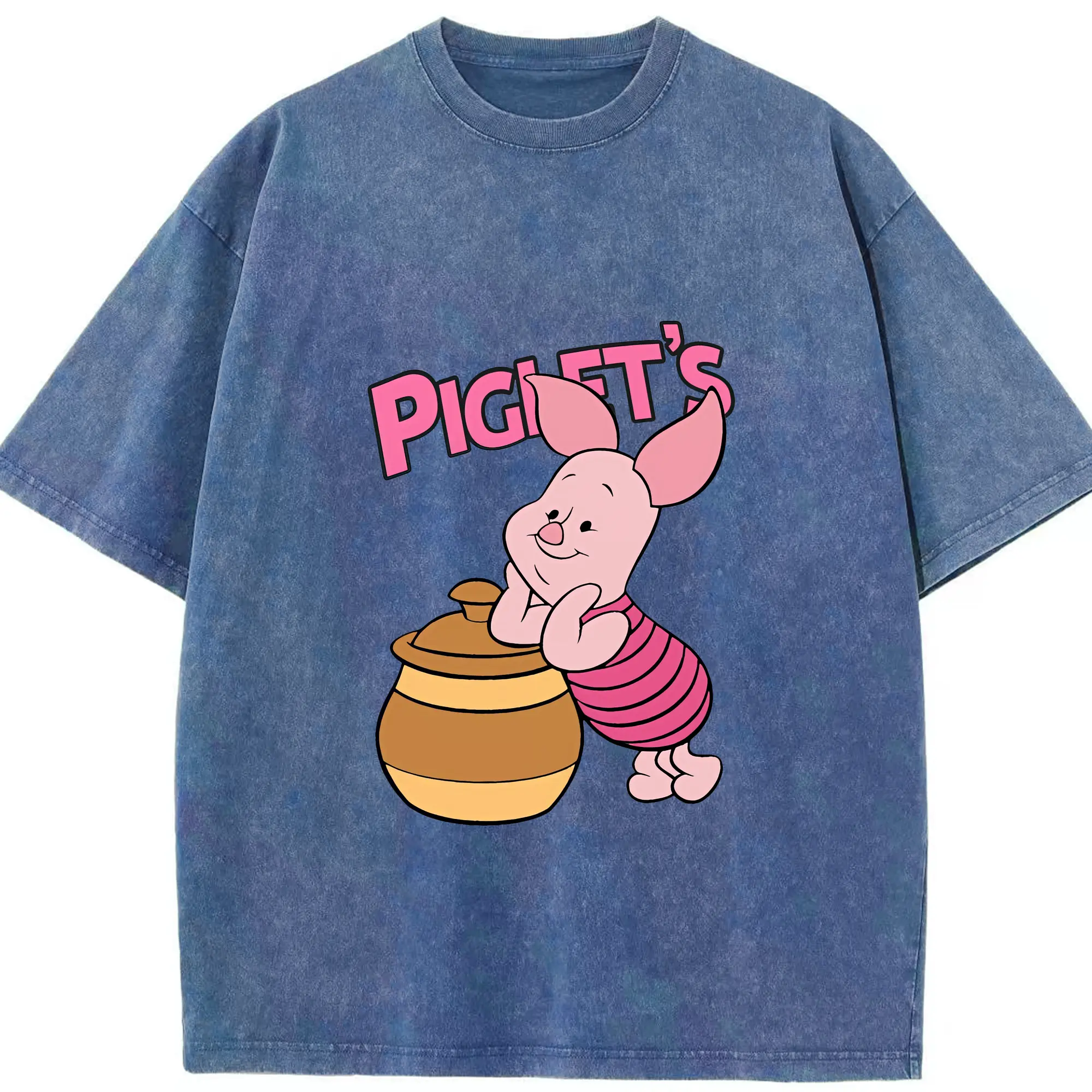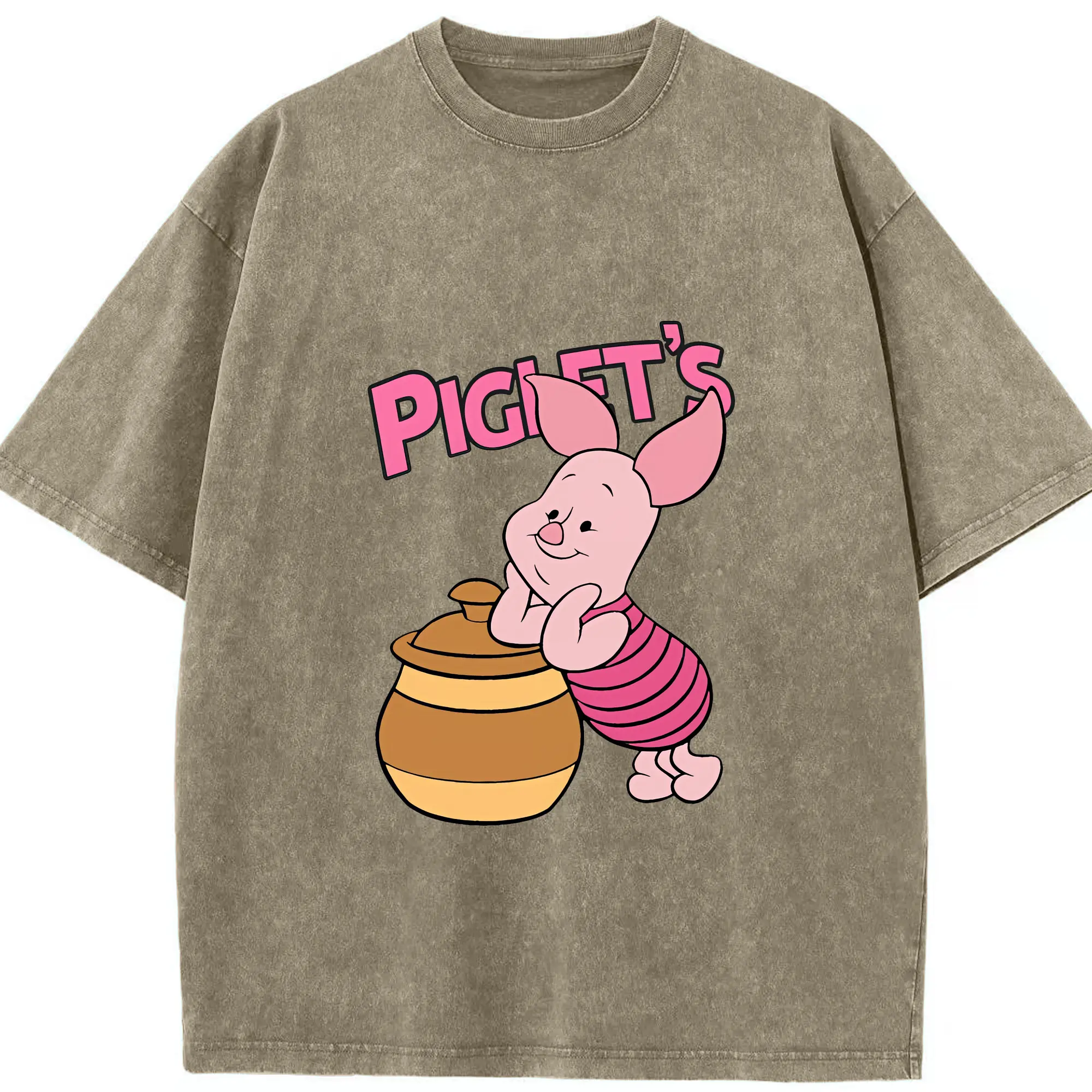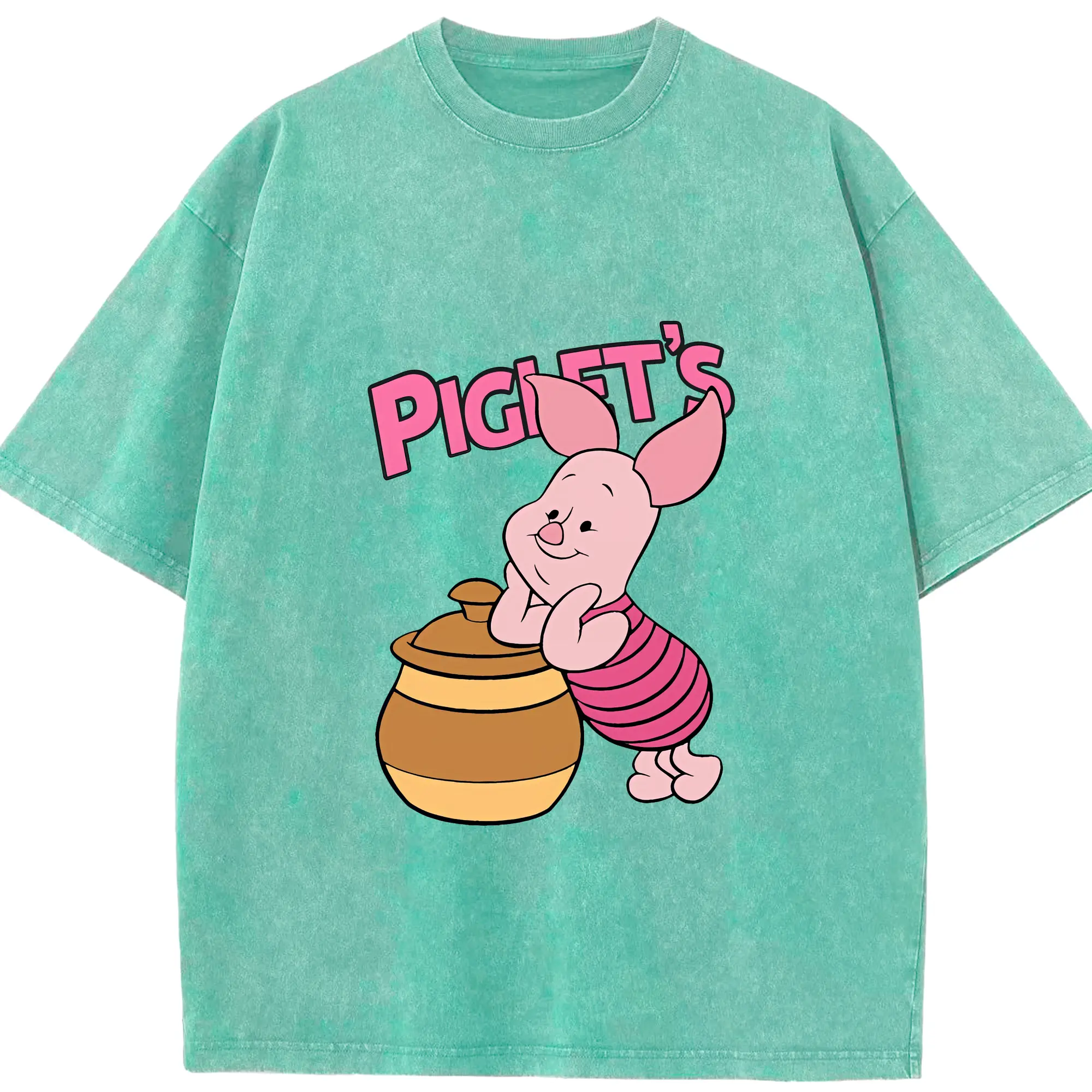 プーさん グッズ ピグレット - 綿100% ヴィンテージ風 半袖Tシャツ ・ 背面プリント ・ 柔らか肌触り ・ 通気性 快適 ・ スポーツ カジュアル 外出用