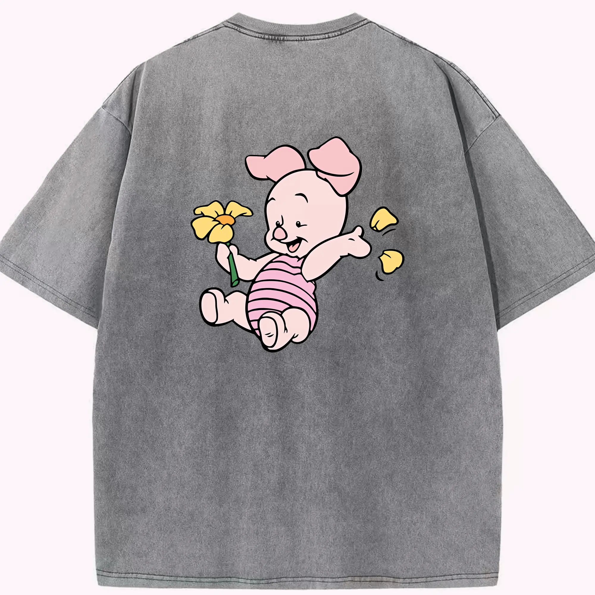 プーさん グッズ ピグレット - 綿100% 半袖Tシャツ ・ バックプリント ・ 快適 通気性 ・ 日常使い 散歩 スポーツ用