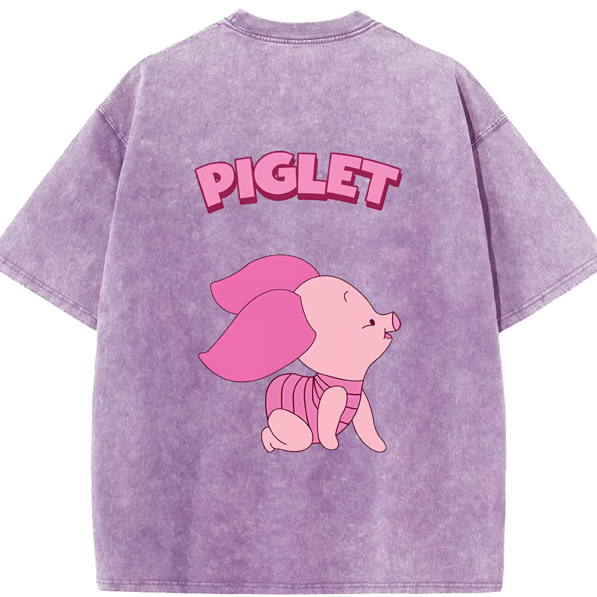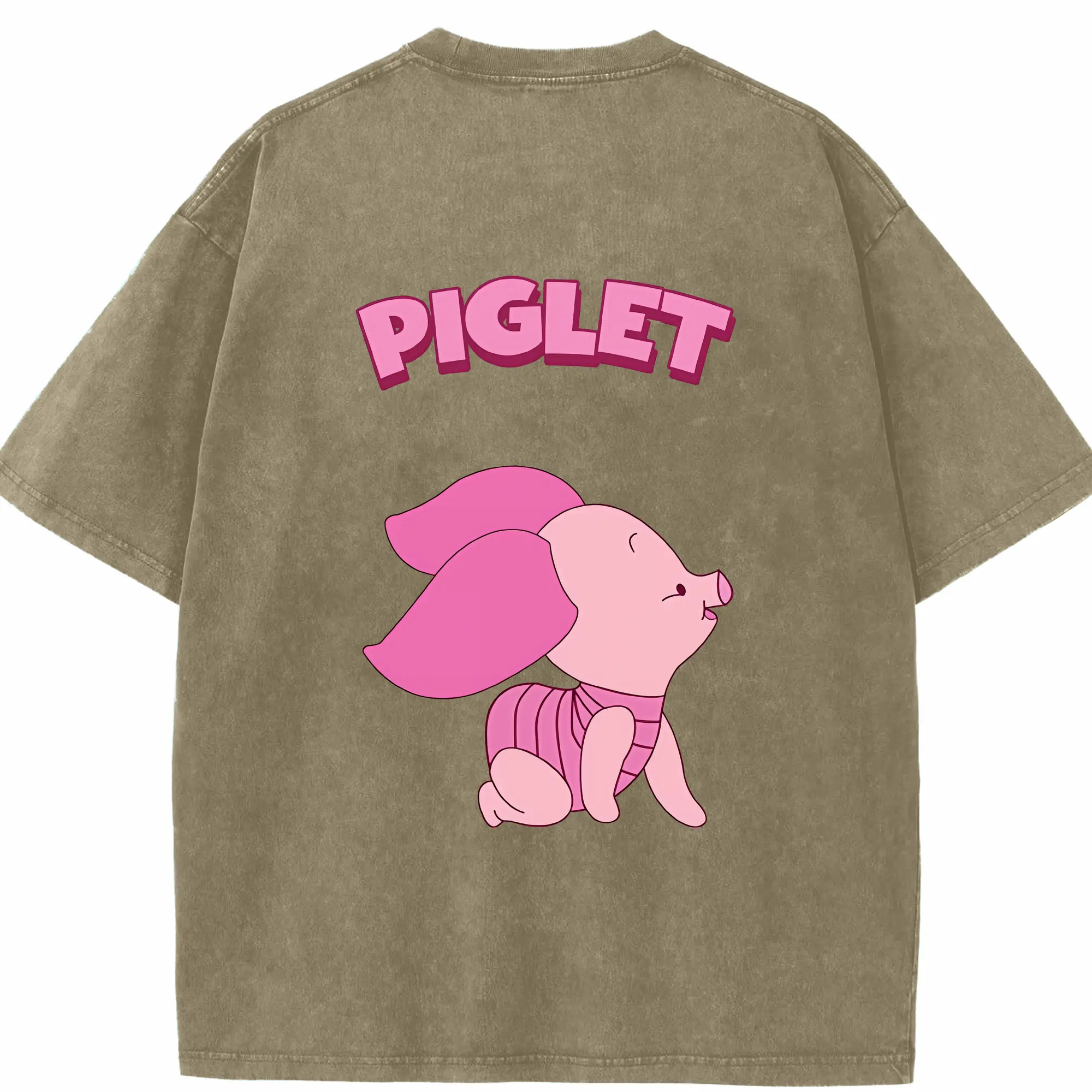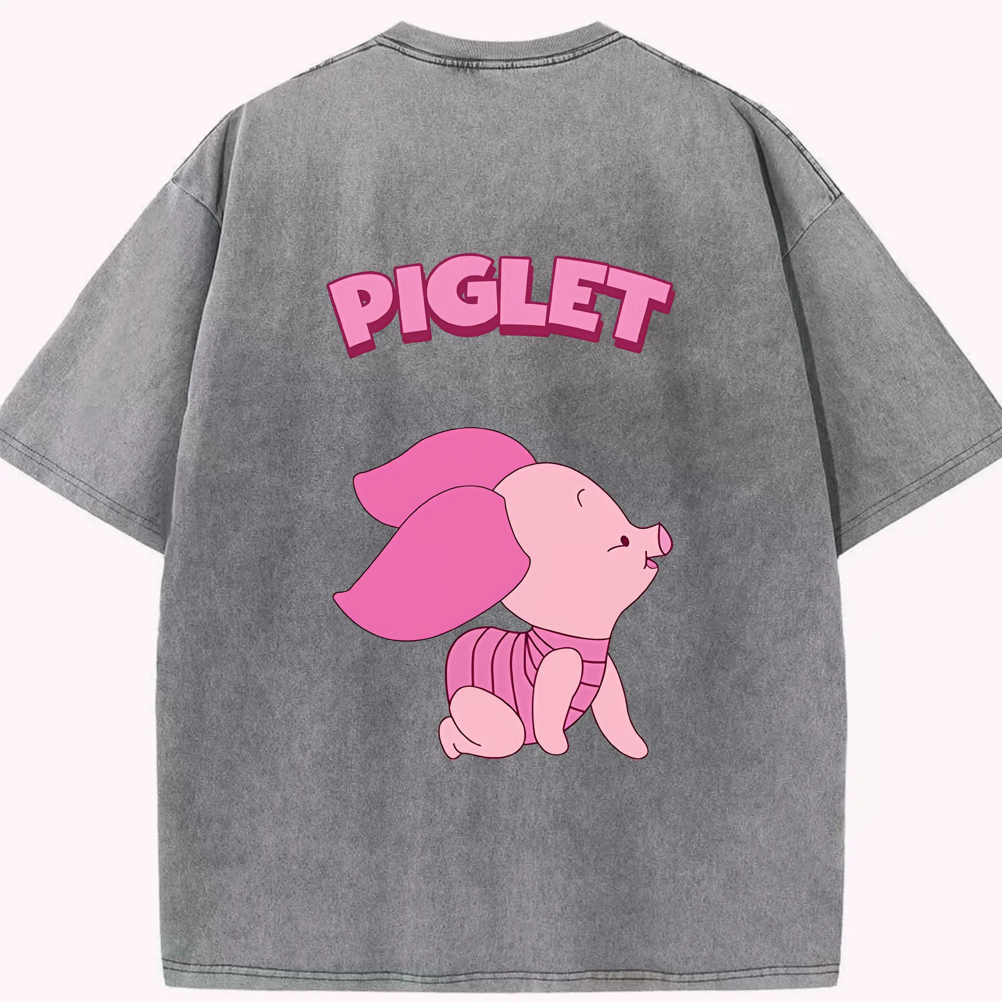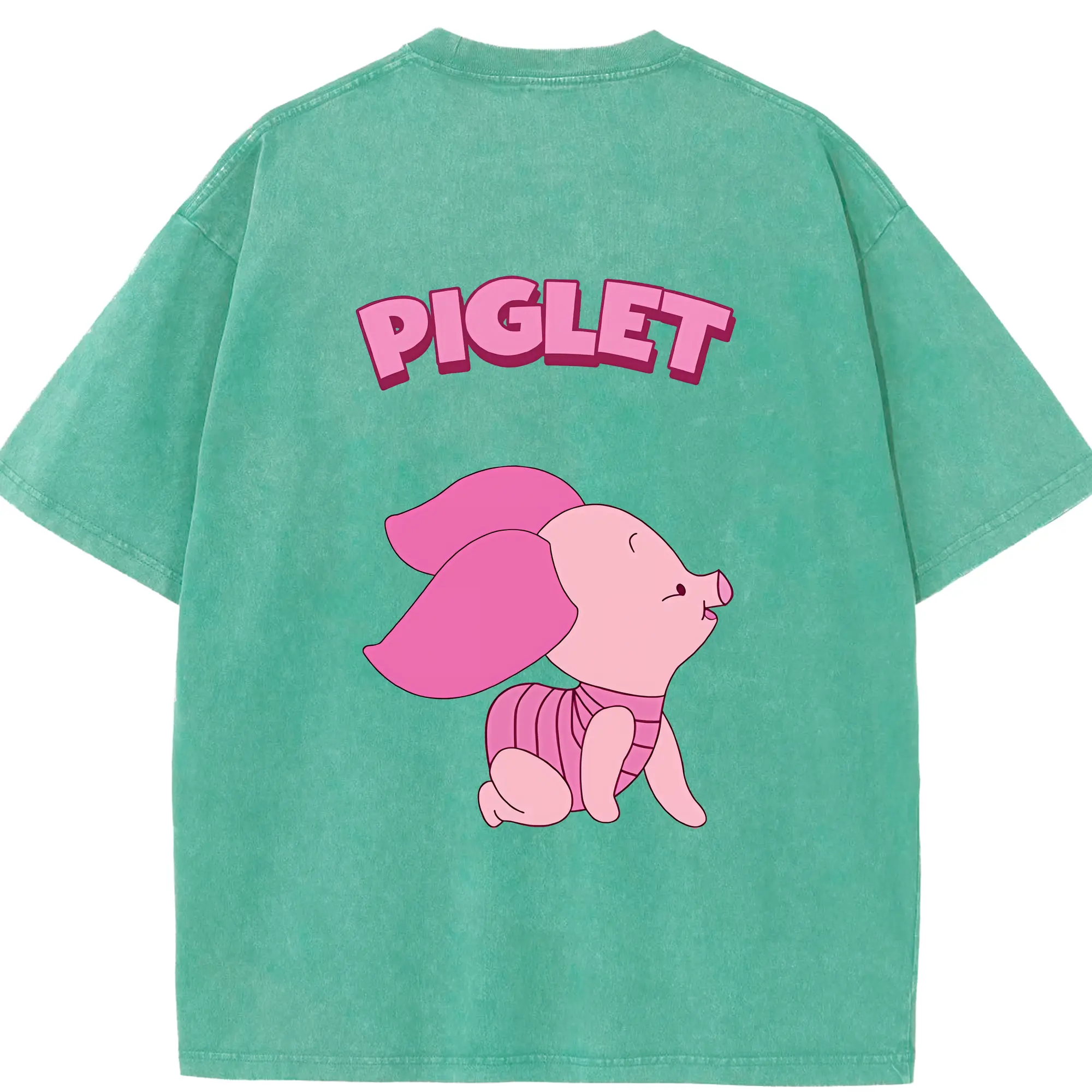 プーさん グッズ ピグレット - 綿100% ヴィンテージ風 半袖Tシャツ ・ フロントプリント ・ 柔らか肌触り ・ 通気性 快適 ・ スポーツ カジュアル 外出用