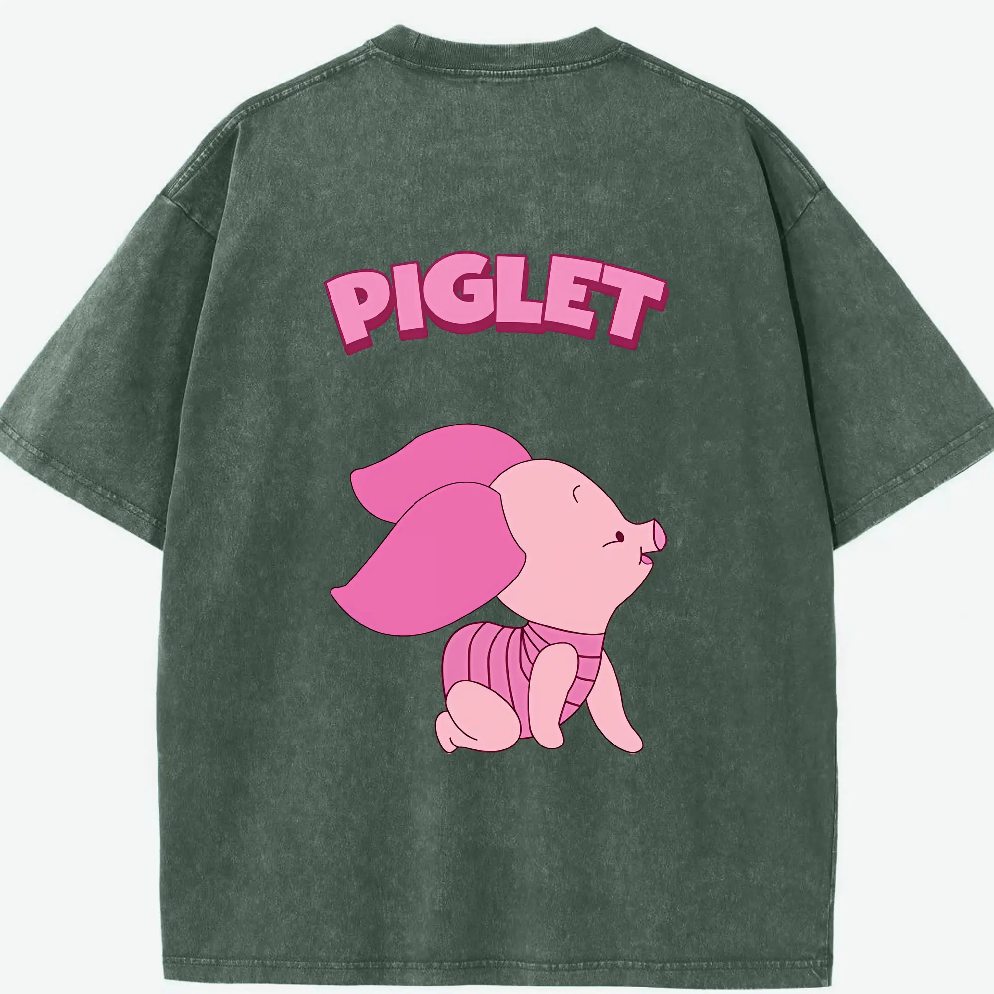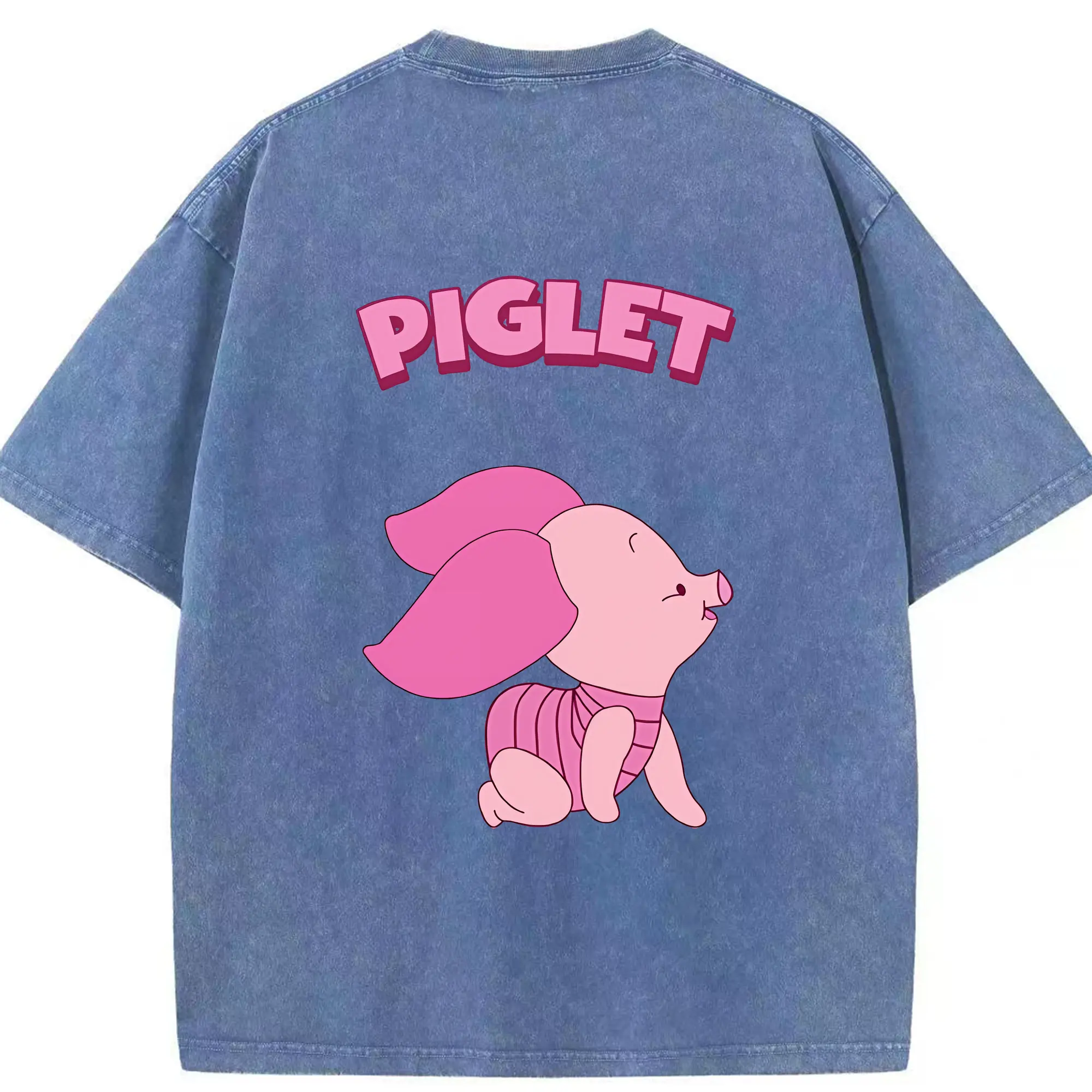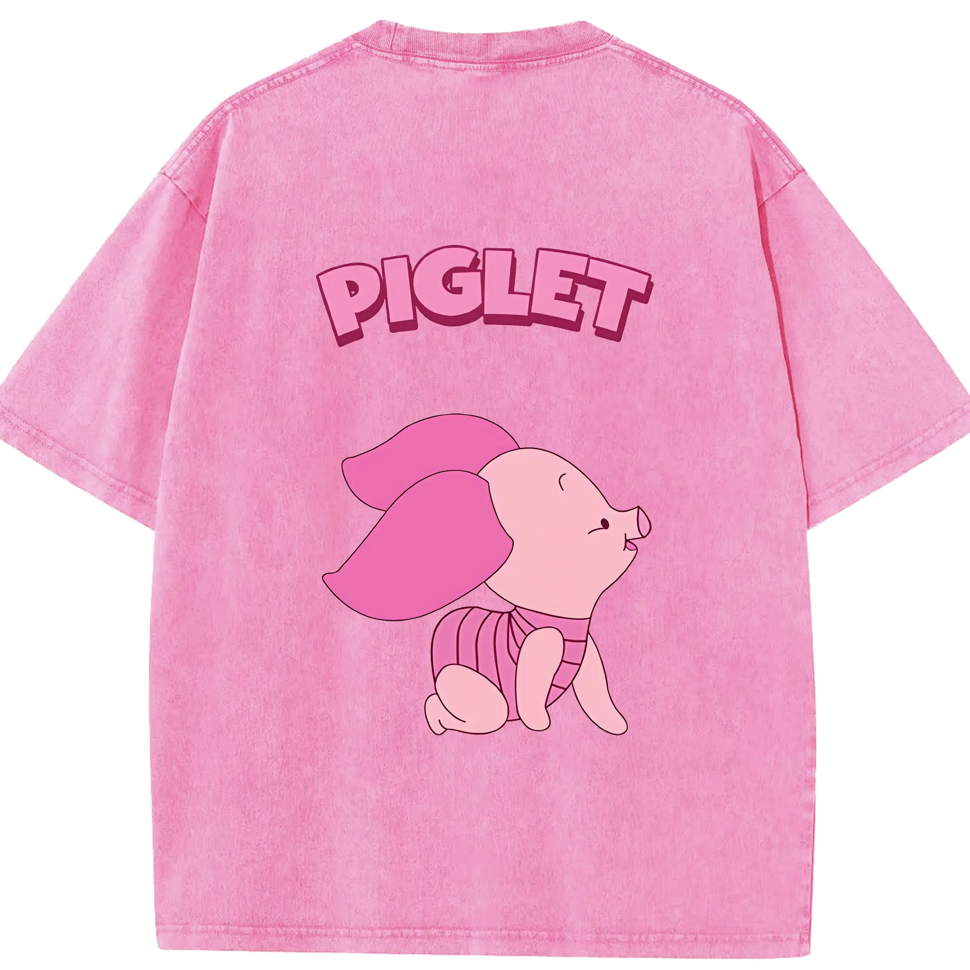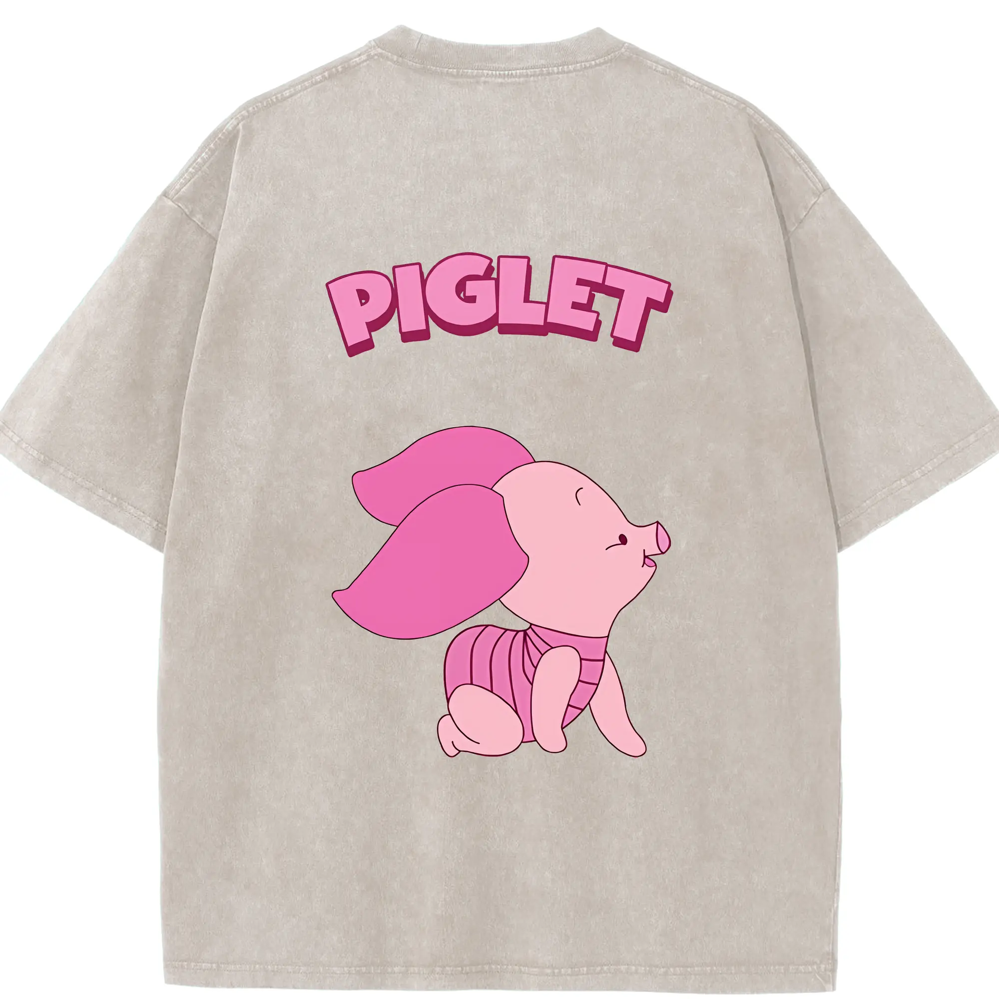 プーさん グッズ ピグレット - 綿100% ヴィンテージ風 半袖Tシャツ ・ フロントプリント ・ 柔らか肌触り ・ 通気性 快適 ・ スポーツ カジュアル 外出用