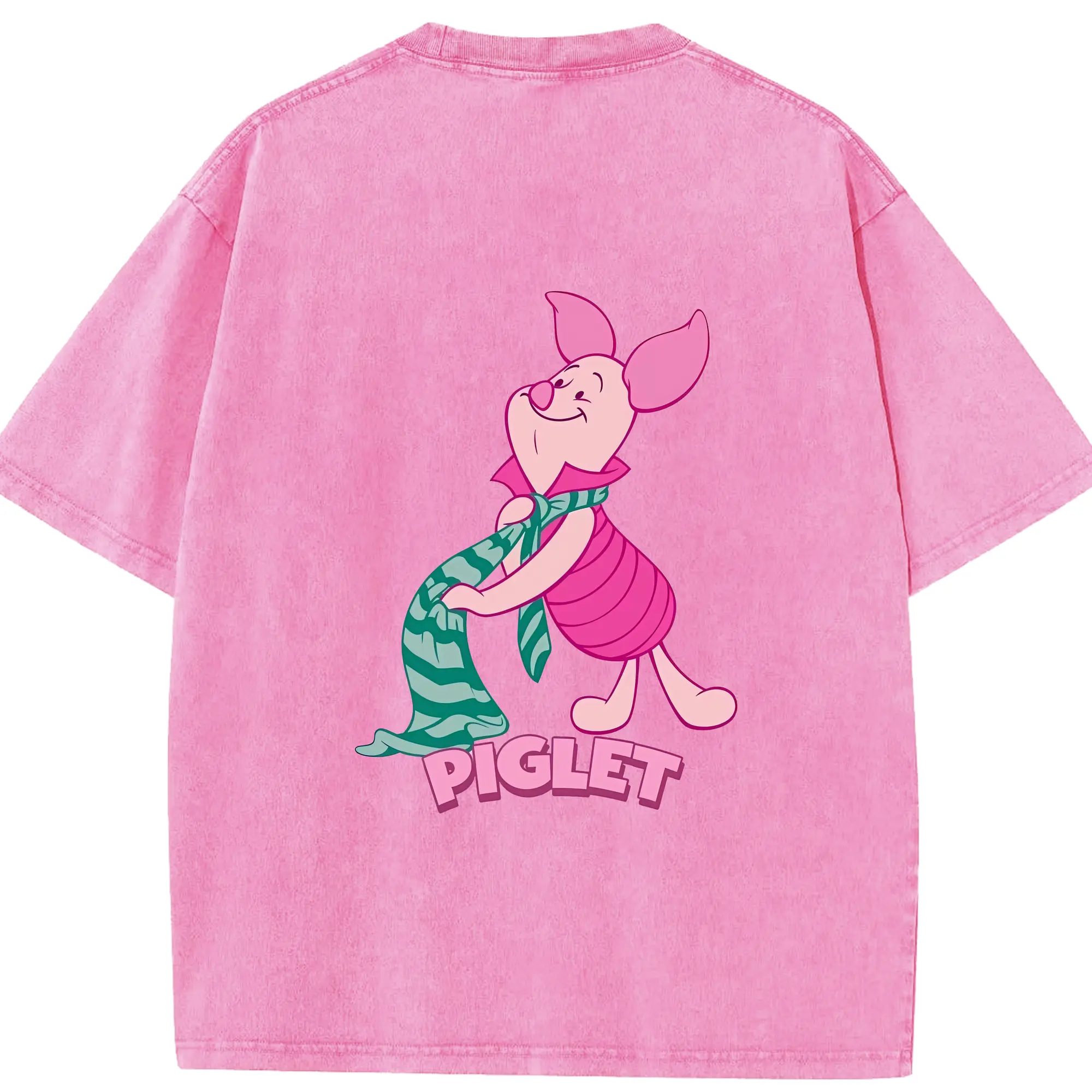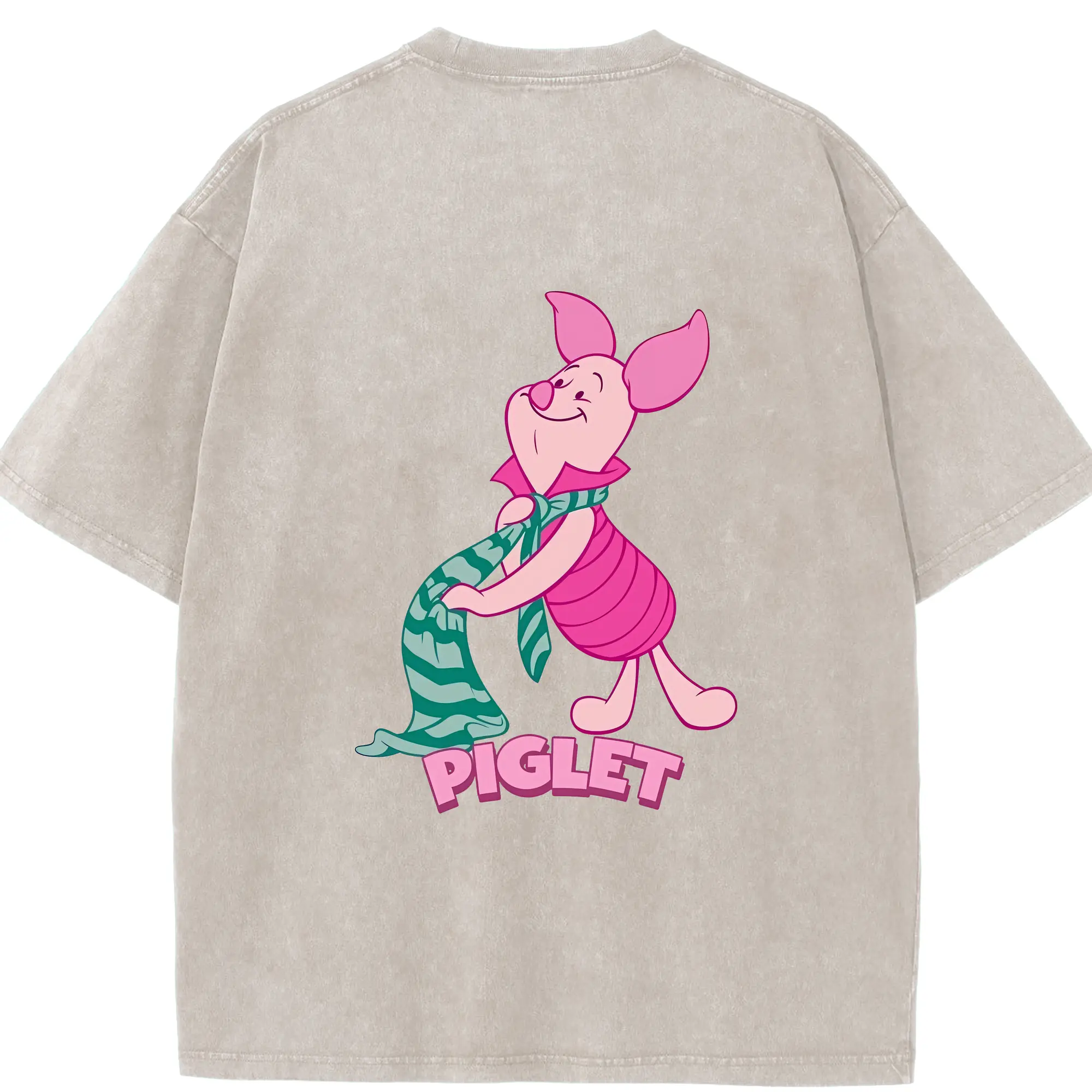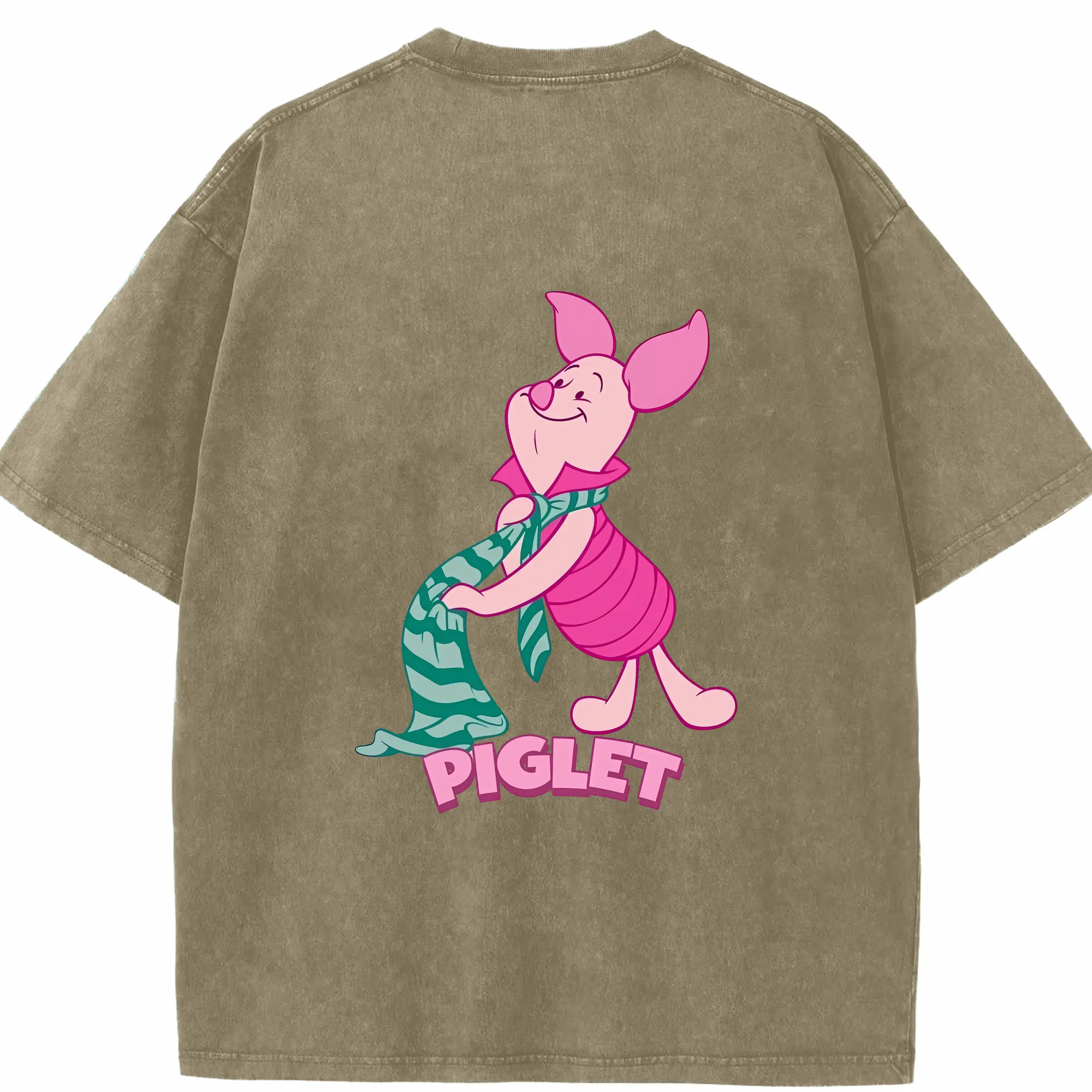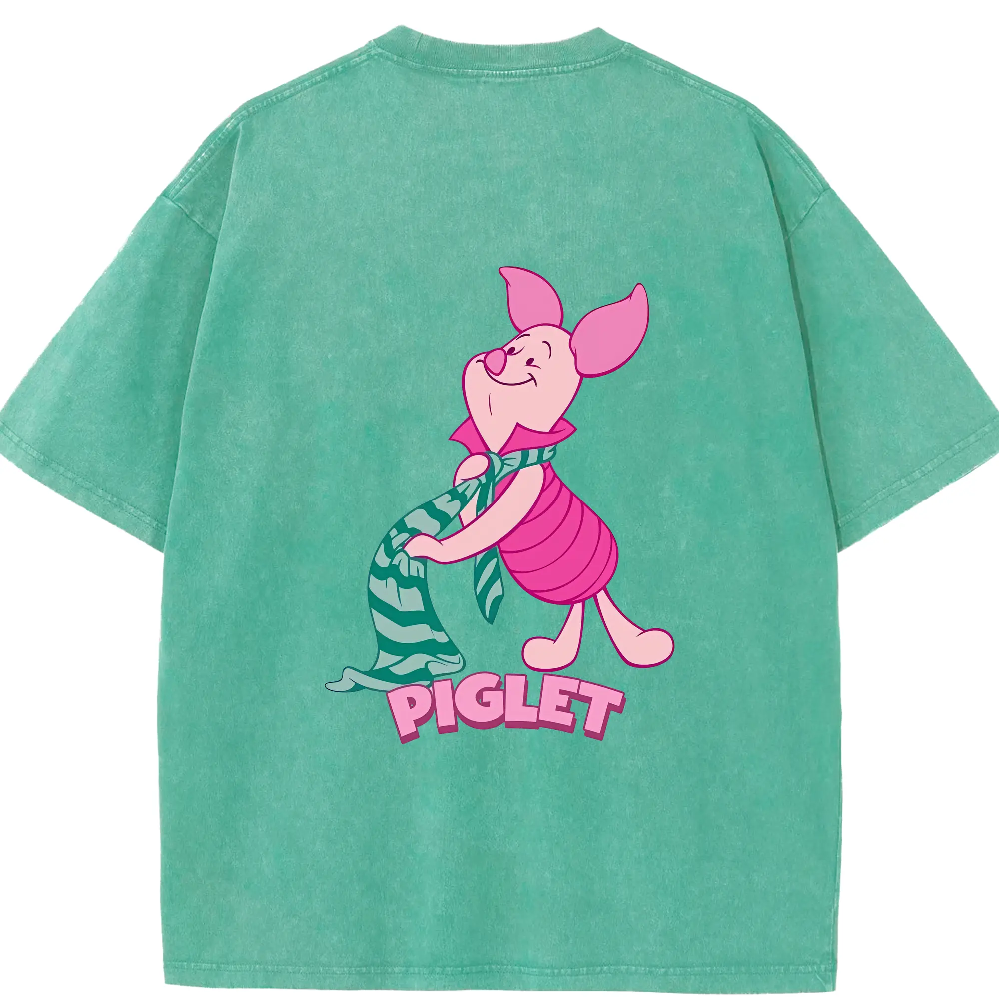 プーさん グッズ ピグレット - 綿100% ヴィンテージ風 半袖Tシャツ ・ フロントプリント ・ 柔らか肌触り ・ 通気性 快適 ・ スポーツ カジュアル 外出用