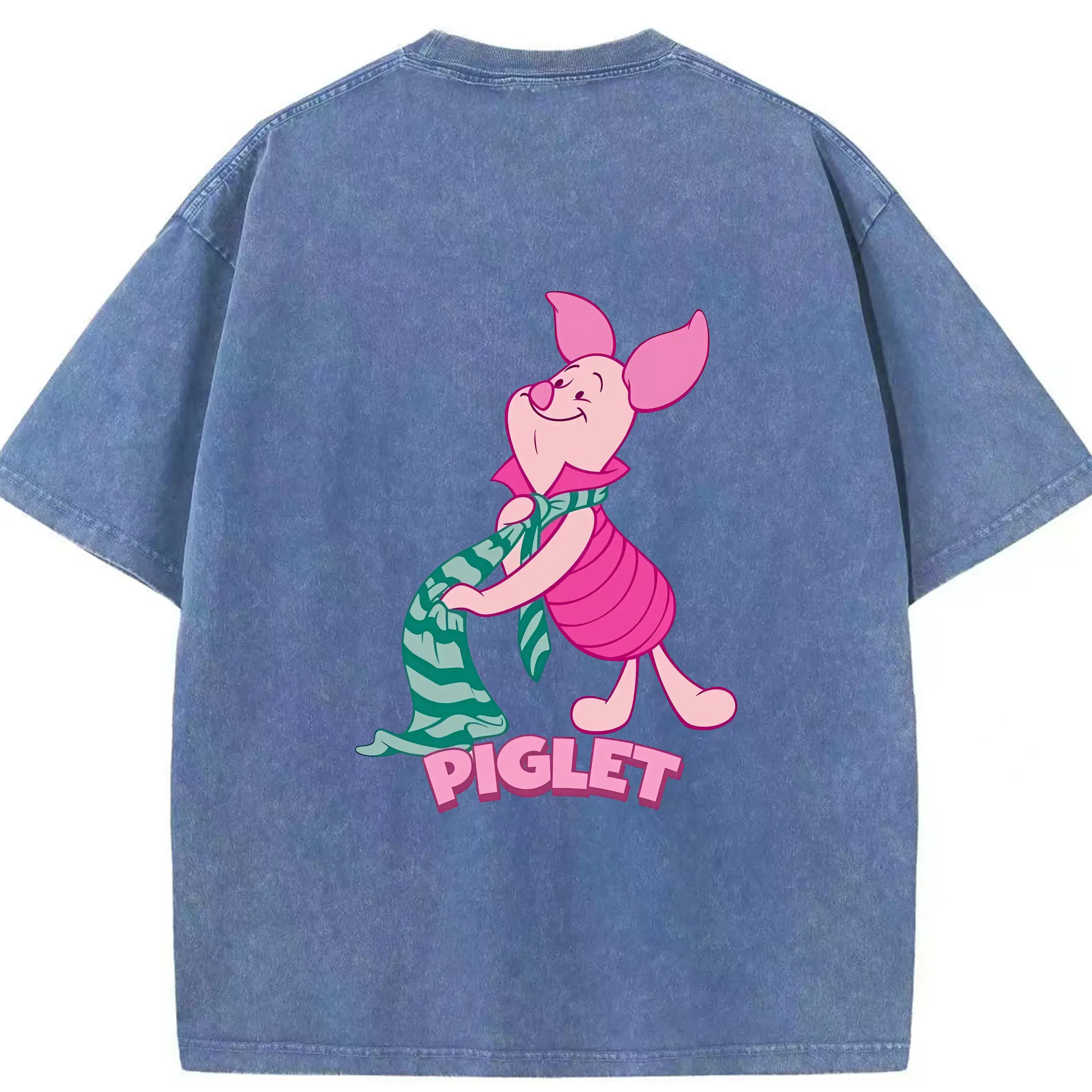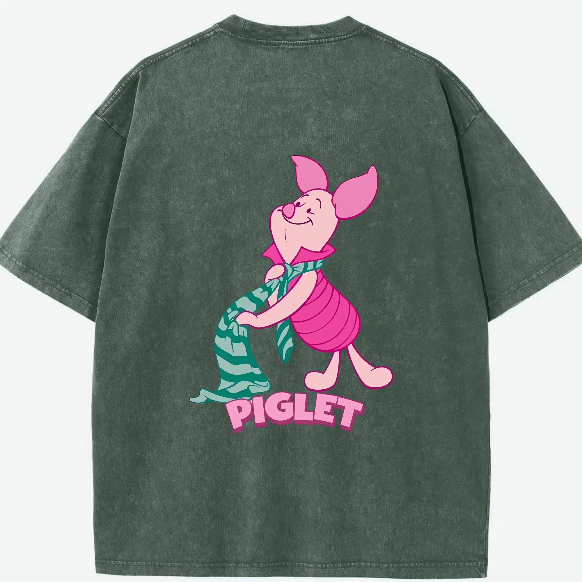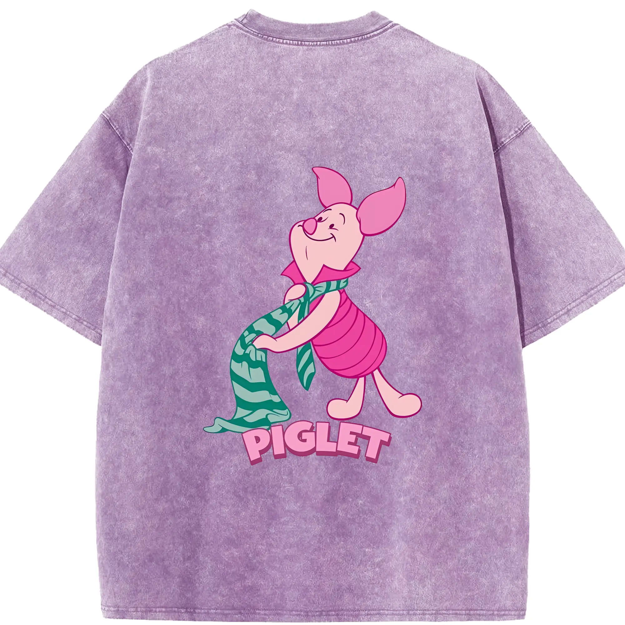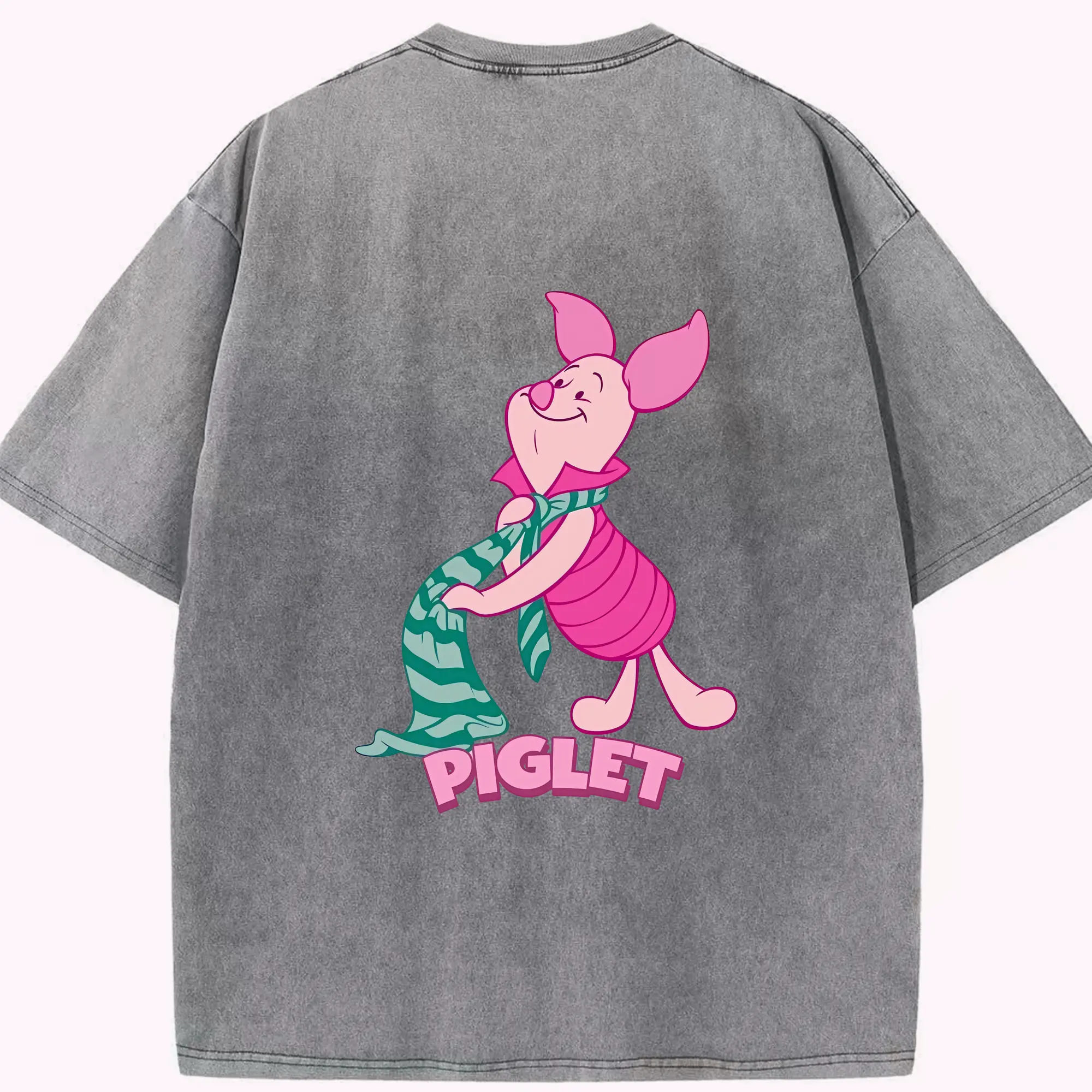 プーさん グッズ ピグレット - 綿100% ヴィンテージ風 半袖Tシャツ ・ フロントプリント ・ 柔らか肌触り ・ 通気性 快適 ・ スポーツ カジュアル 外出用