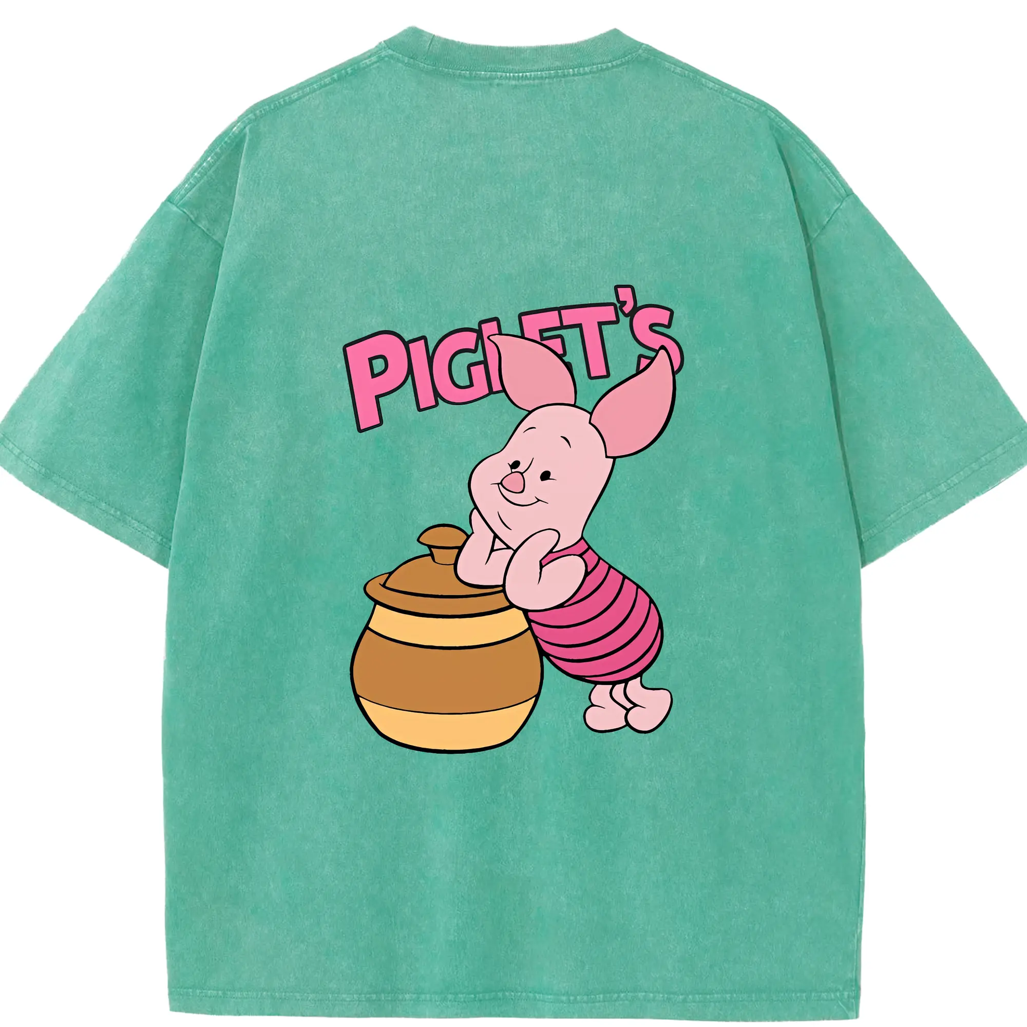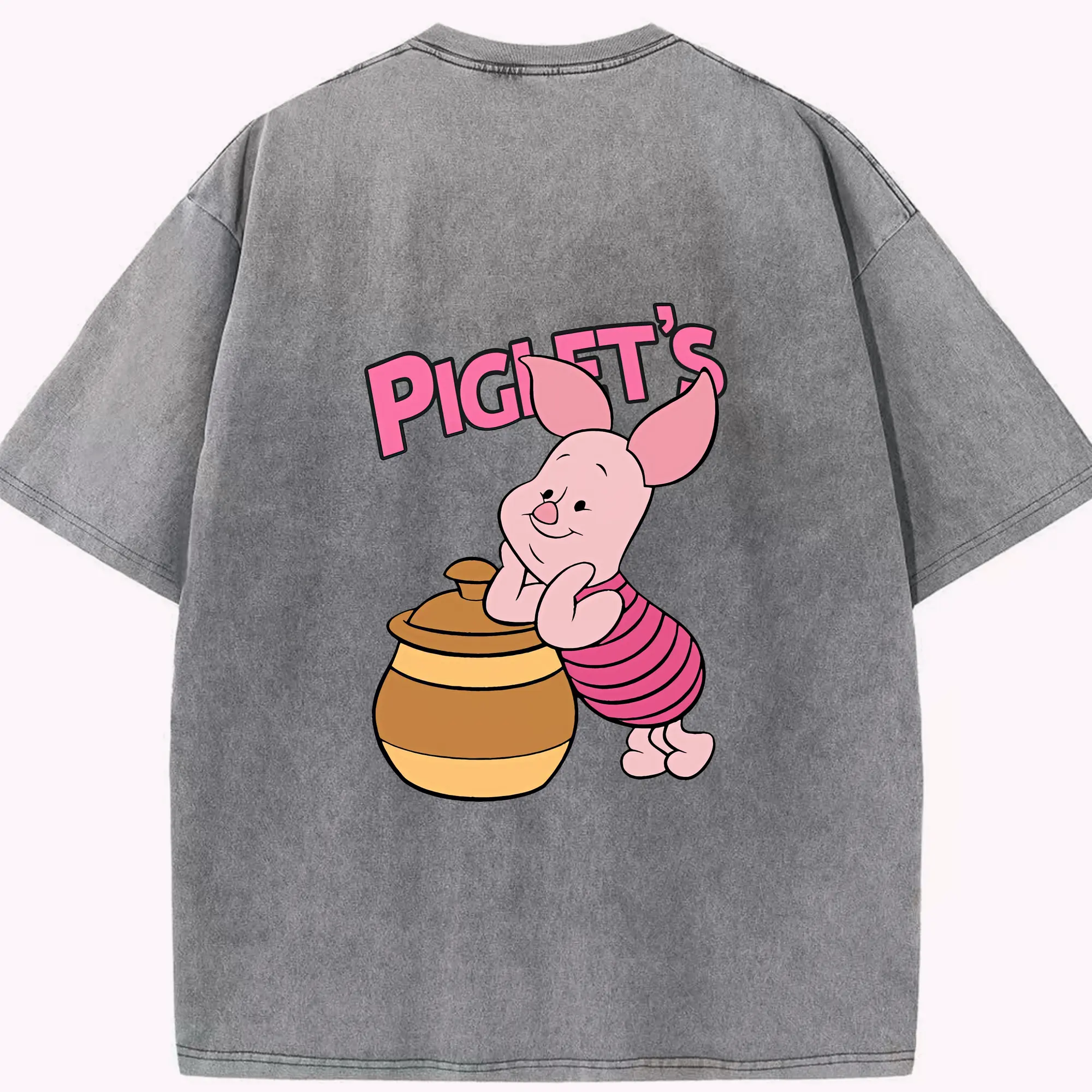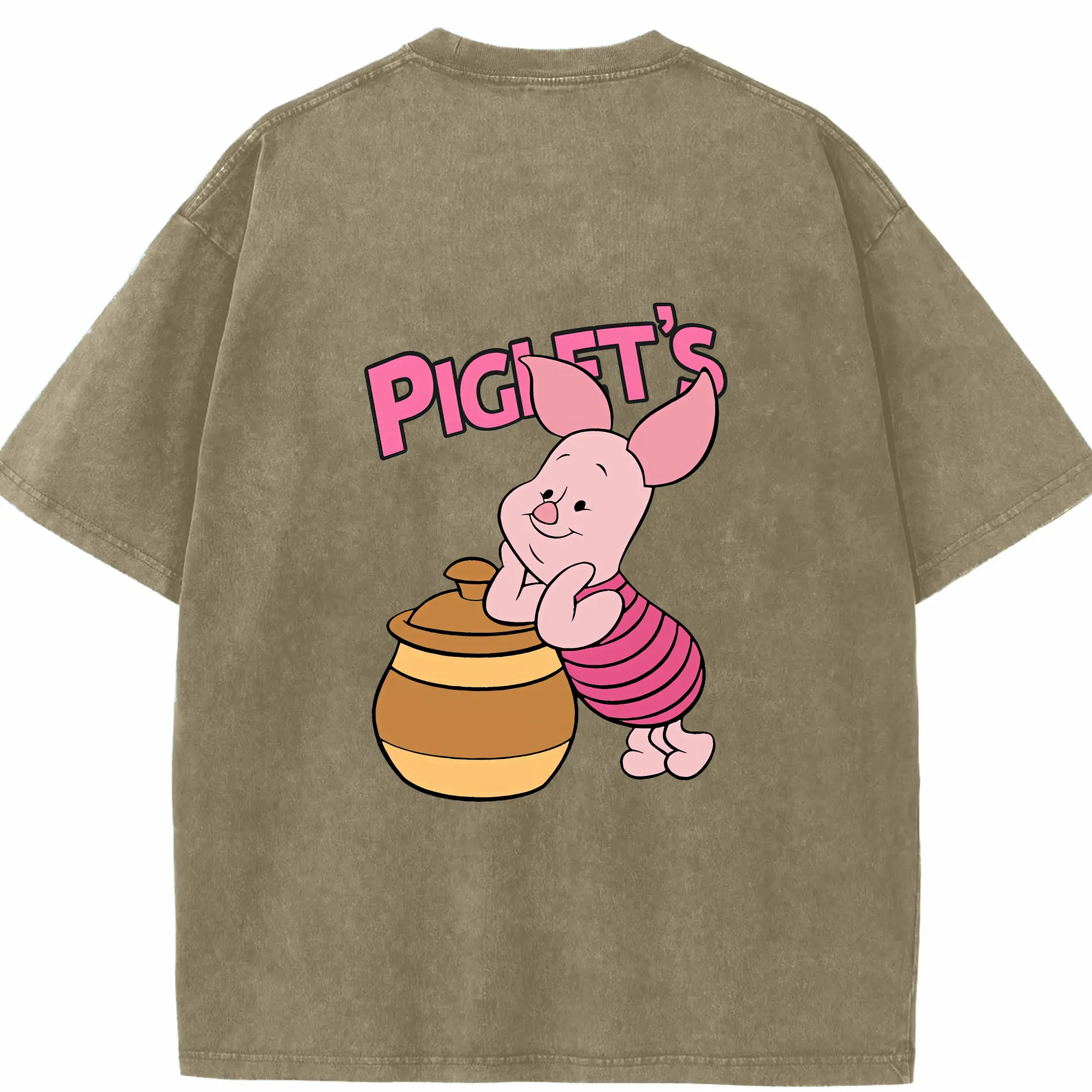 プーさん グッズ ピグレット - 綿100% ヴィンテージ風 半袖Tシャツ ・ フロントプリント ・ 柔らか肌触り ・ 通気性 快適 ・ スポーツ カジュアル 外出用