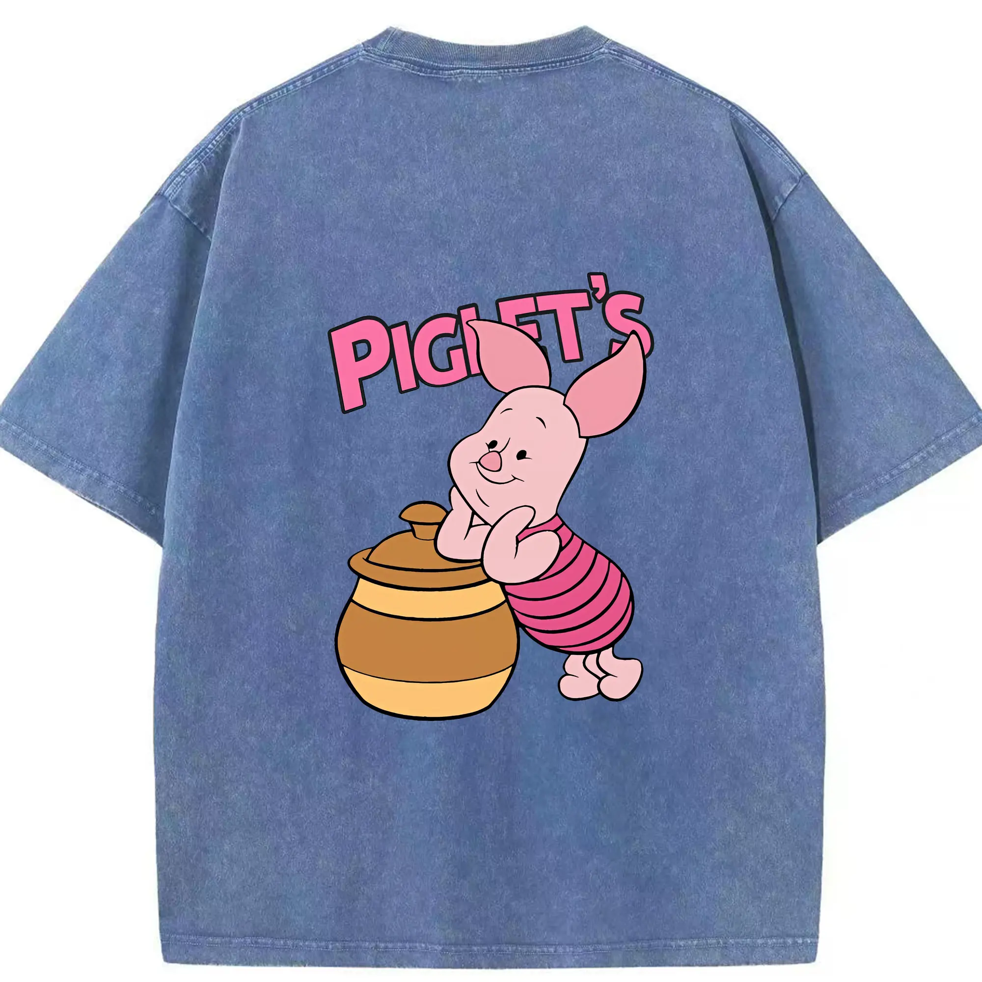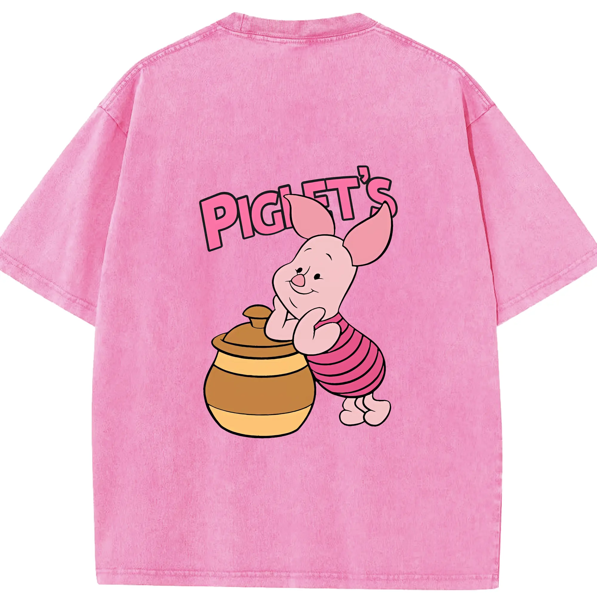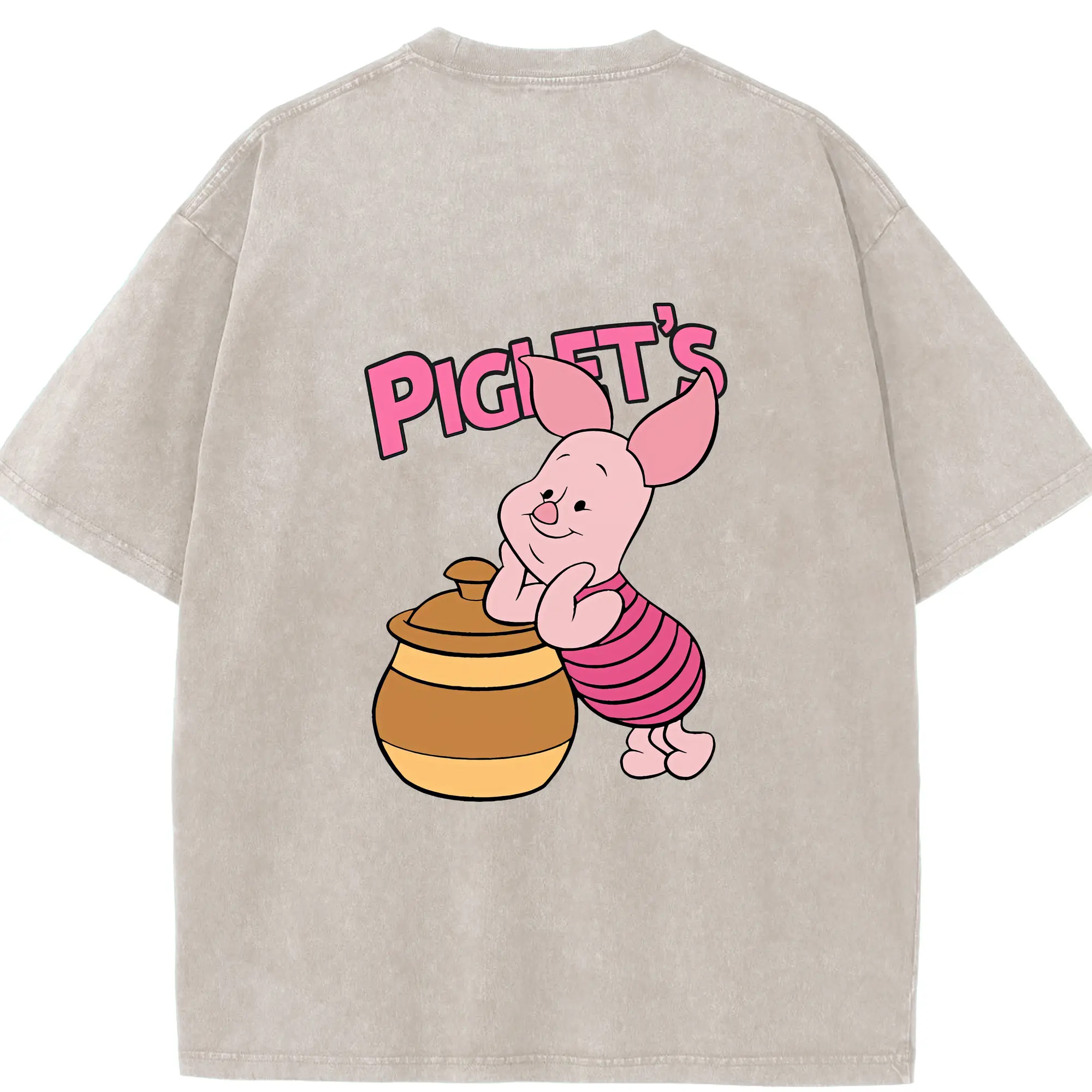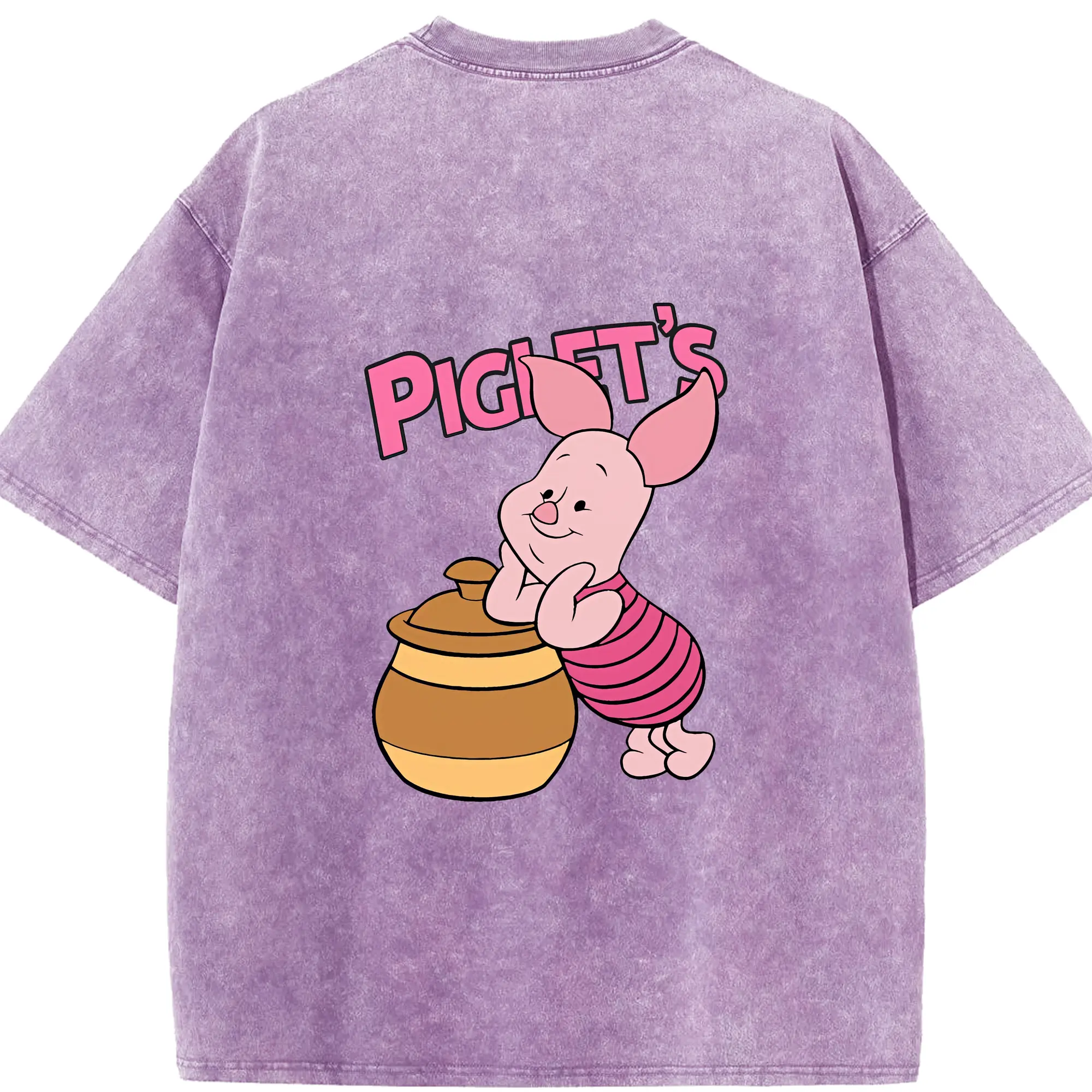 プーさん グッズ ピグレット - 綿100% ヴィンテージ風 半袖Tシャツ ・ フロントプリント ・ 柔らか肌触り ・ 通気性 快適 ・ スポーツ カジュアル 外出用
