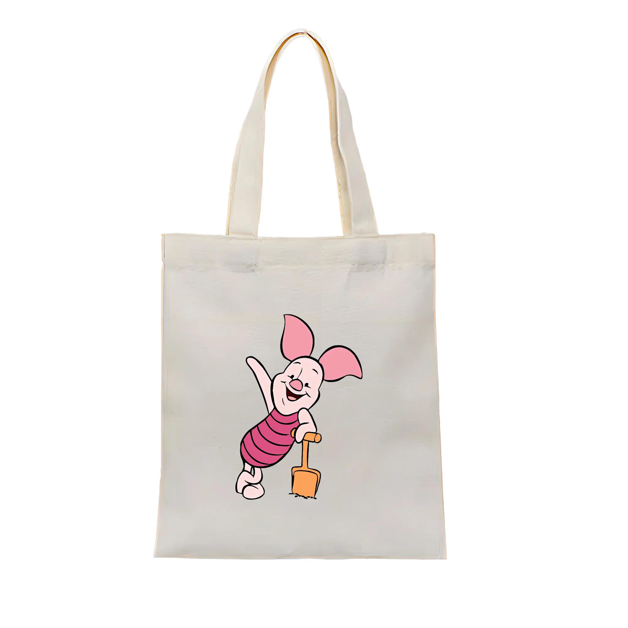 プーさん グッズ ピグレット - 縦型キャンバス手提げバッグ(トートバッグ) ・ キャンバス素材 ・ ショッピング用 ・ 軽量 丈夫 お手入れ簡単