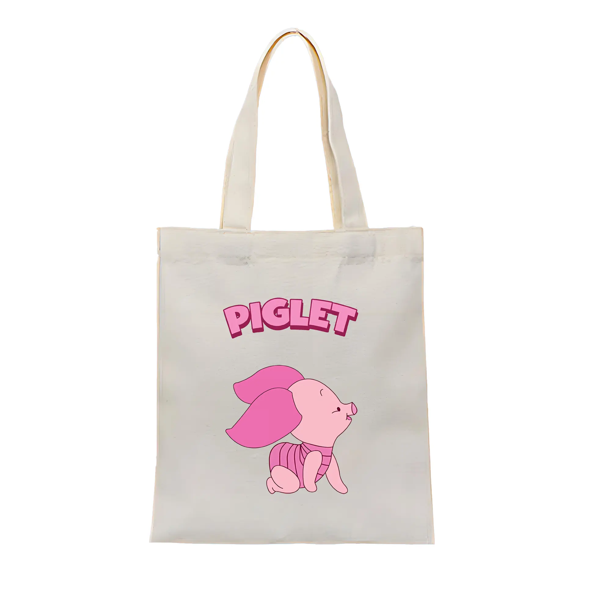 プーさん グッズ ピグレット - 縦型キャンバス手提げバッグ(トートバッグ) ・ キャンバス素材 ・ ショッピング用 ・ 軽量 丈夫 お手入れ簡単