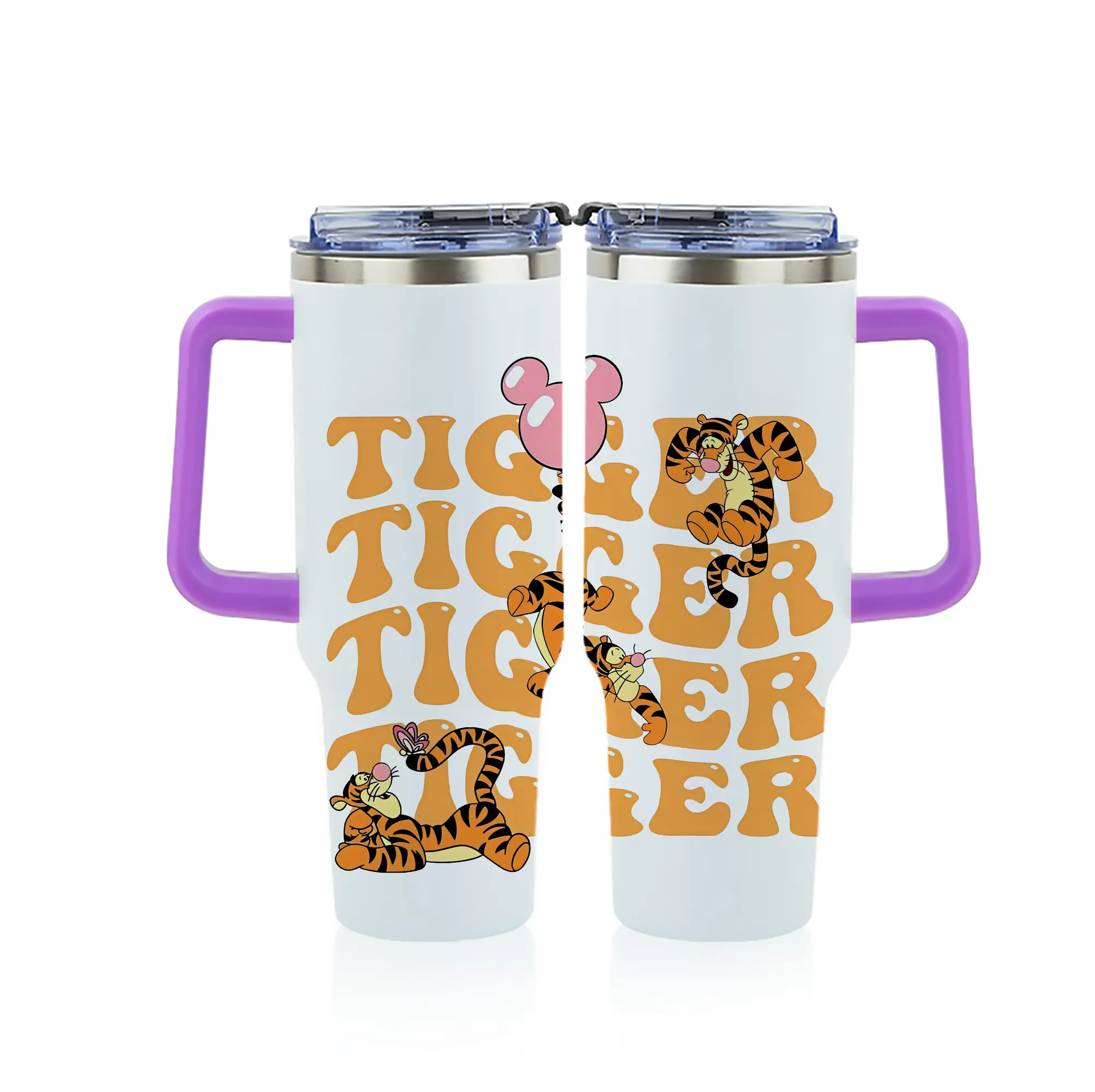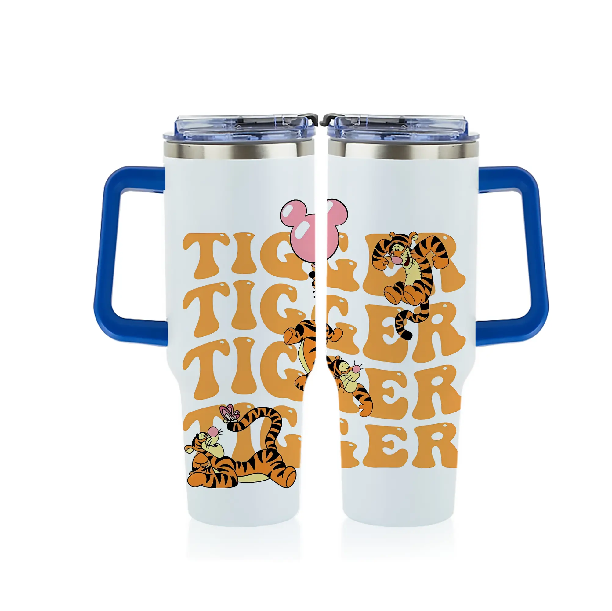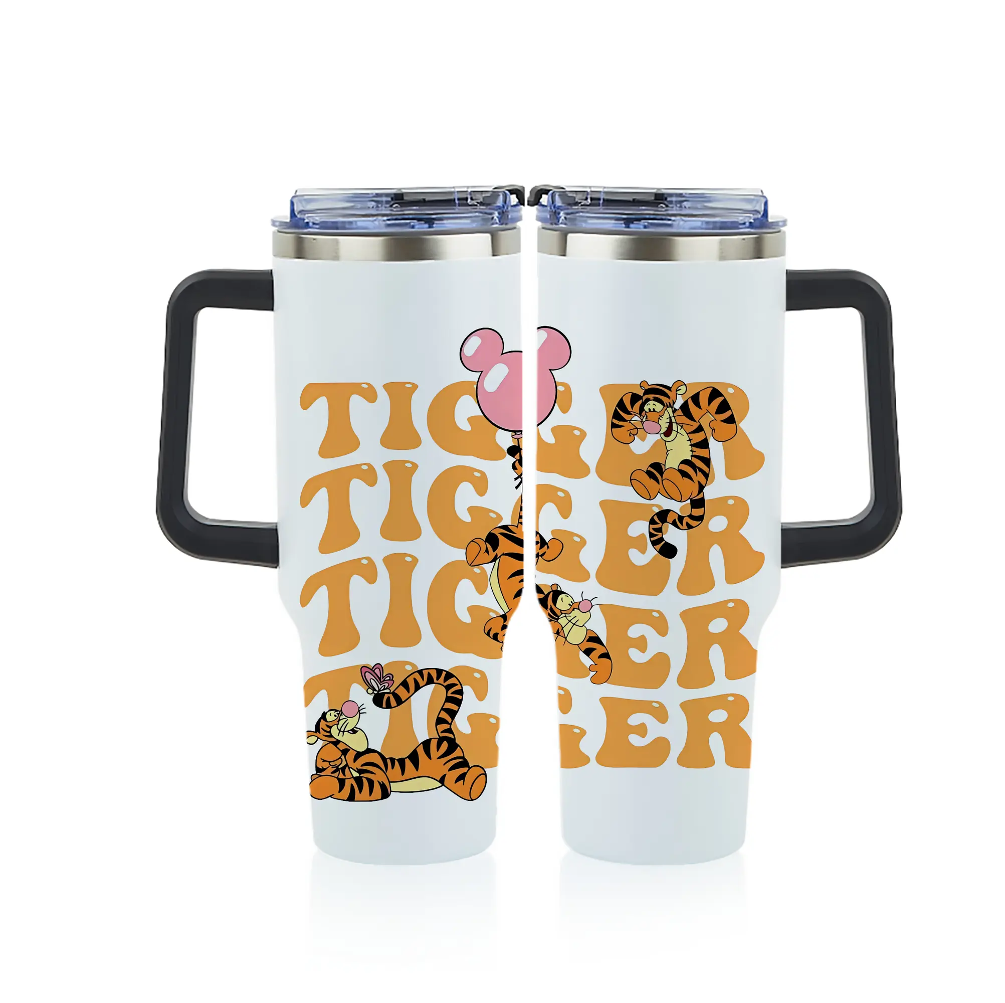 プーさん グッズ ティガー - 1200mL フルプリント車用タンブラー ・ 304ステンレス 内側 ・ 201ステンレス 外側 ・ 保温 保冷 ・ 通勤 ドライブ アウトドア用