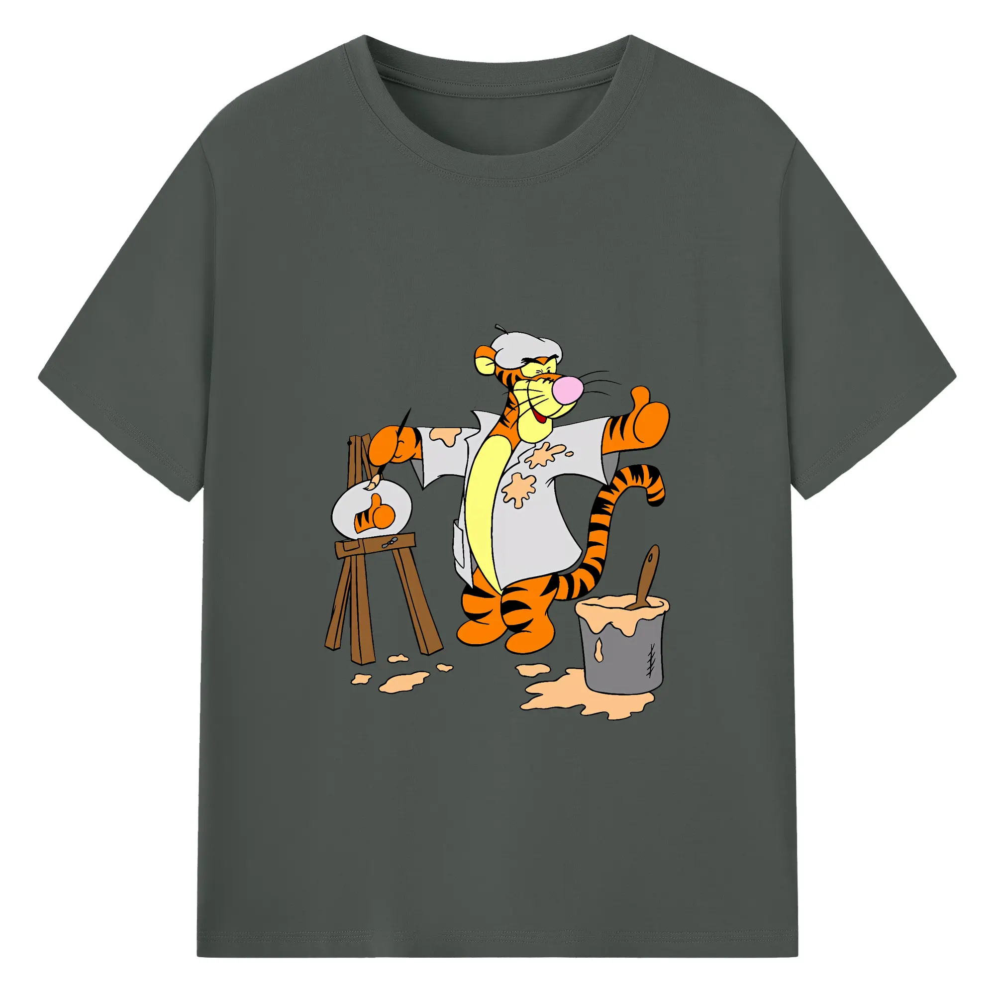 プーさん グッズ ティガー - 綿100% 半袖Tシャツ ・ バックプリント ・ 快適 通気性 ・ 日常使い 散歩 スポーツ用