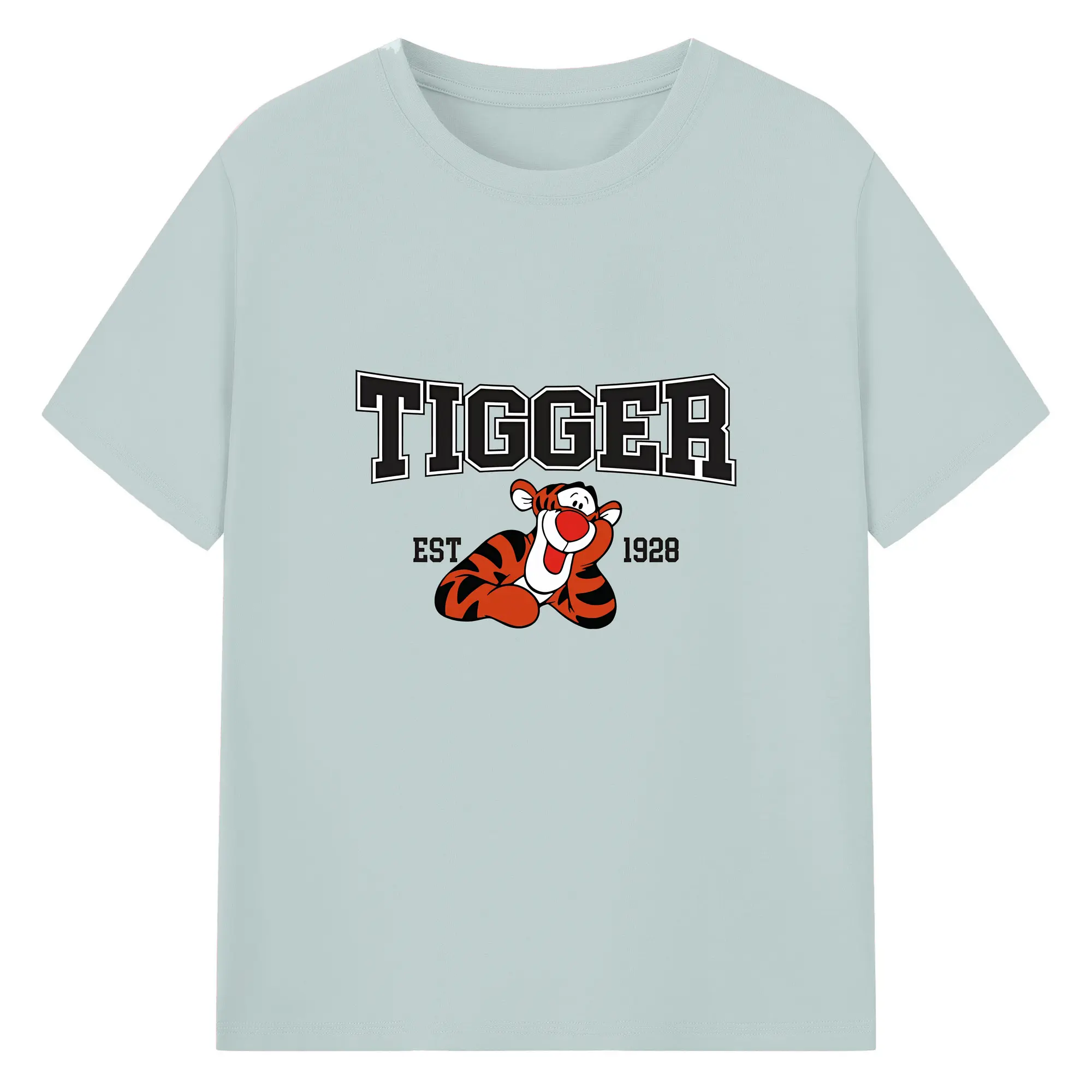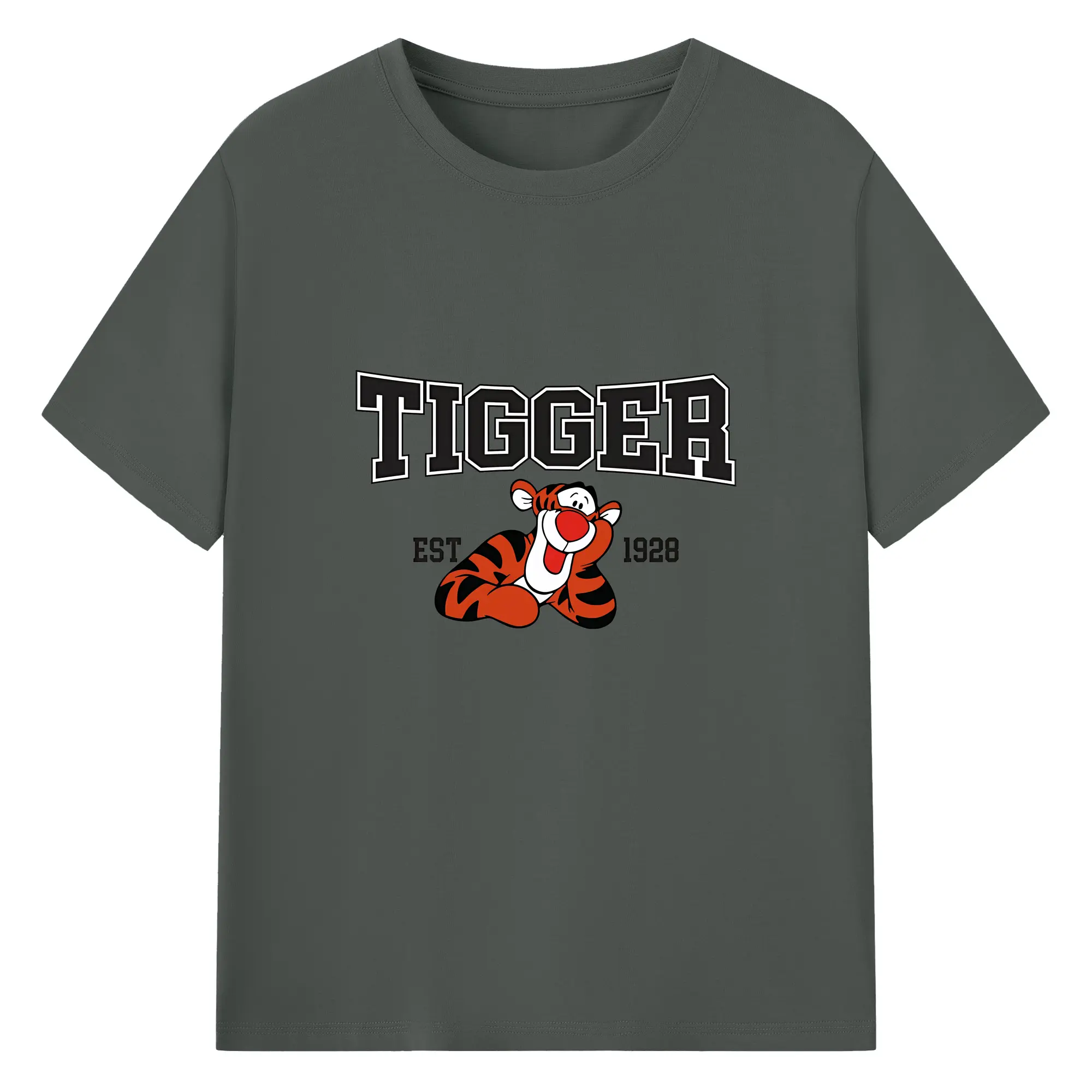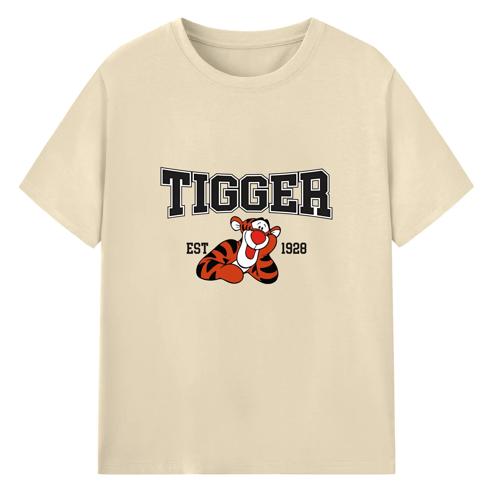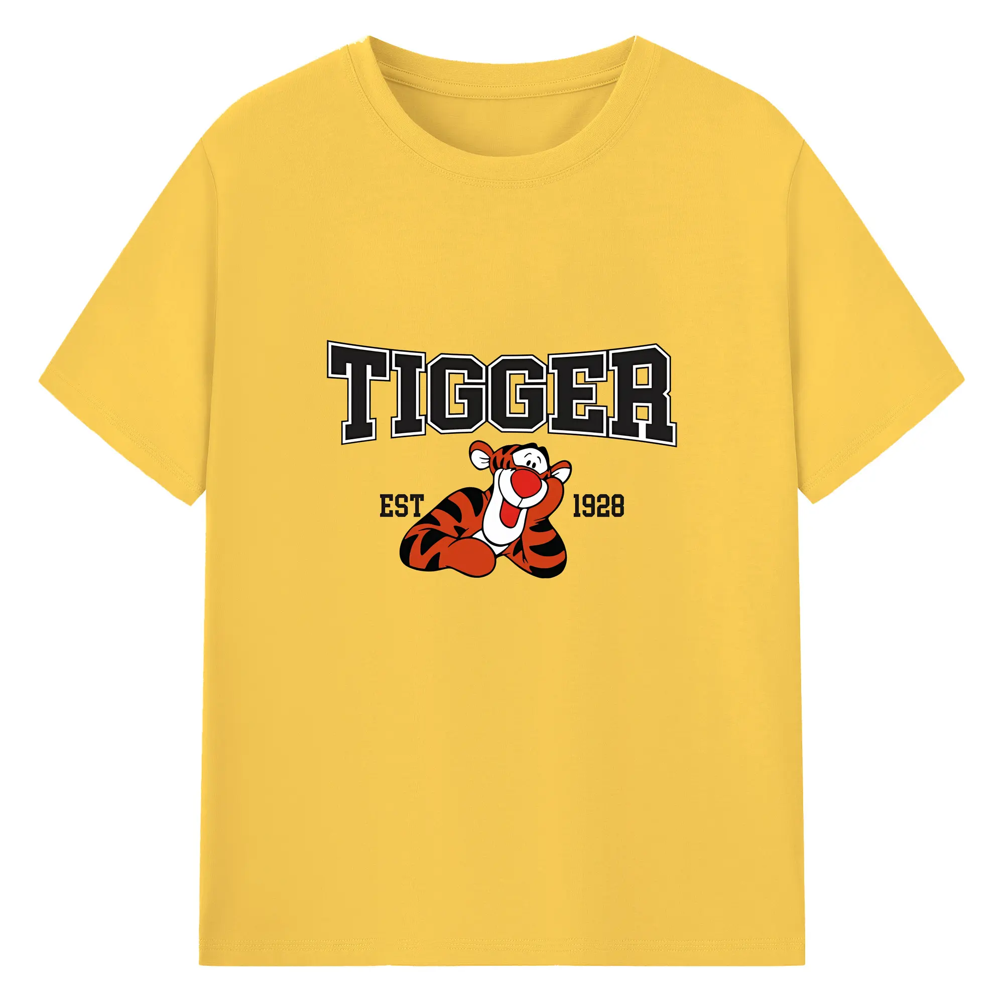 プーさん グッズ ティガー - 綿100% ヴィンテージ風 半袖Tシャツ ・ フロントプリント ・ 柔らか肌触り ・ 通気性 快適 ・ スポーツ カジュアル 外出用