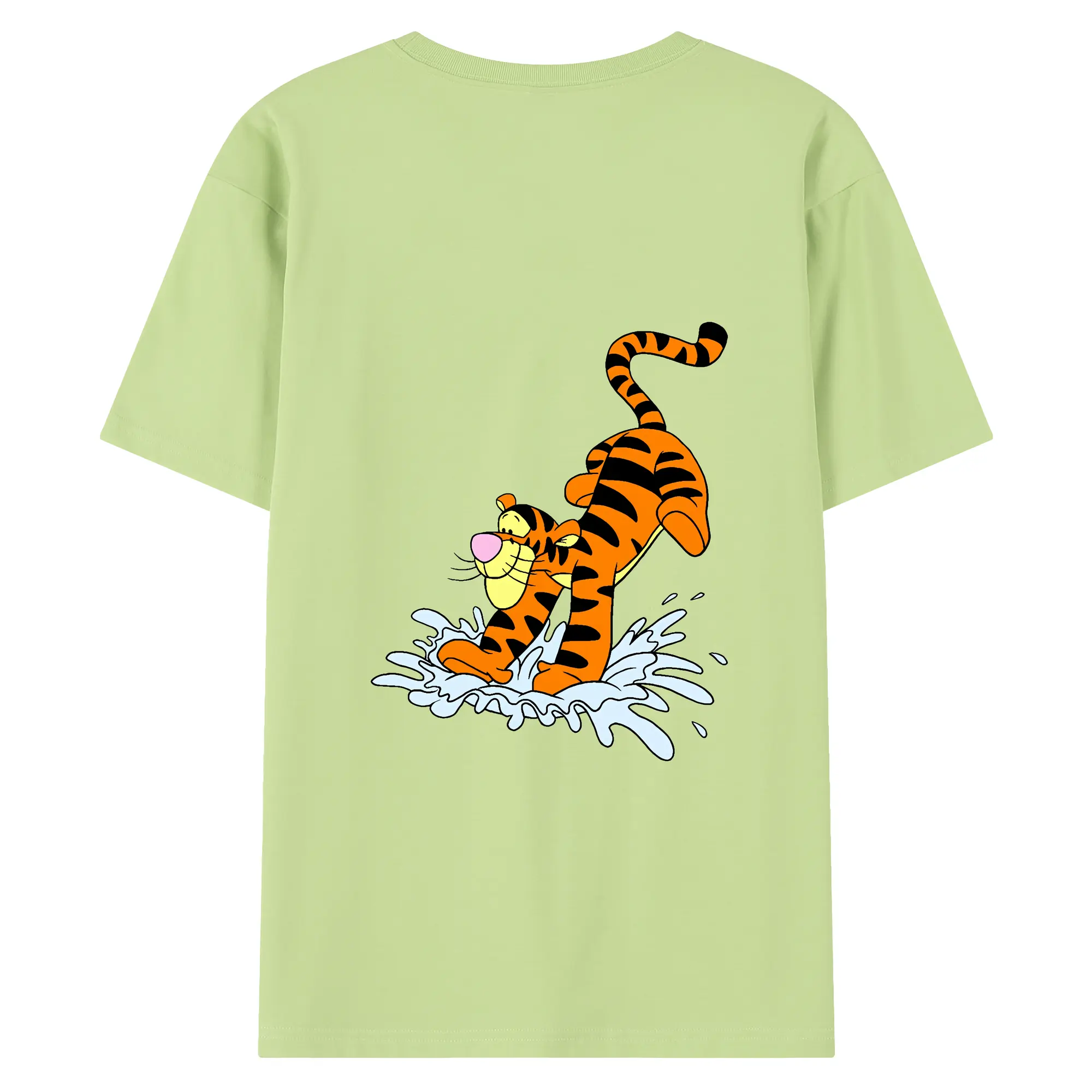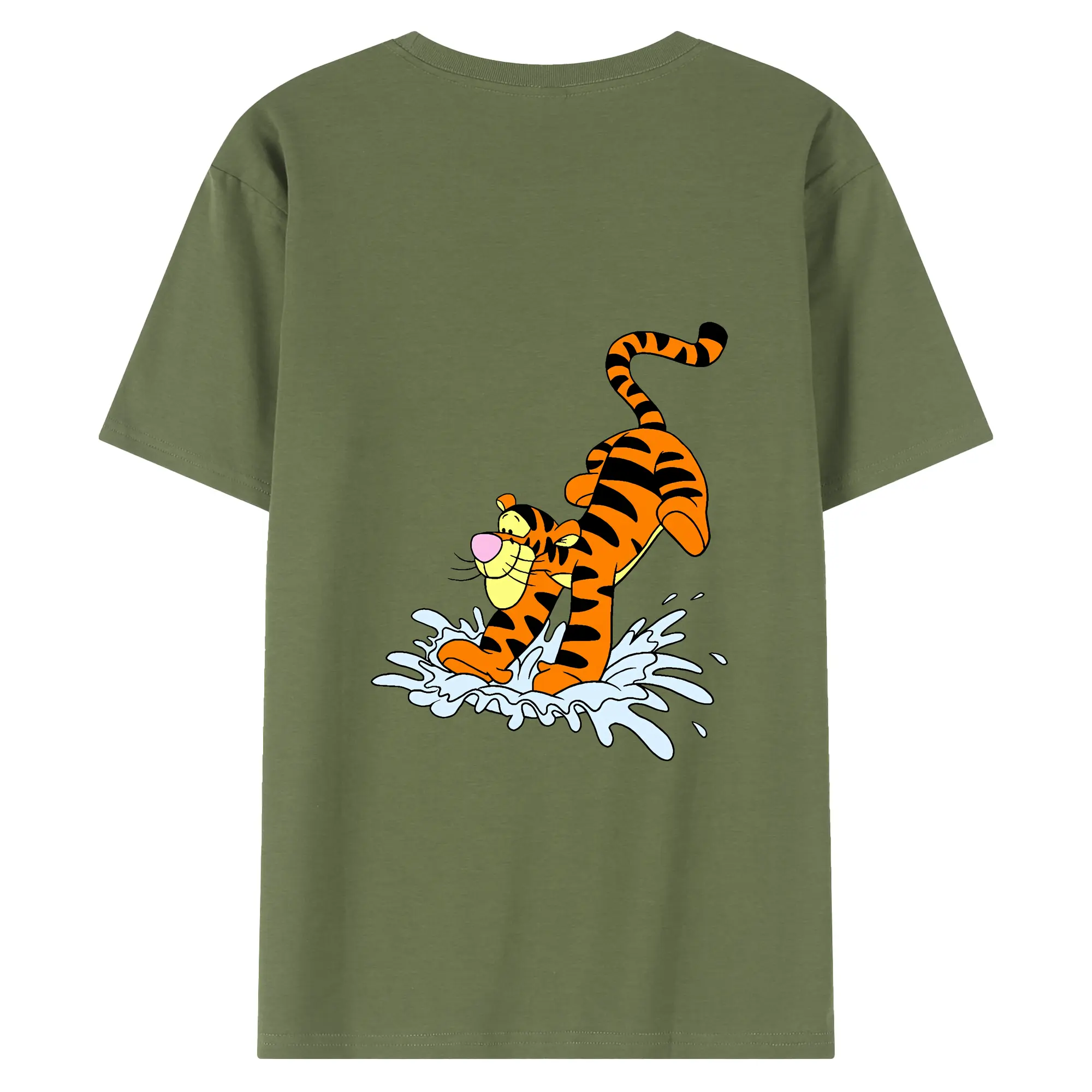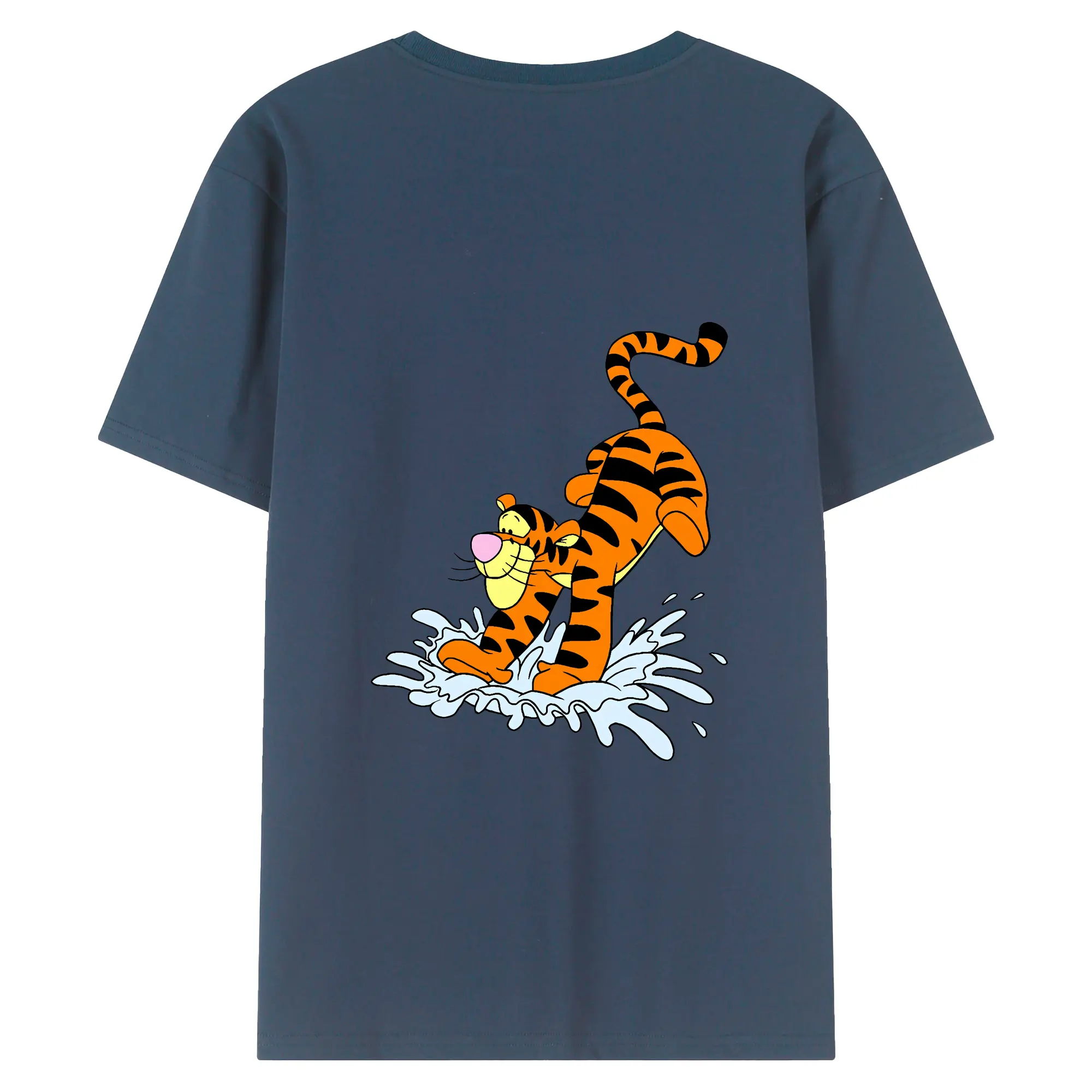 プーさん グッズ ティガー - 綿100% ヴィンテージ風 半袖Tシャツ ・ 背面プリント ・ 柔らか肌触り ・ 通気性 快適 ・ スポーツ カジュアル 外出用