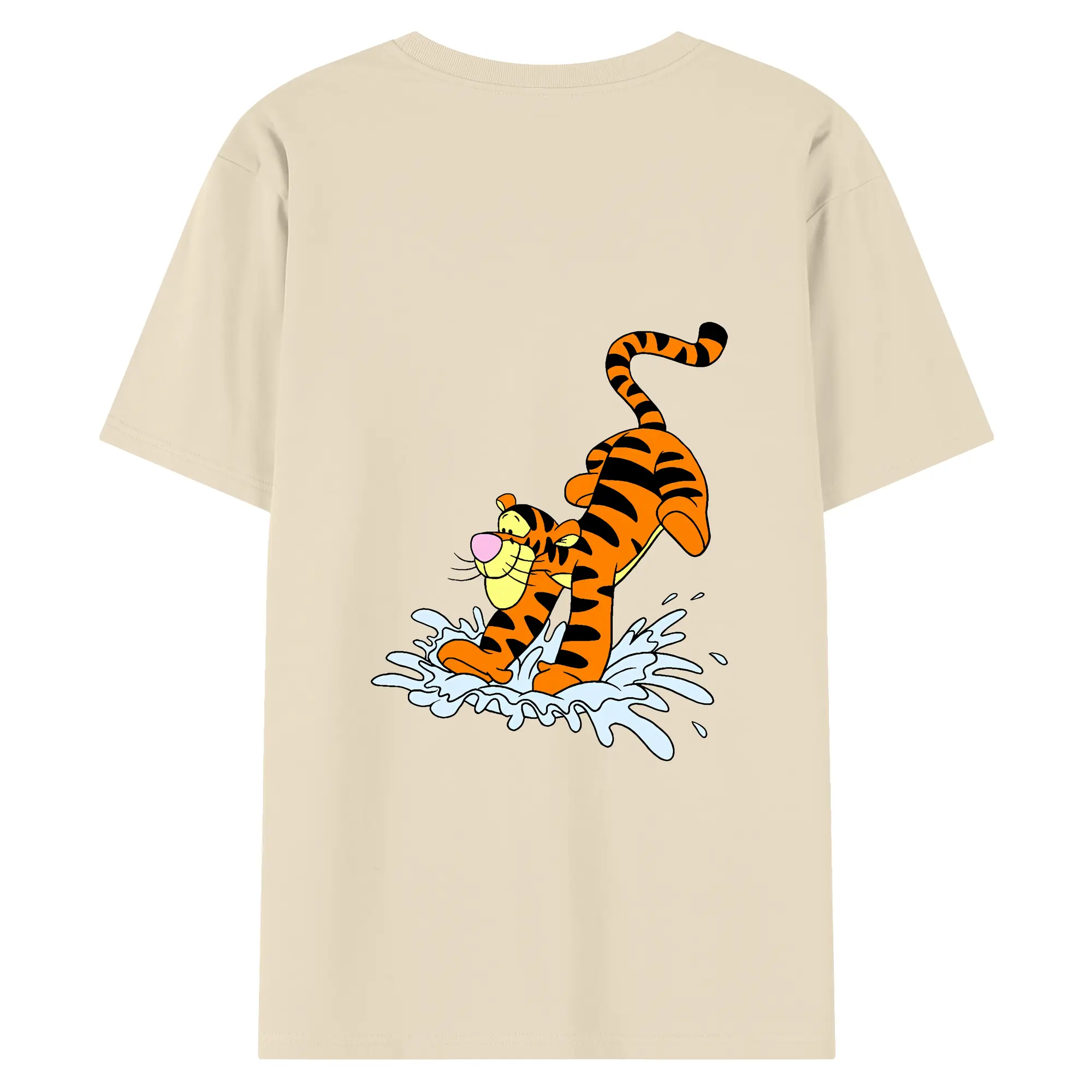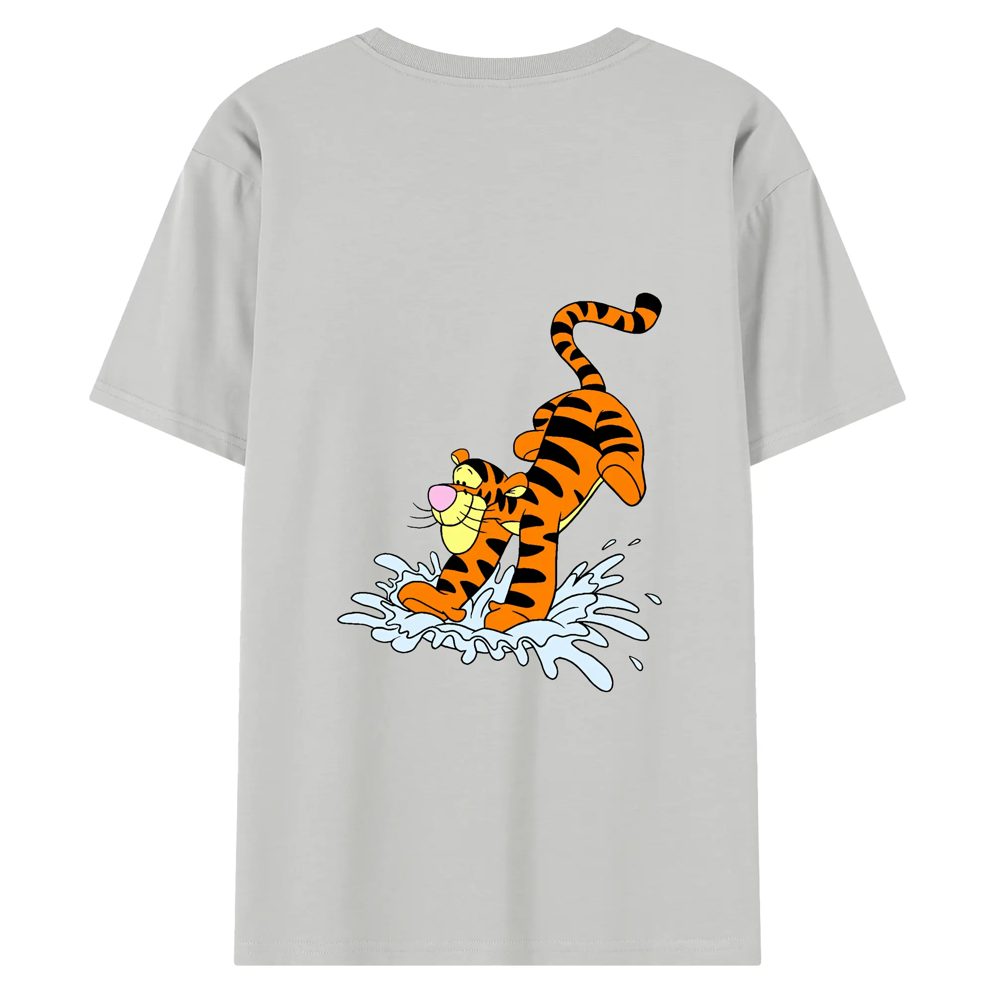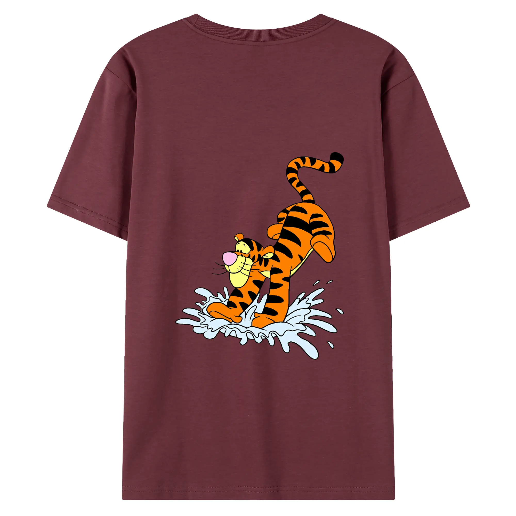 プーさん グッズ ティガー - 綿100% ヴィンテージ風 半袖Tシャツ ・ 背面プリント ・ 柔らか肌触り ・ 通気性 快適 ・ スポーツ カジュアル 外出用