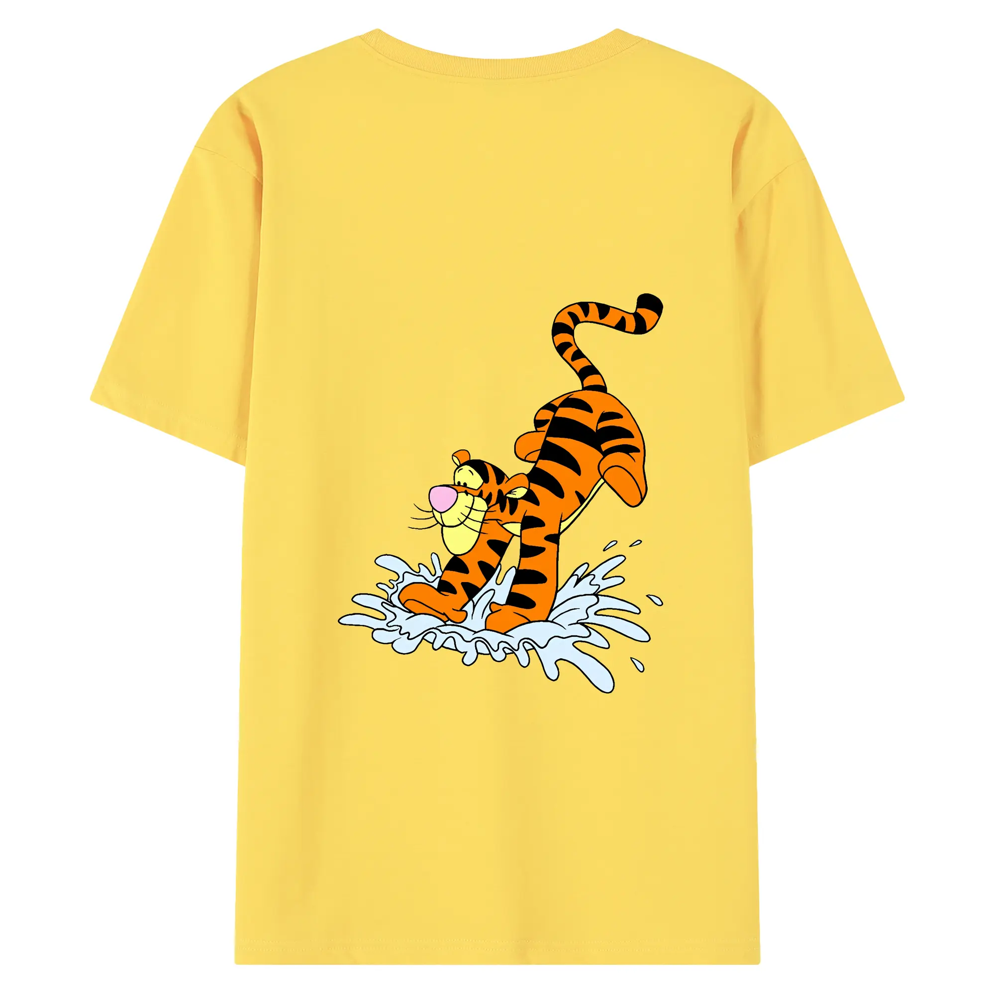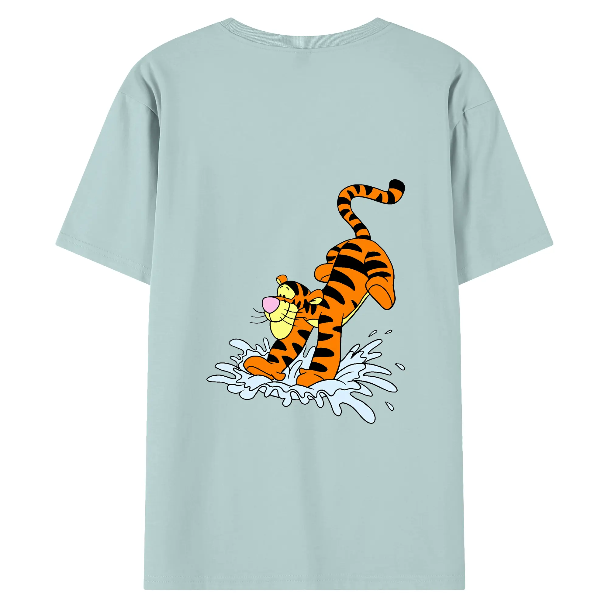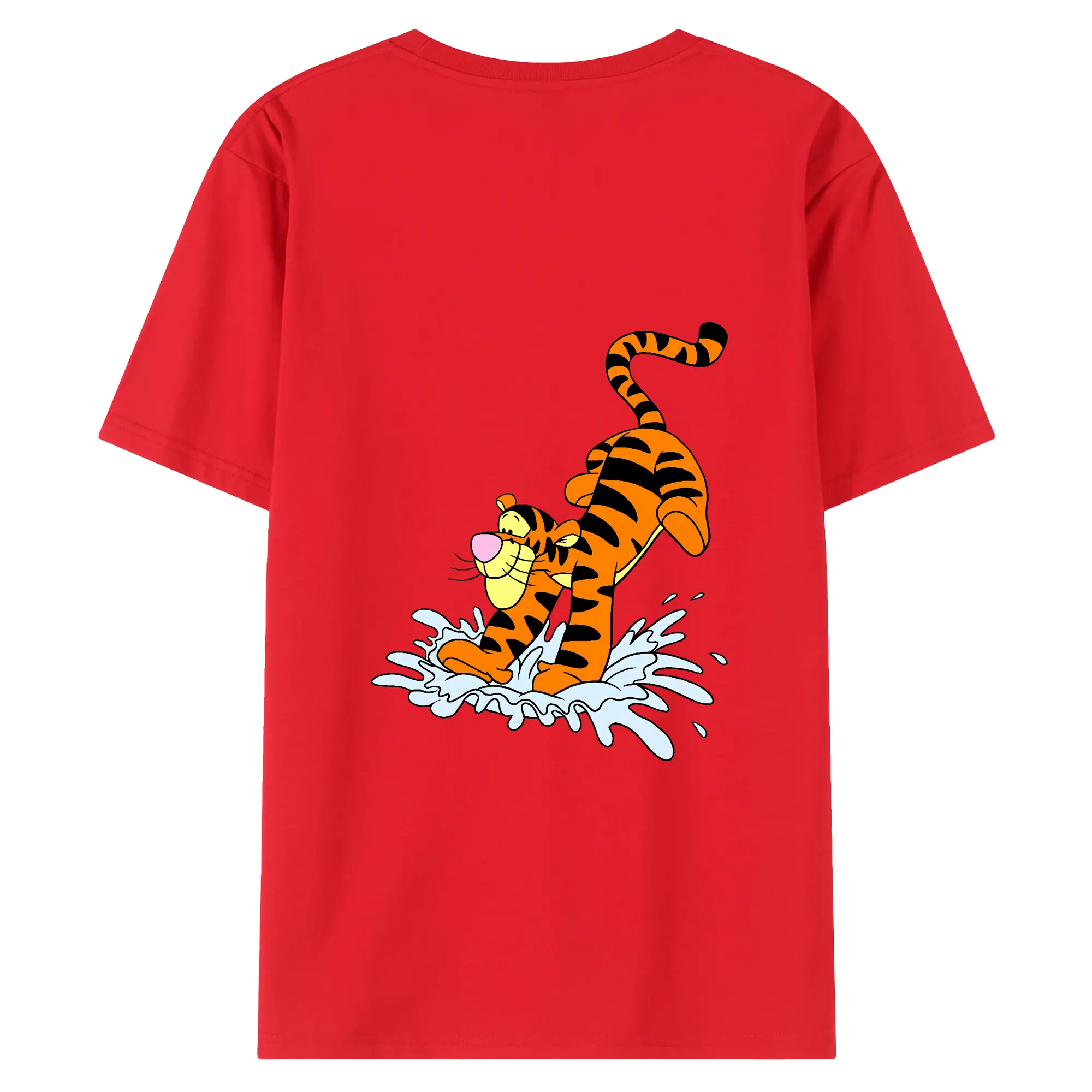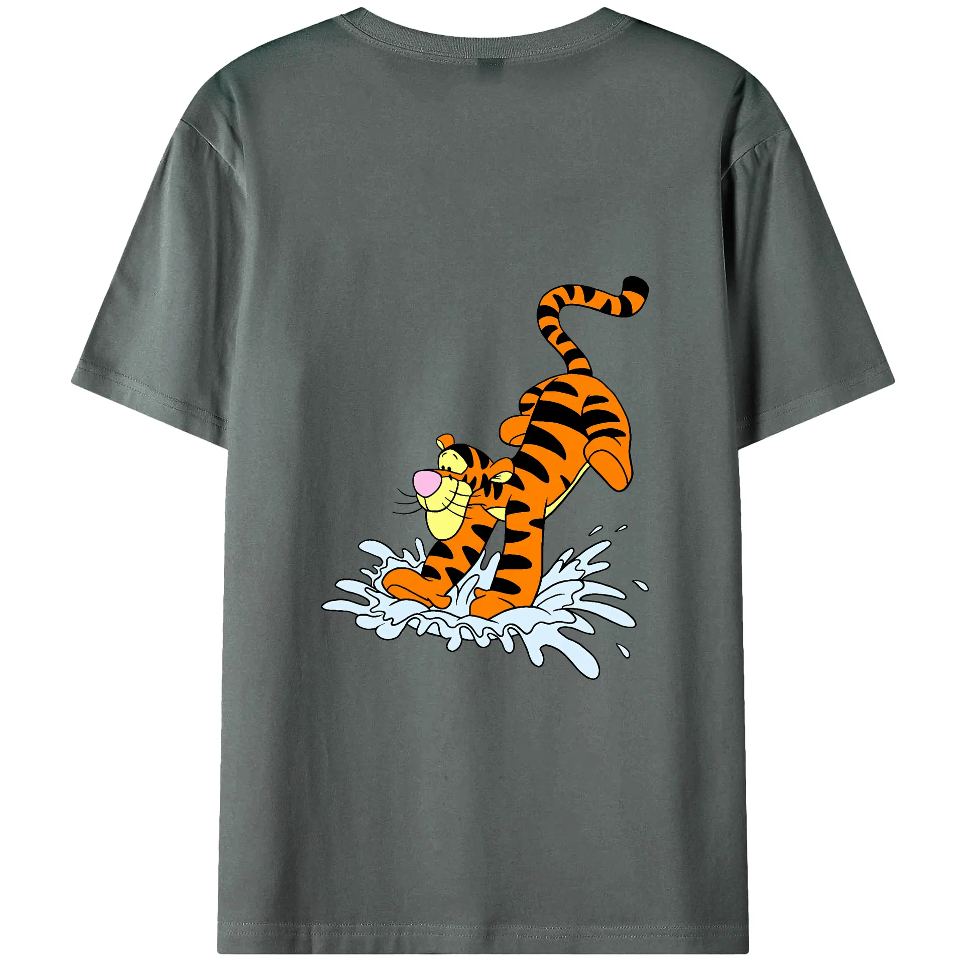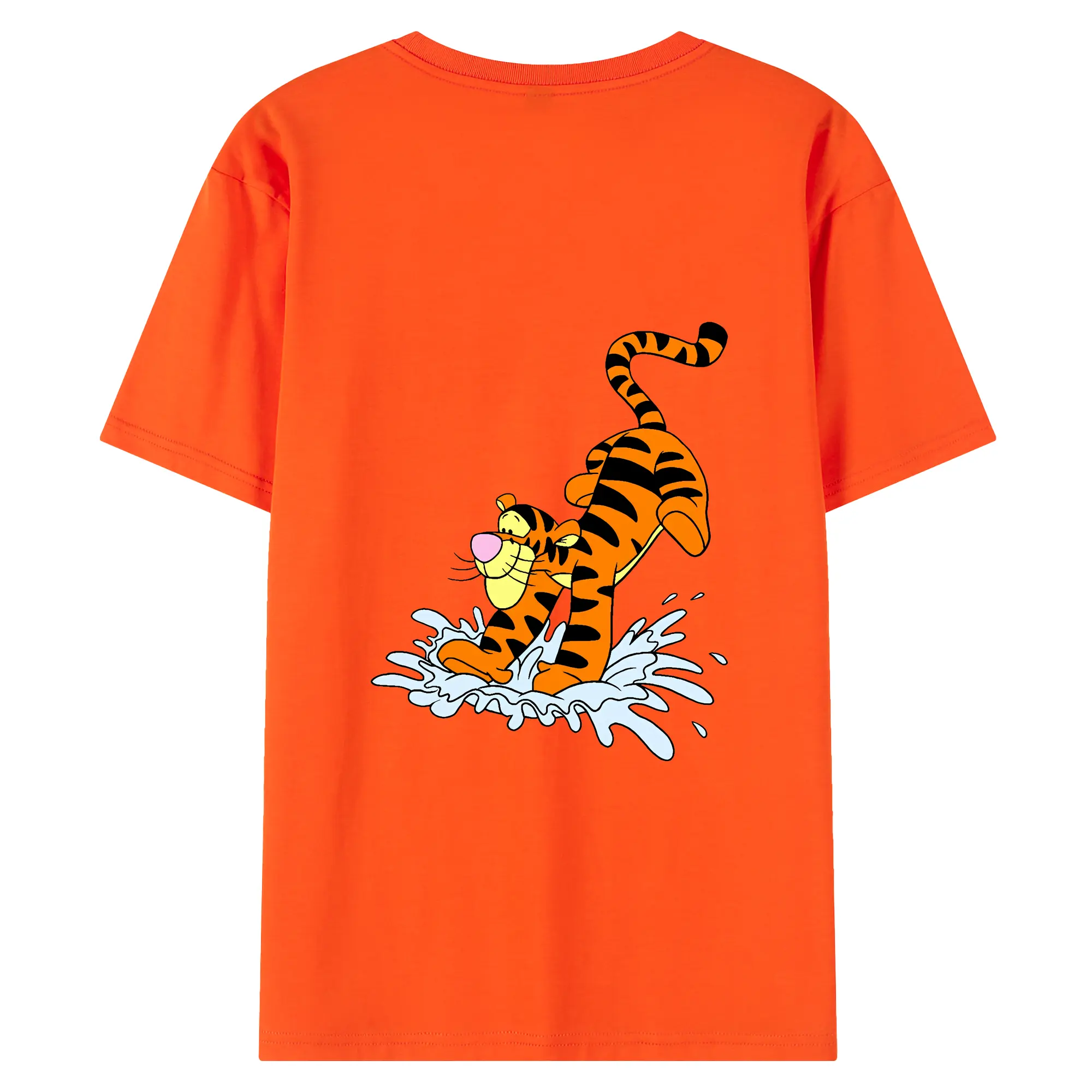 プーさん グッズ ティガー - 綿100% 半袖Tシャツ ・ フロントプリント ・ 快適 通気性 ・ 日常使い 散歩 スポーツ用
