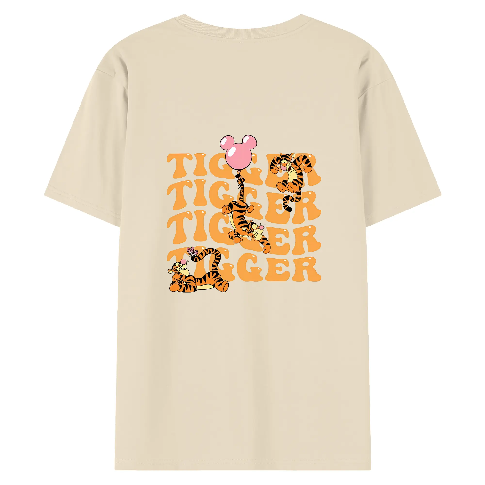 プーさん グッズ ティガー - 綿100% ヴィンテージ風 半袖Tシャツ ・ 背面プリント ・ 柔らか肌触り ・ 通気性 快適 ・ スポーツ カジュアル 外出用