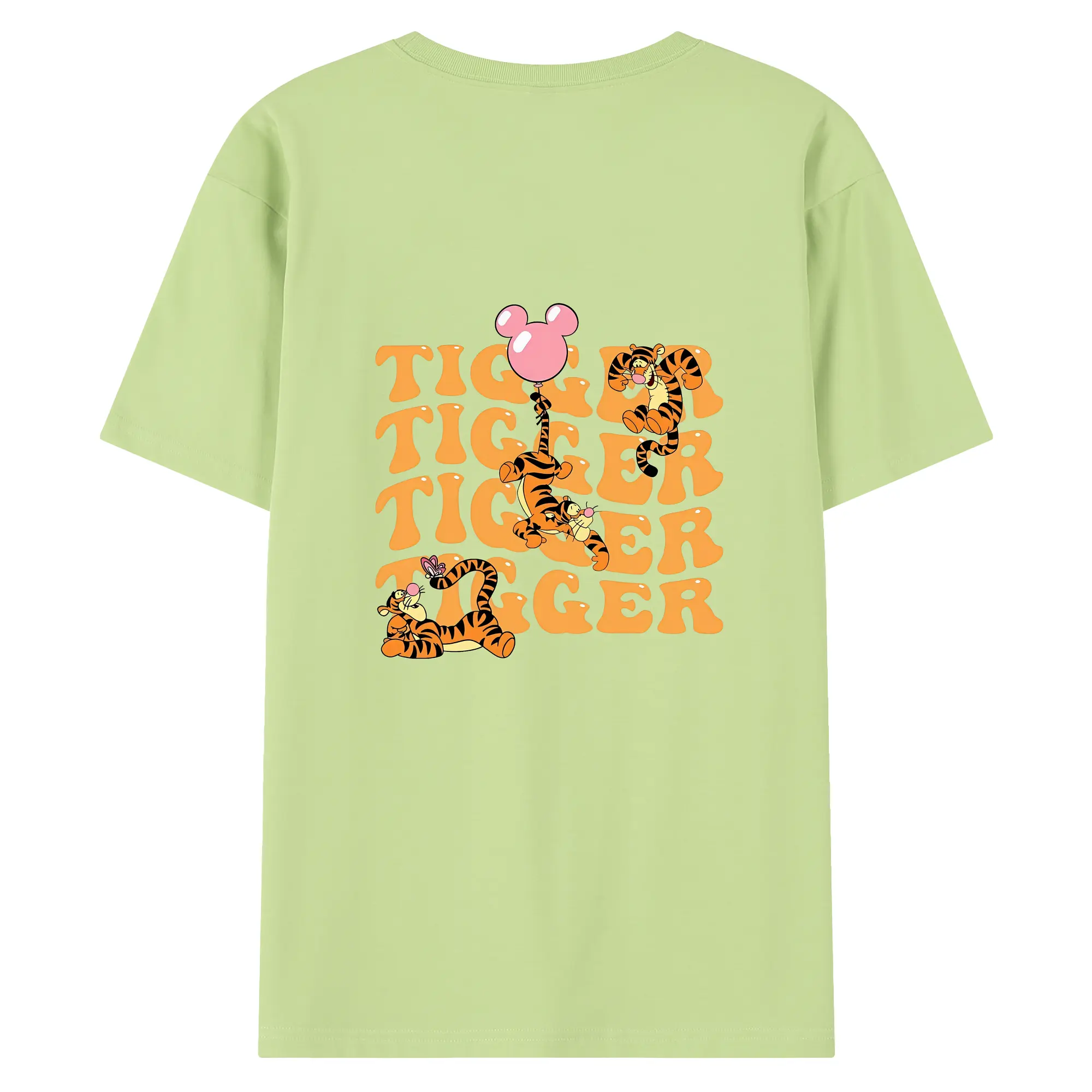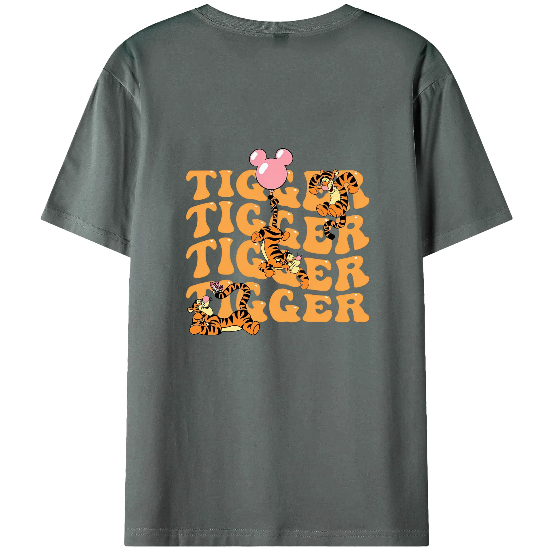 プーさん グッズ ティガー - 綿100% 半袖Tシャツ ・ フロントプリント ・ 快適 通気性 ・ 日常使い 散歩 スポーツ用