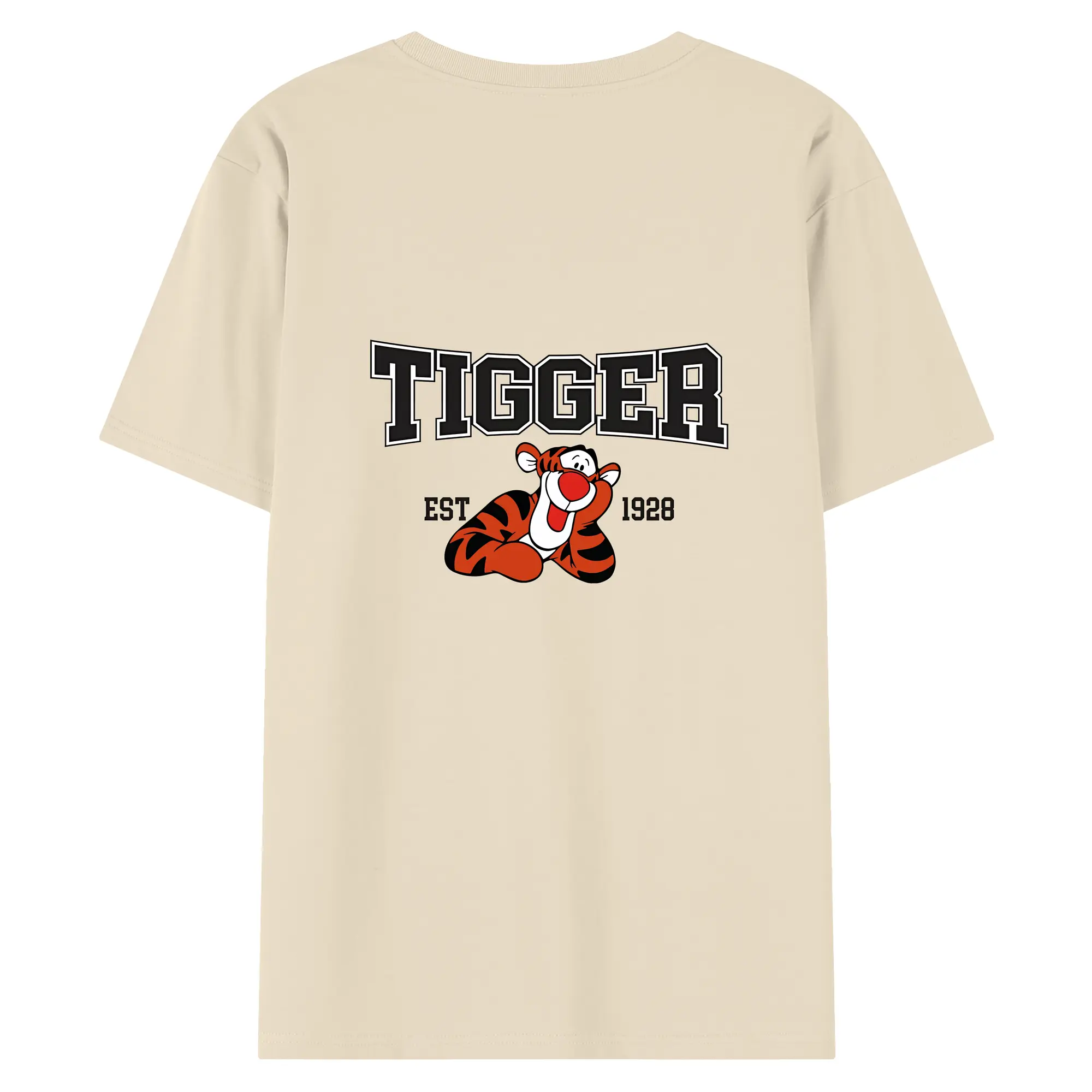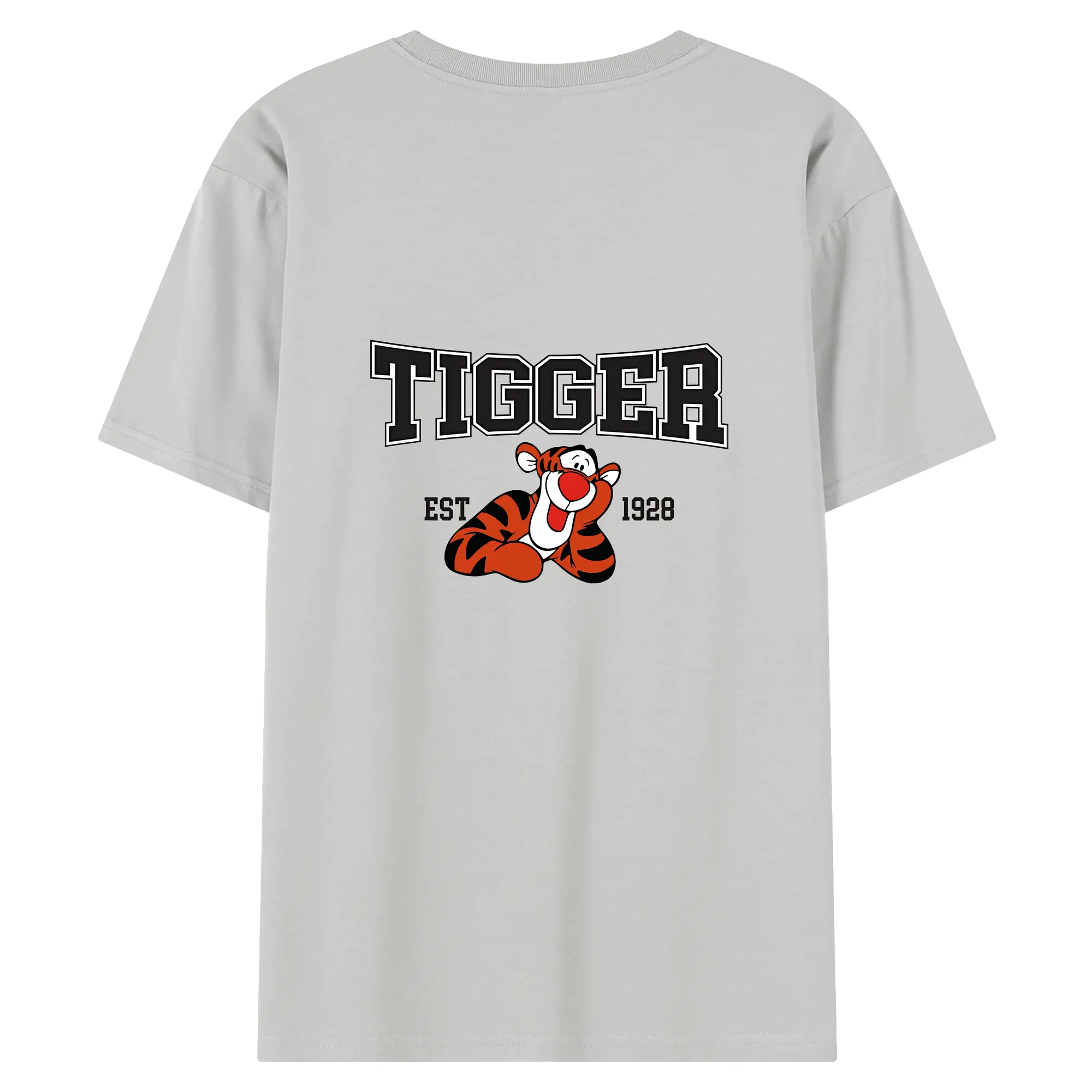 プーさん グッズ ティガー - 綿100% ヴィンテージ風 半袖Tシャツ ・ 背面プリント ・ 柔らか肌触り ・ 通気性 快適 ・ スポーツ カジュアル 外出用