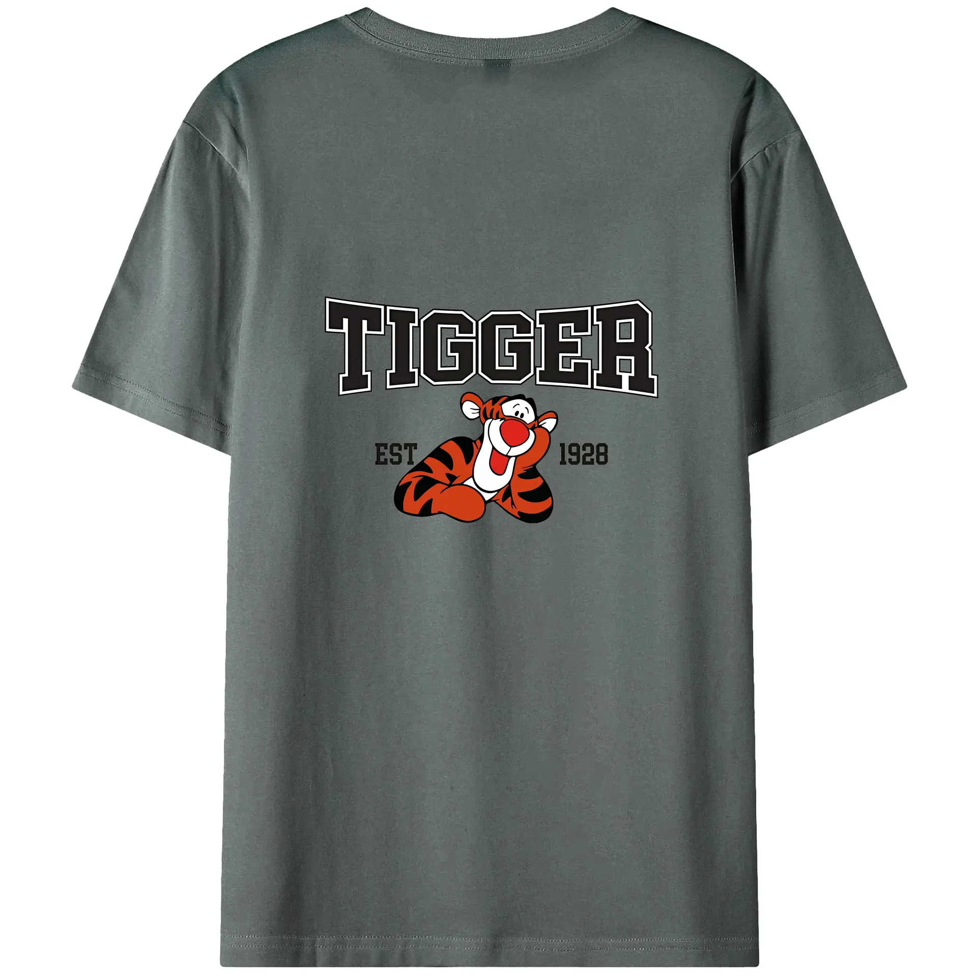 プーさん グッズ ティガー - 綿100% 半袖Tシャツ ・ フロントプリント ・ 快適 通気性 ・ 日常使い 散歩 スポーツ用