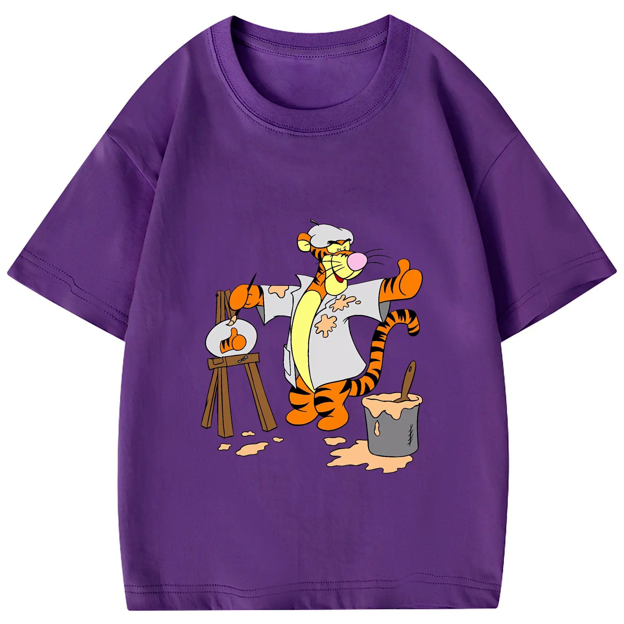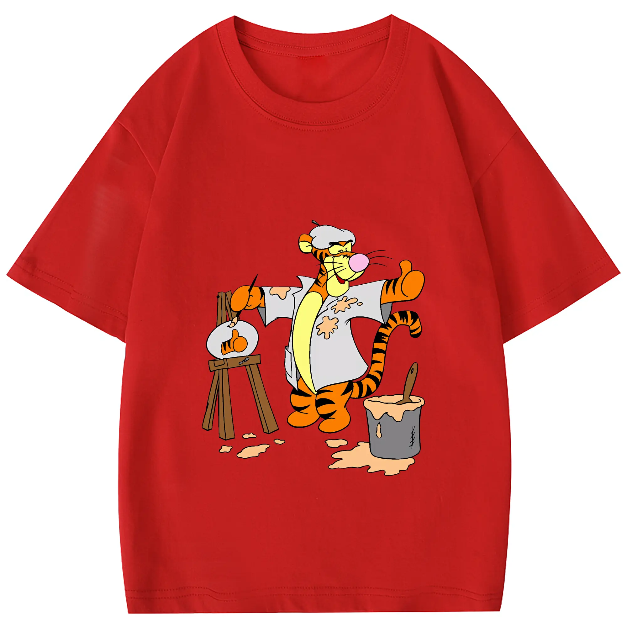 プーさん グッズ ティガー - 綿100% 半袖Tシャツ ・ フロントプリント ・ 快適 通気性 ・ 日常使い 散歩 スポーツ用
