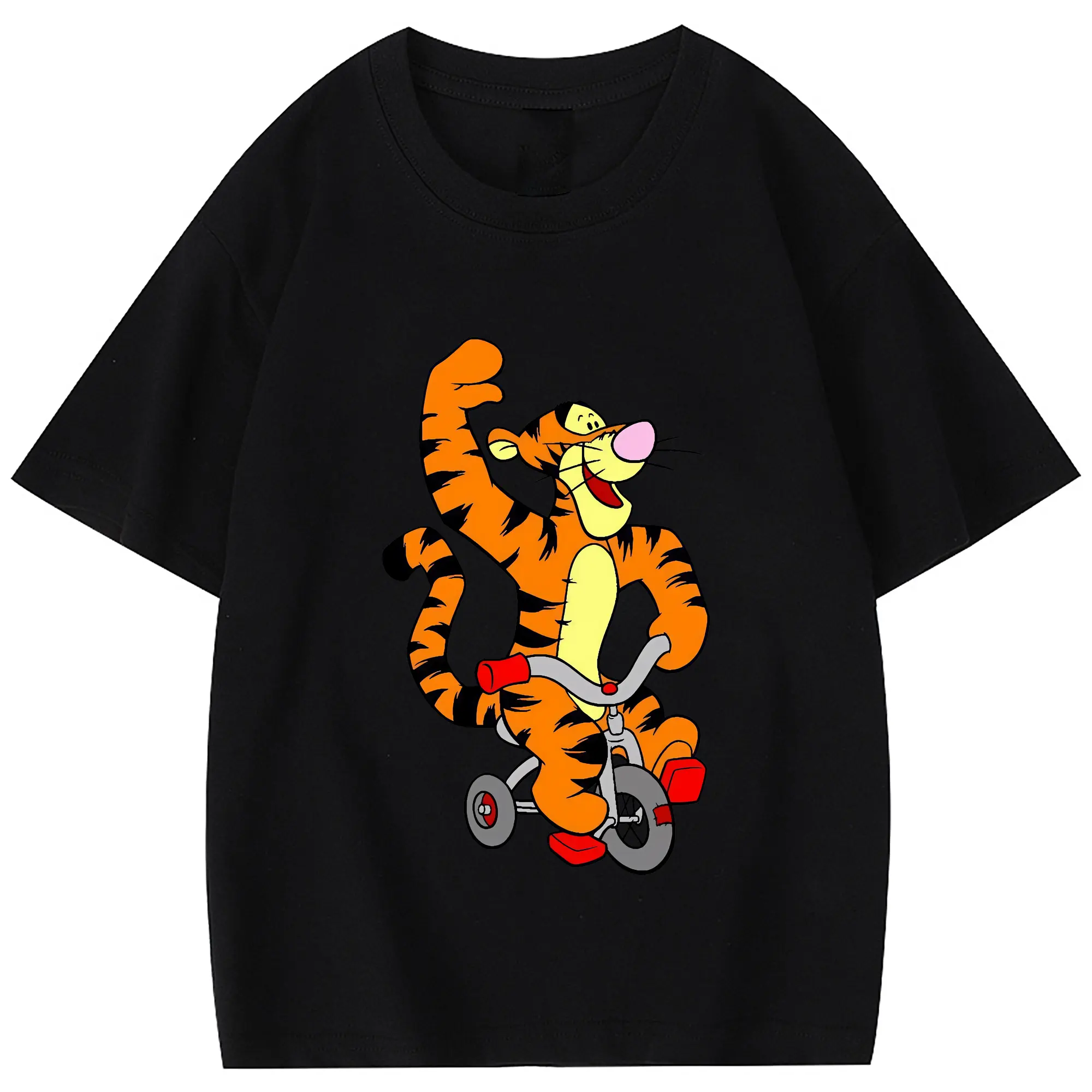 プーさん グッズ ティガー - 綿100% 半袖Tシャツ ・ フロントプリント ・ 快適 通気性 ・ 日常使い 散歩 スポーツ用