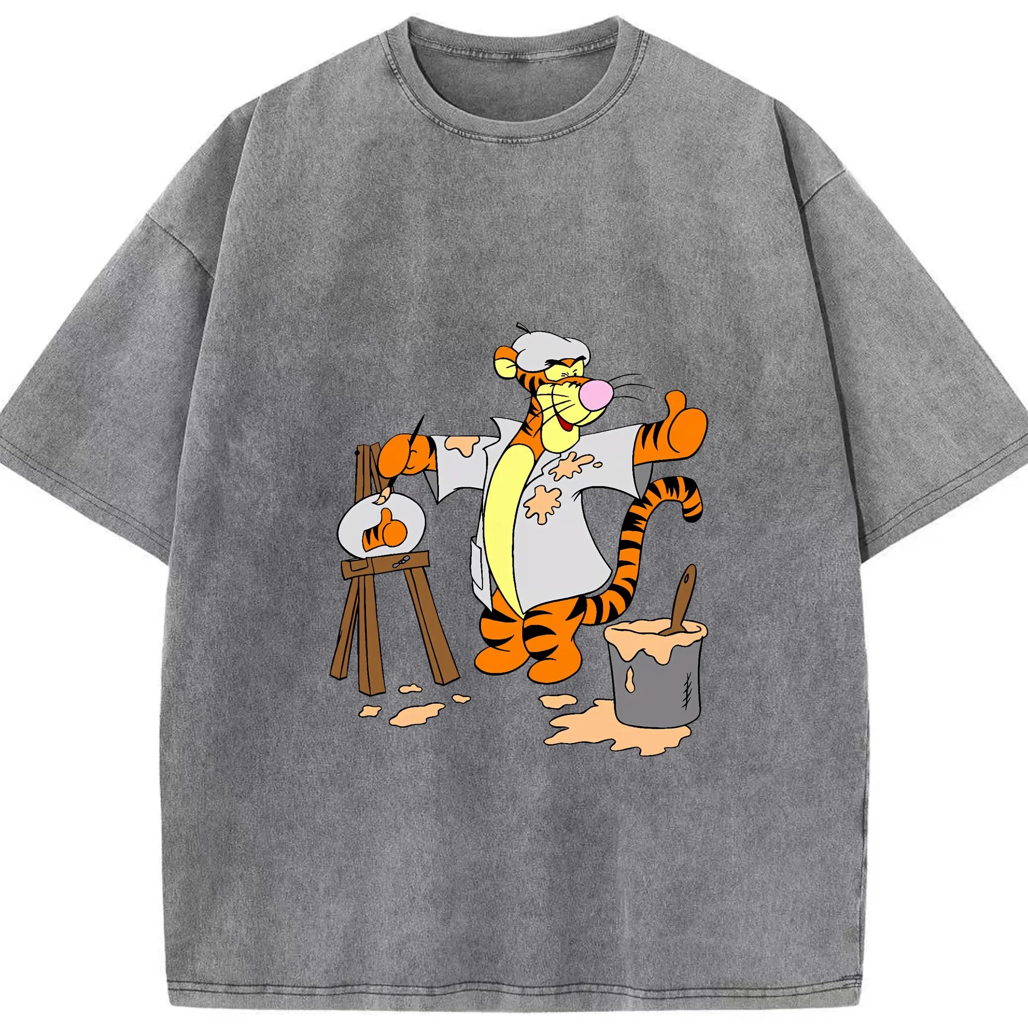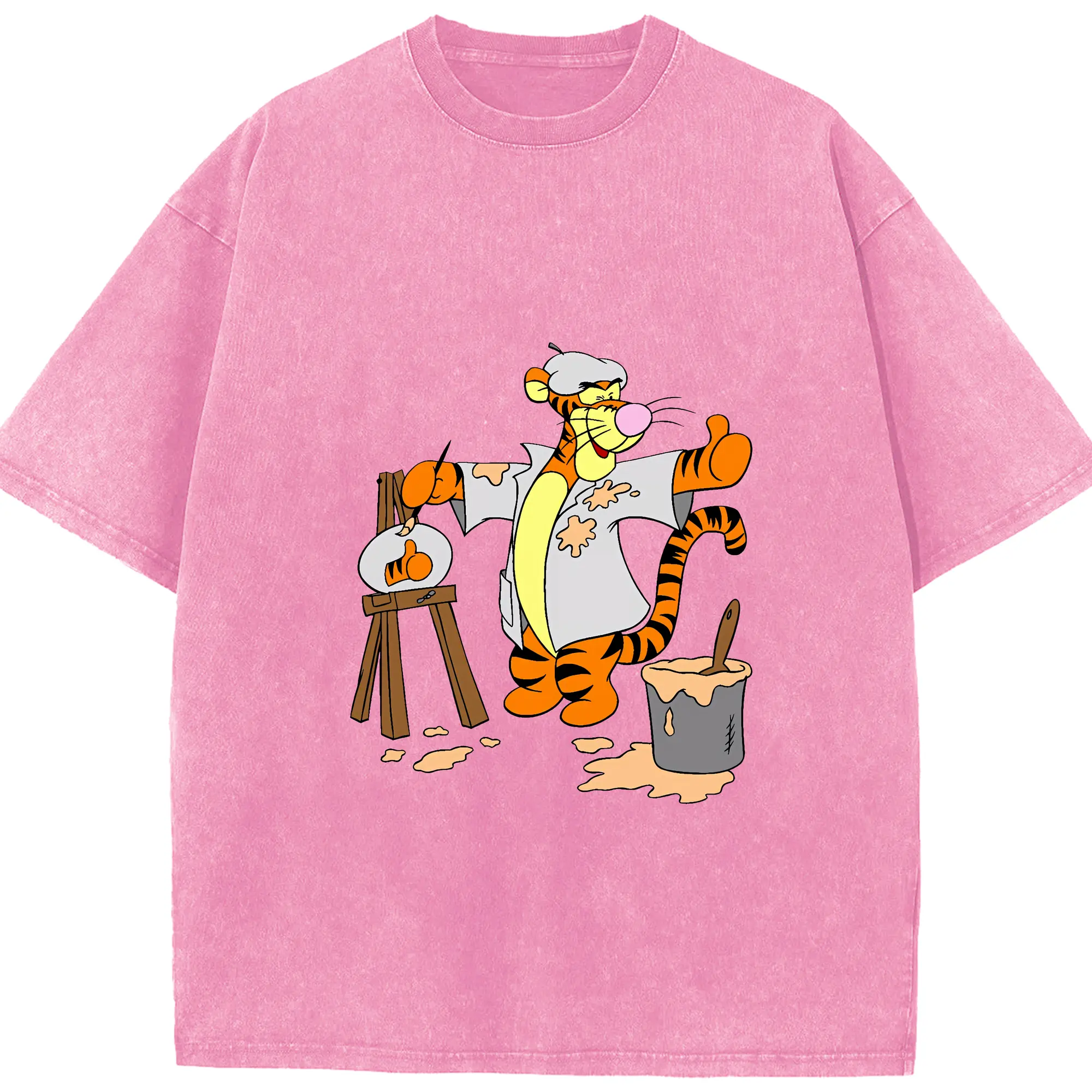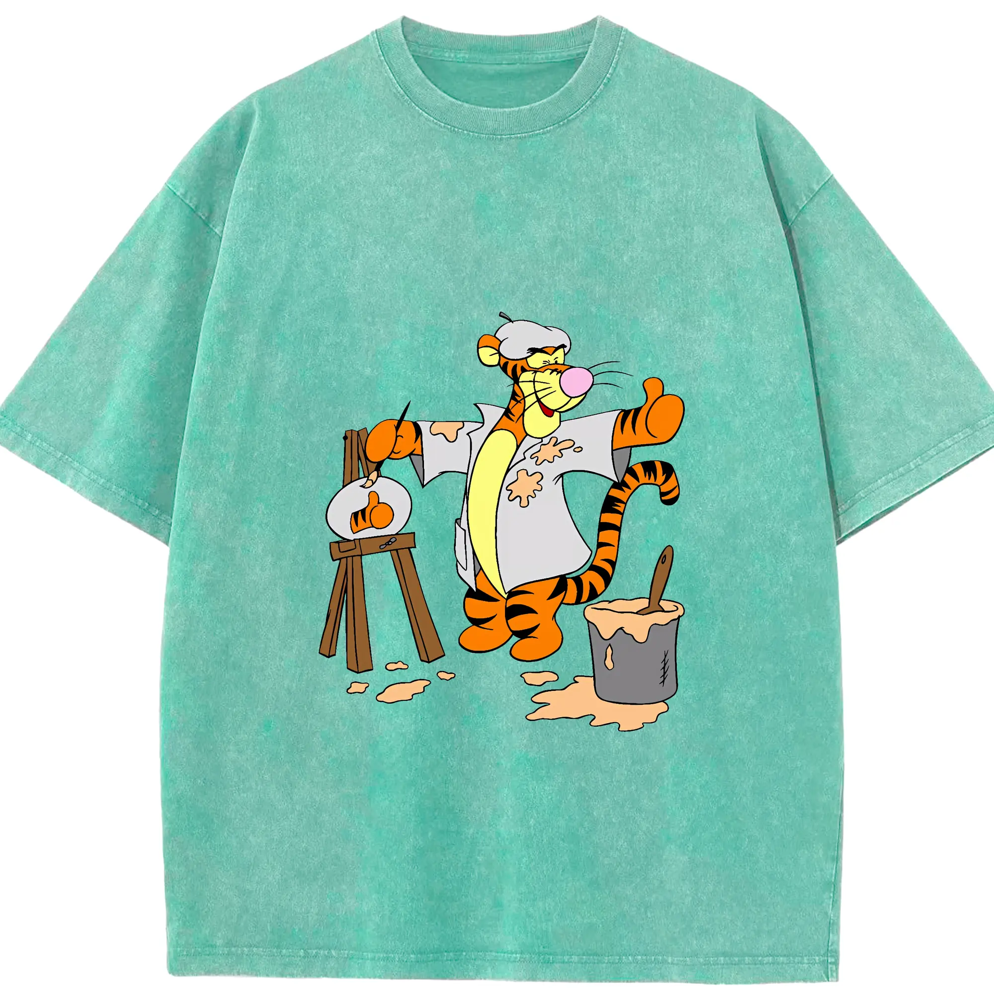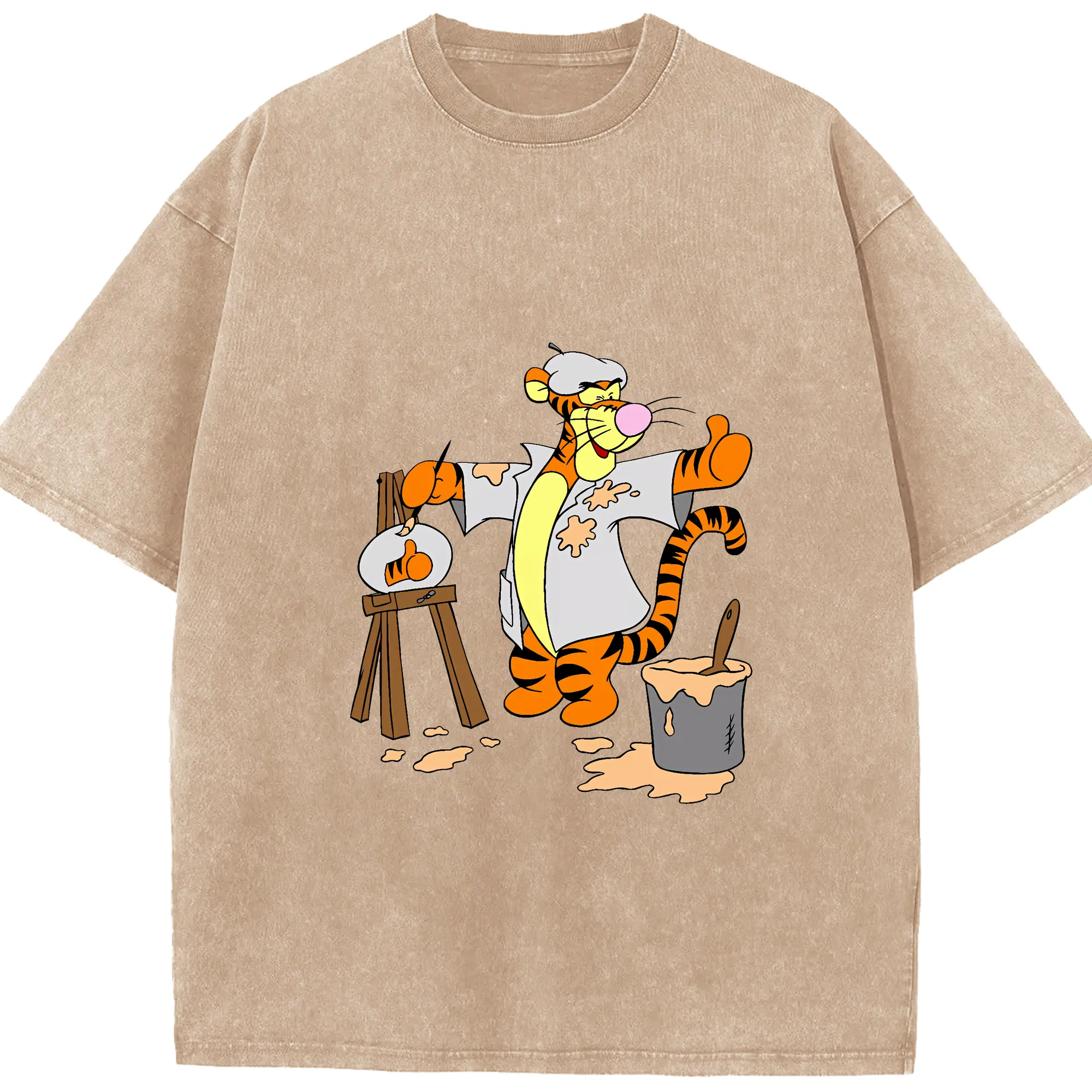 プーさん グッズ ティガー - 綿100% ヴィンテージ風 半袖Tシャツ ・ 背面プリント ・ 柔らか肌触り ・ 通気性 快適 ・ スポーツ カジュアル 外出用