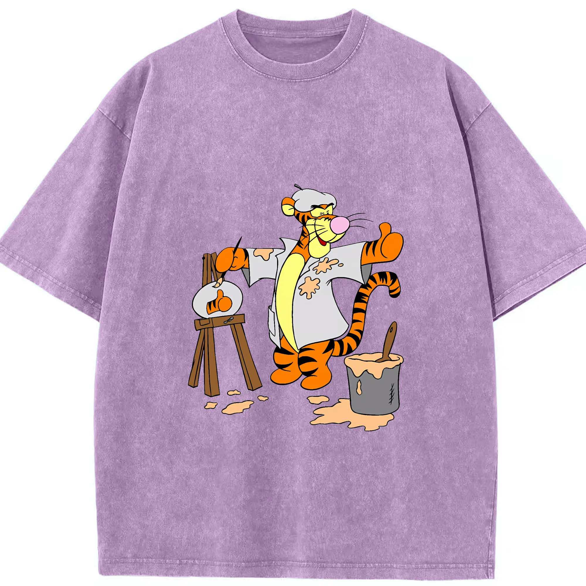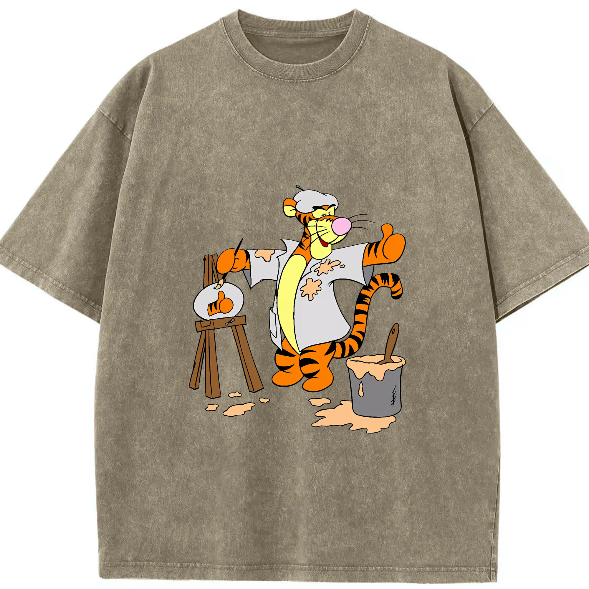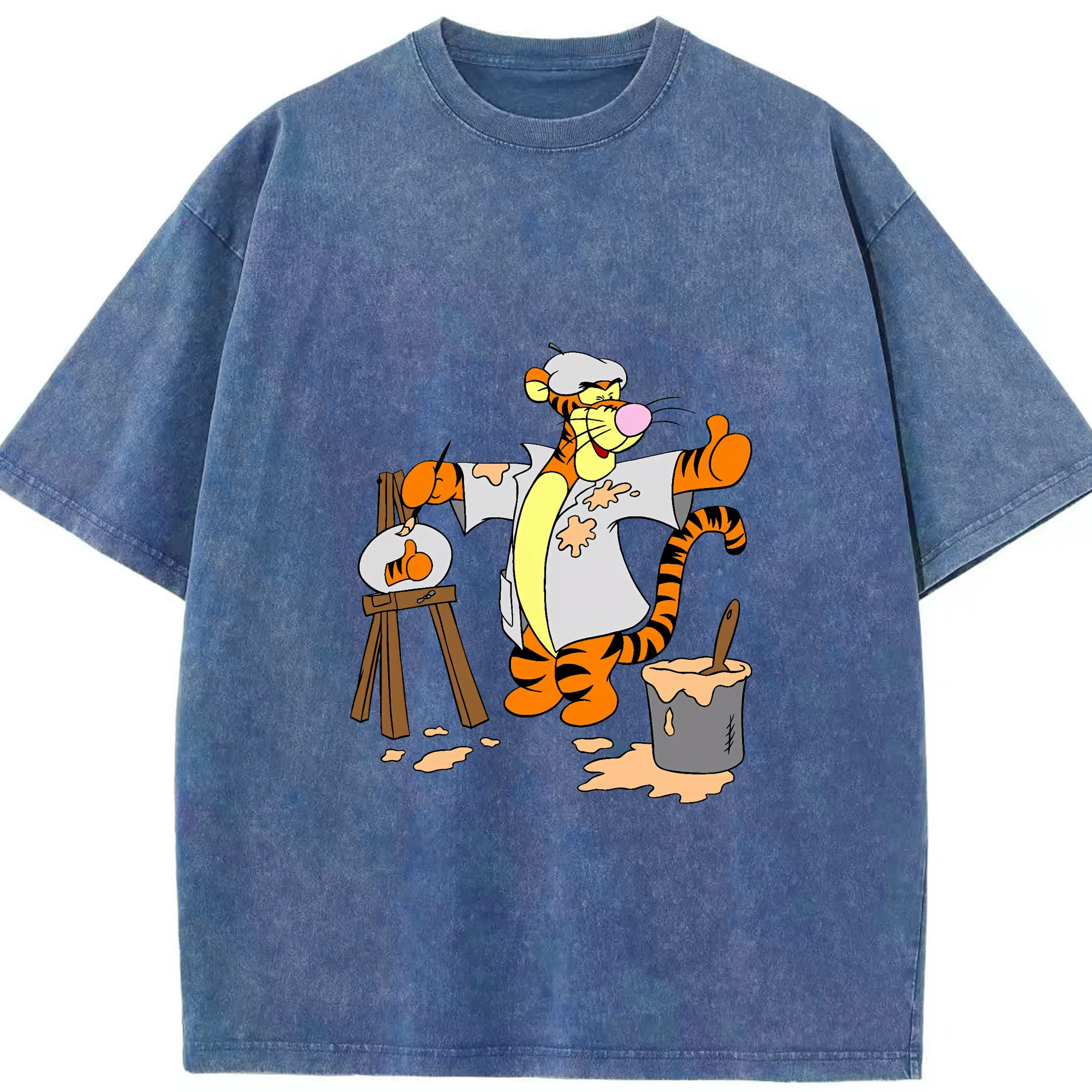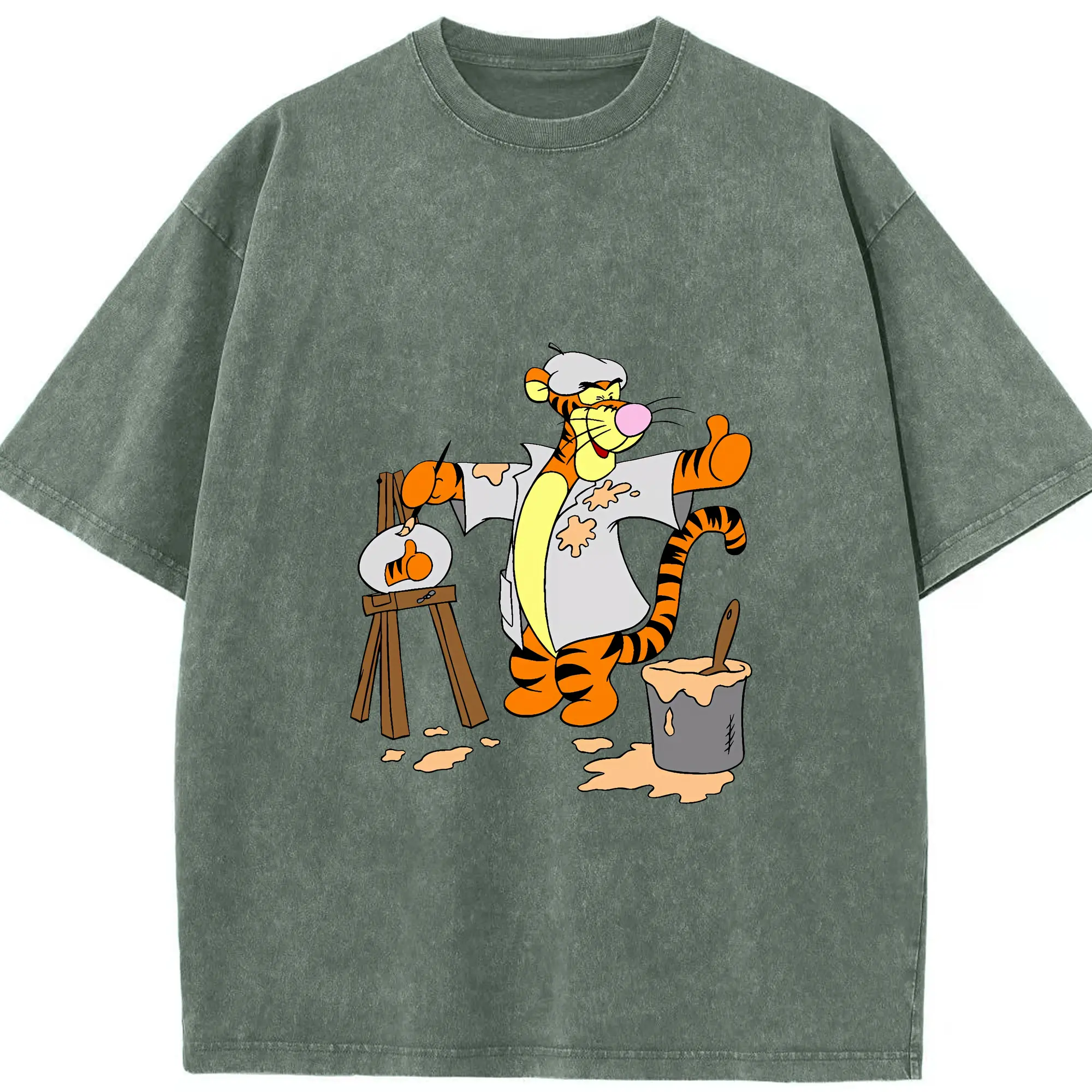 プーさん グッズ ティガー - 綿100% ヴィンテージ風 半袖Tシャツ ・ 背面プリント ・ 柔らか肌触り ・ 通気性 快適 ・ スポーツ カジュアル 外出用