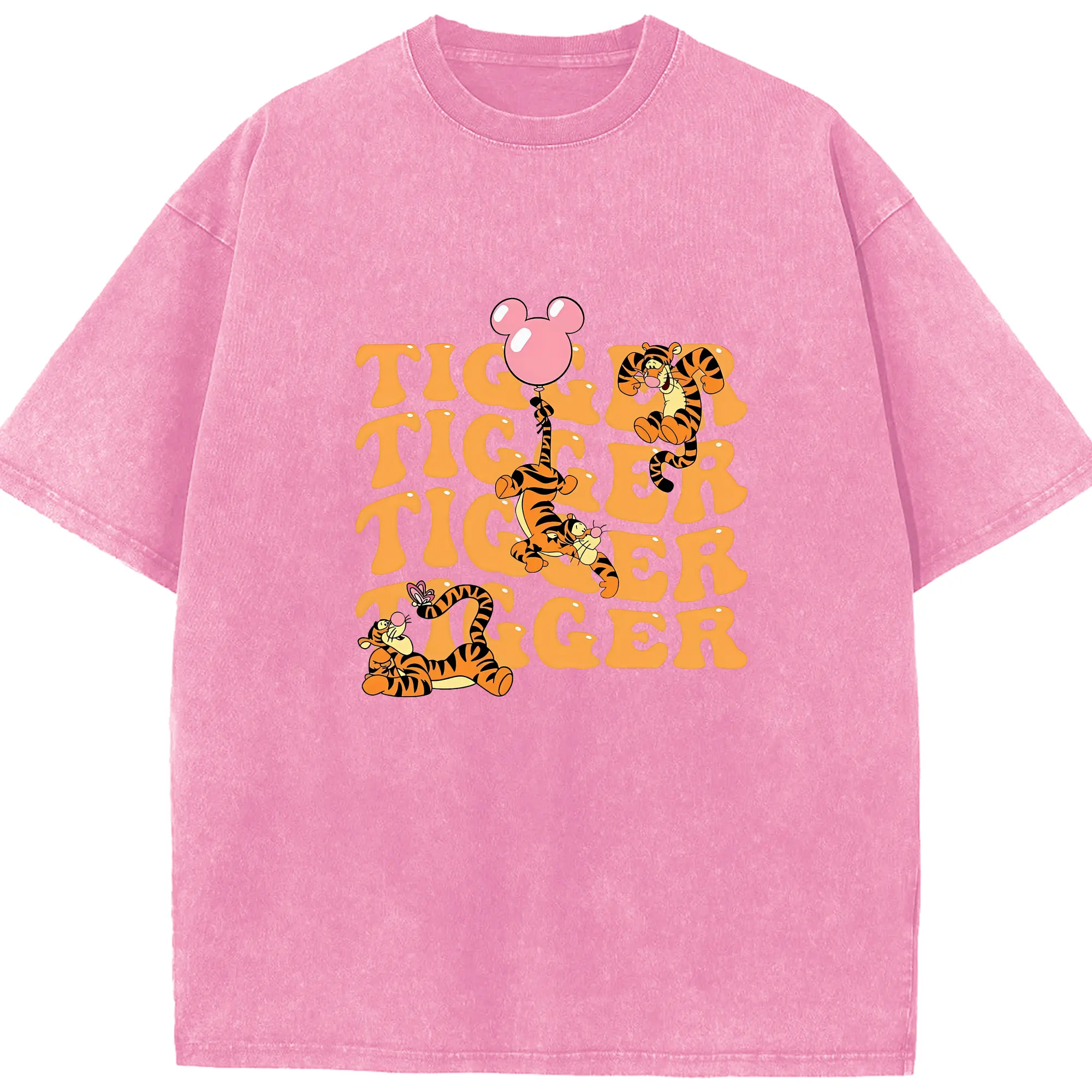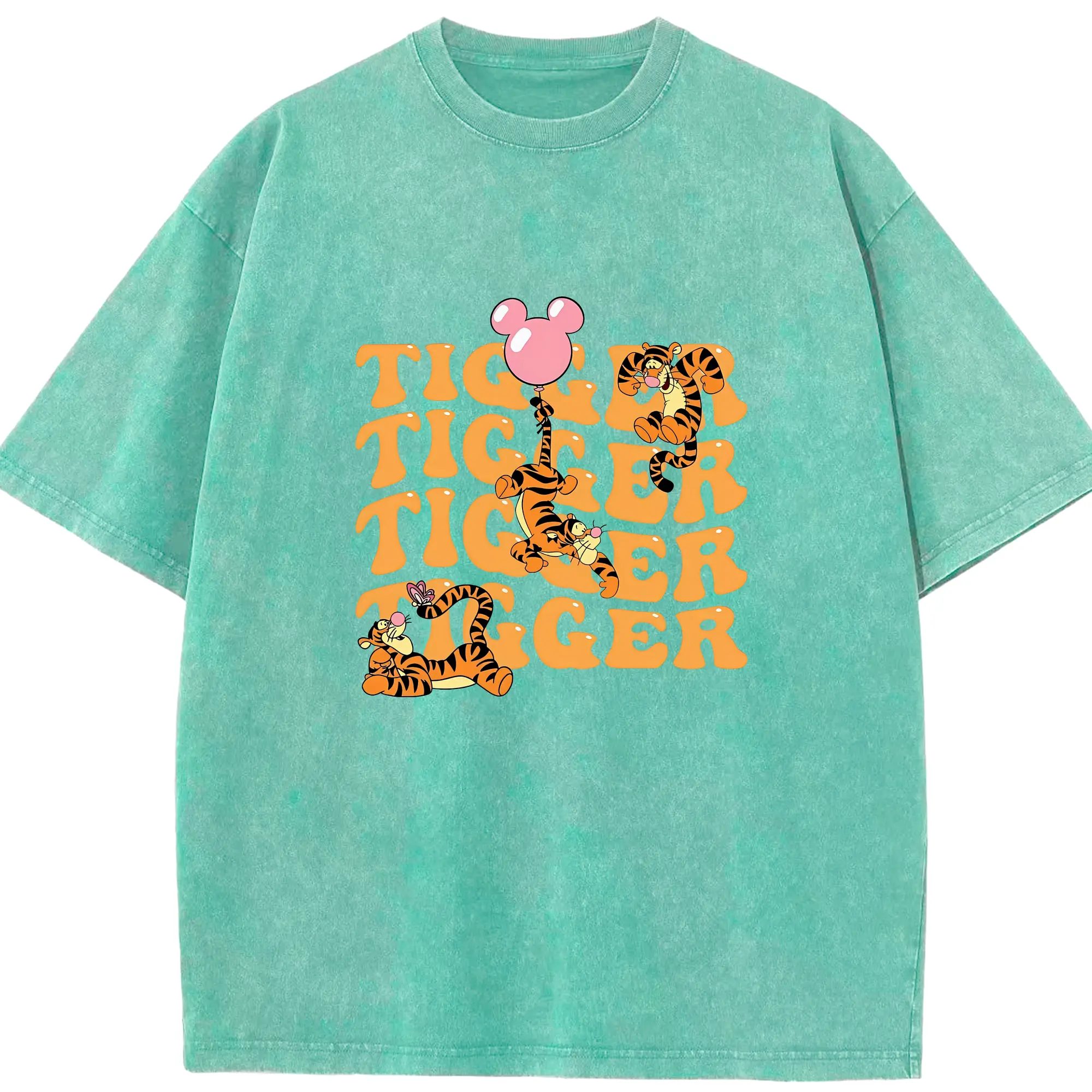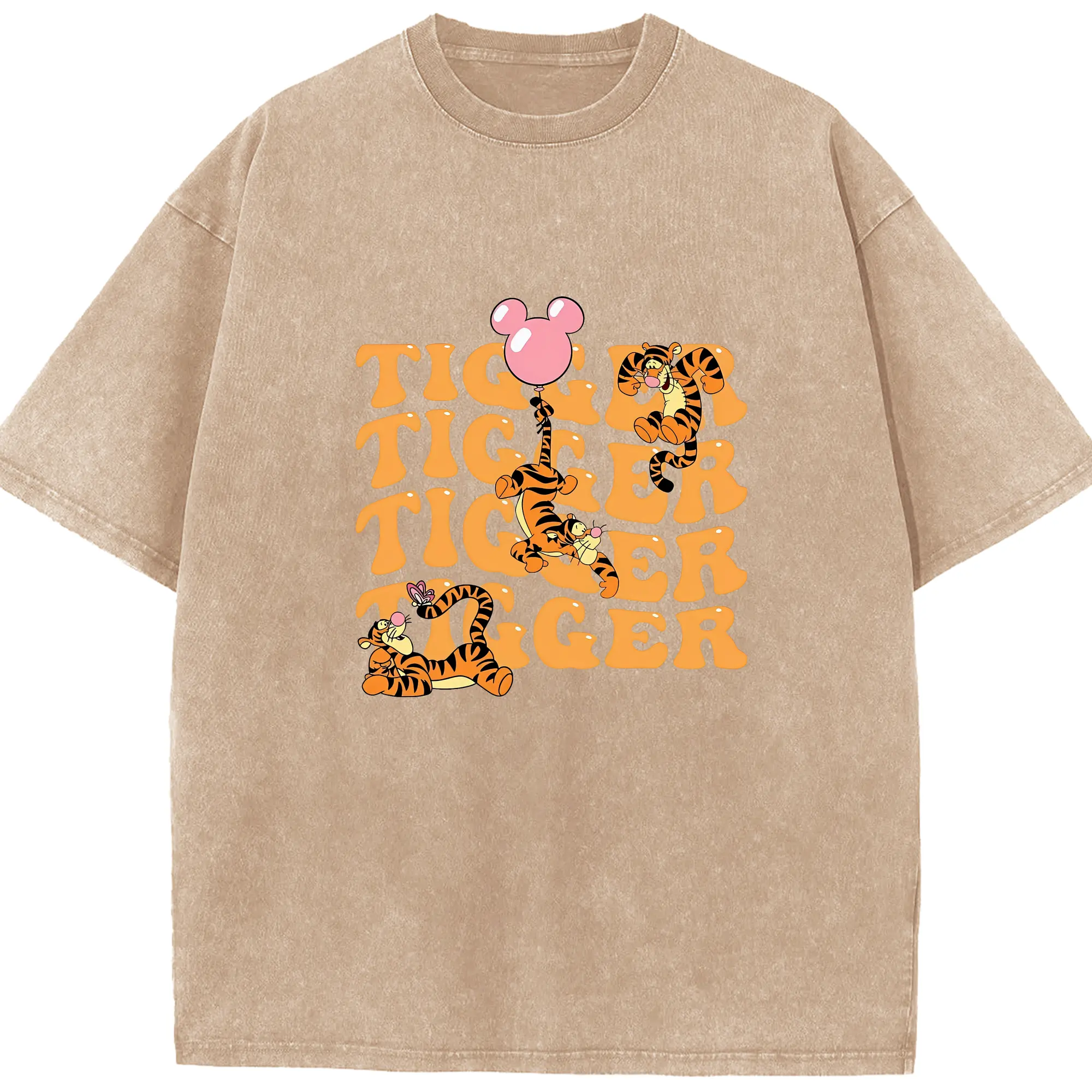 プーさん グッズ ティガー - 綿100% ヴィンテージ風 半袖Tシャツ ・ 背面プリント ・ 柔らか肌触り ・ 通気性 快適 ・ スポーツ カジュアル 外出用