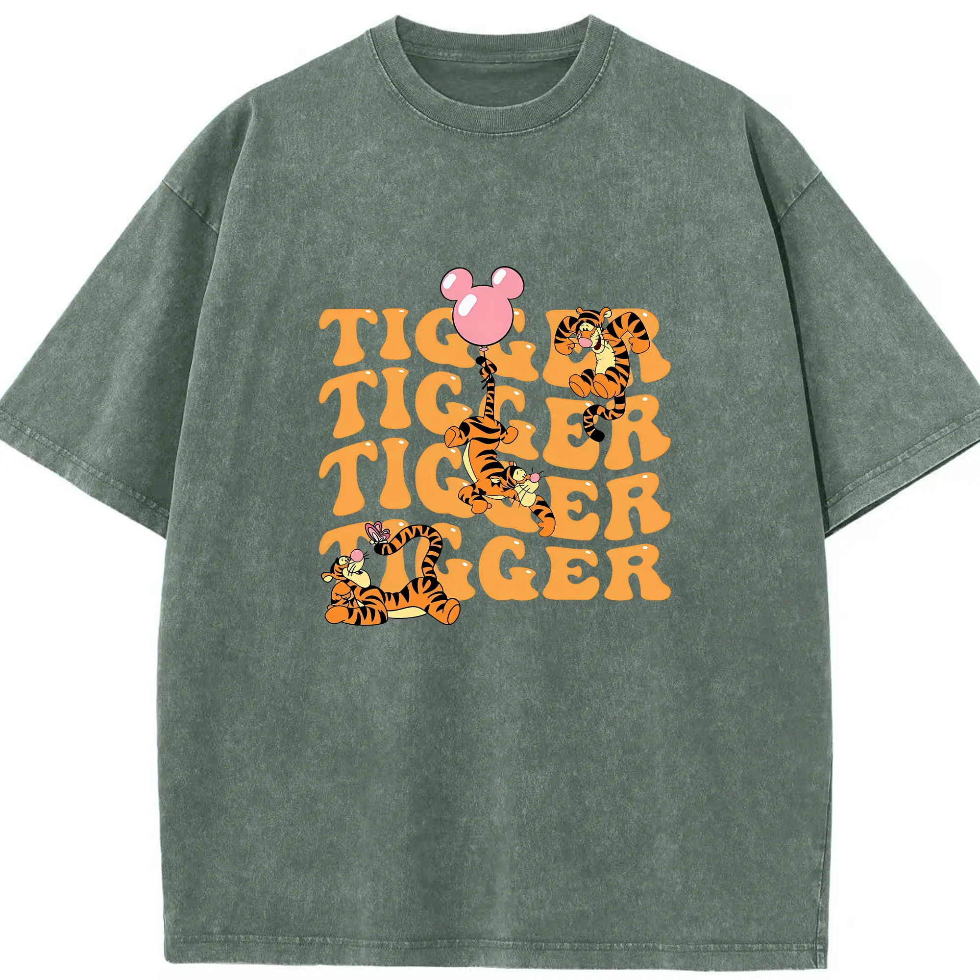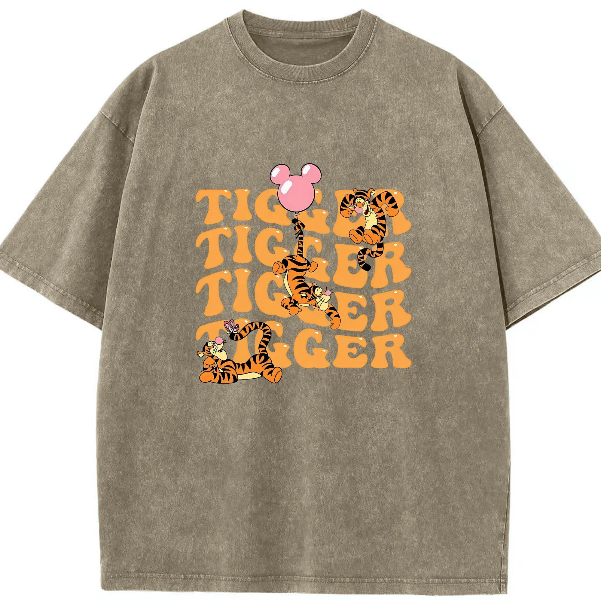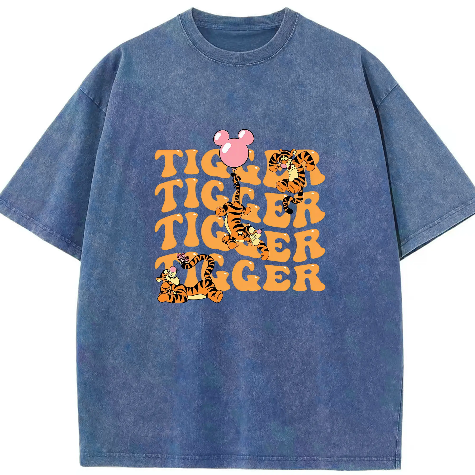 プーさん グッズ ティガー - 綿100% ヴィンテージ風 半袖Tシャツ ・ 背面プリント ・ 柔らか肌触り ・ 通気性 快適 ・ スポーツ カジュアル 外出用