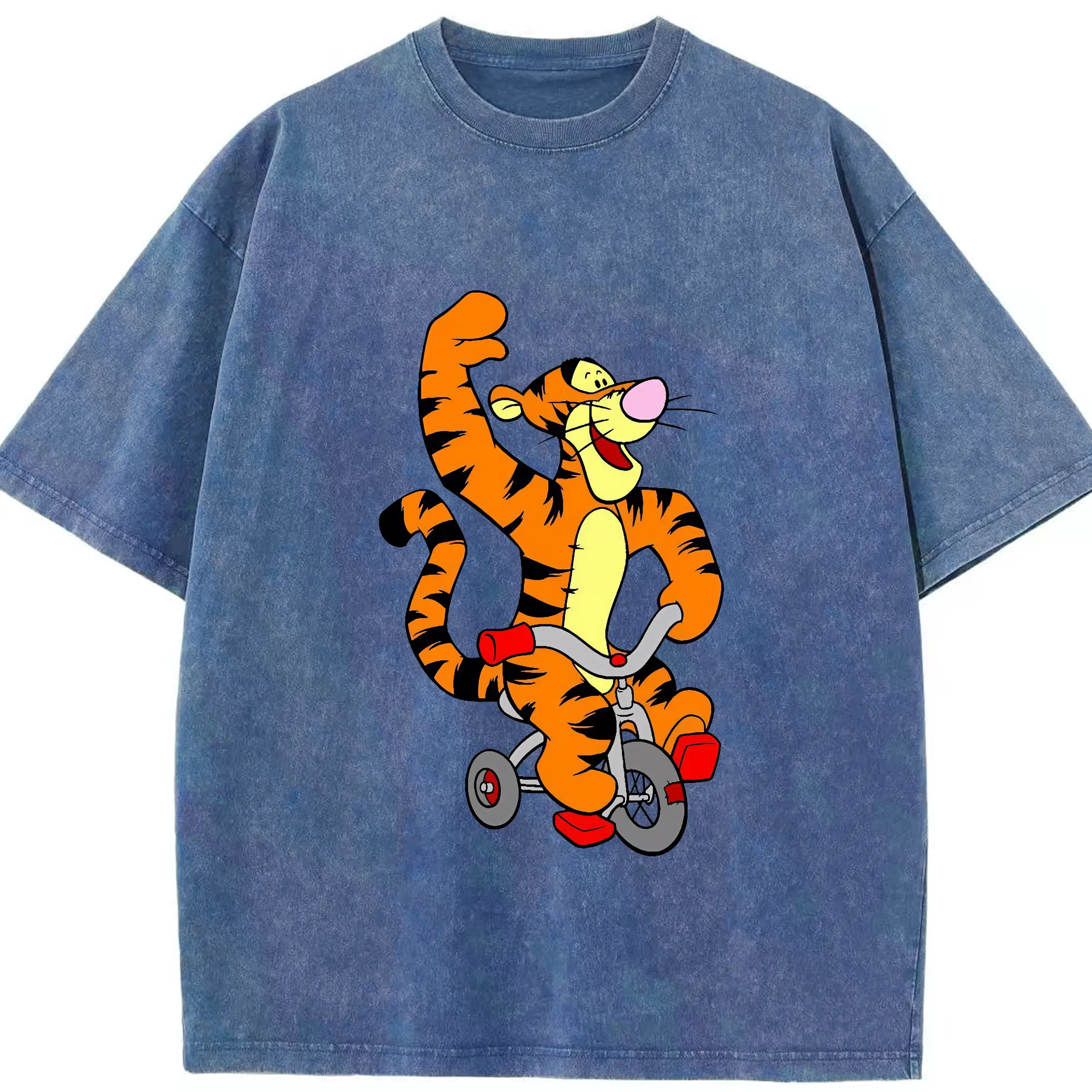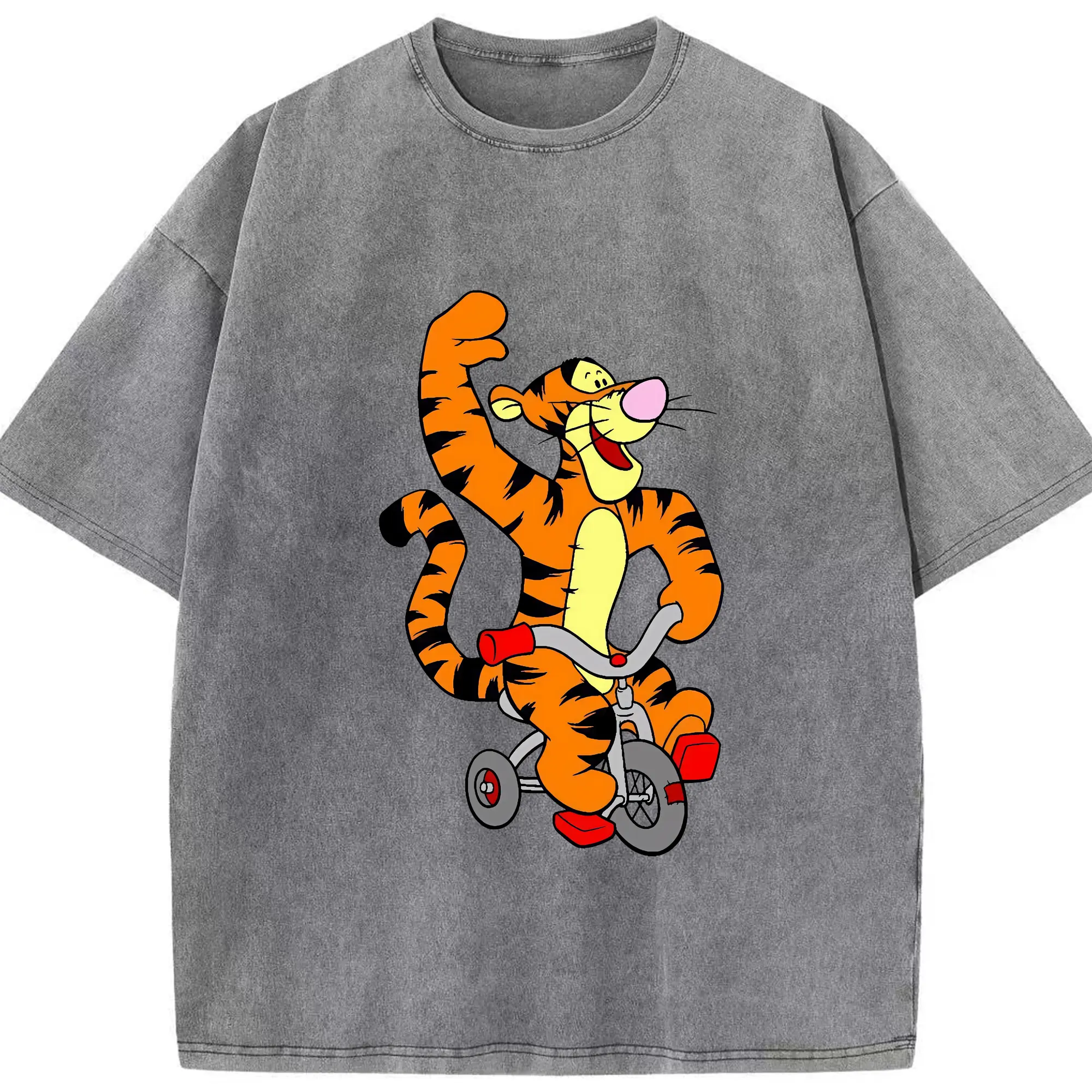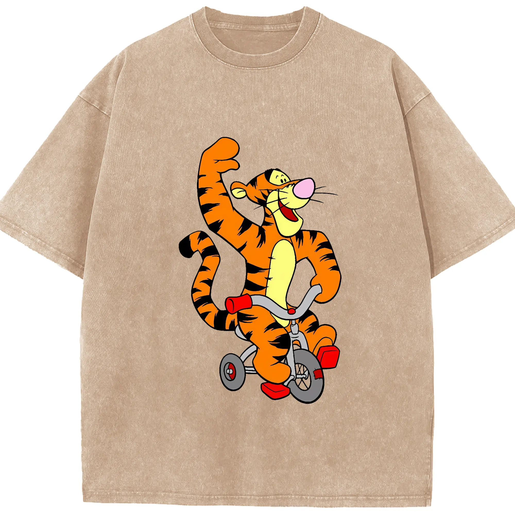 プーさん グッズ ティガー - 綿100% ヴィンテージ風 半袖Tシャツ ・ 背面プリント ・ 柔らか肌触り ・ 通気性 快適 ・ スポーツ カジュアル 外出用