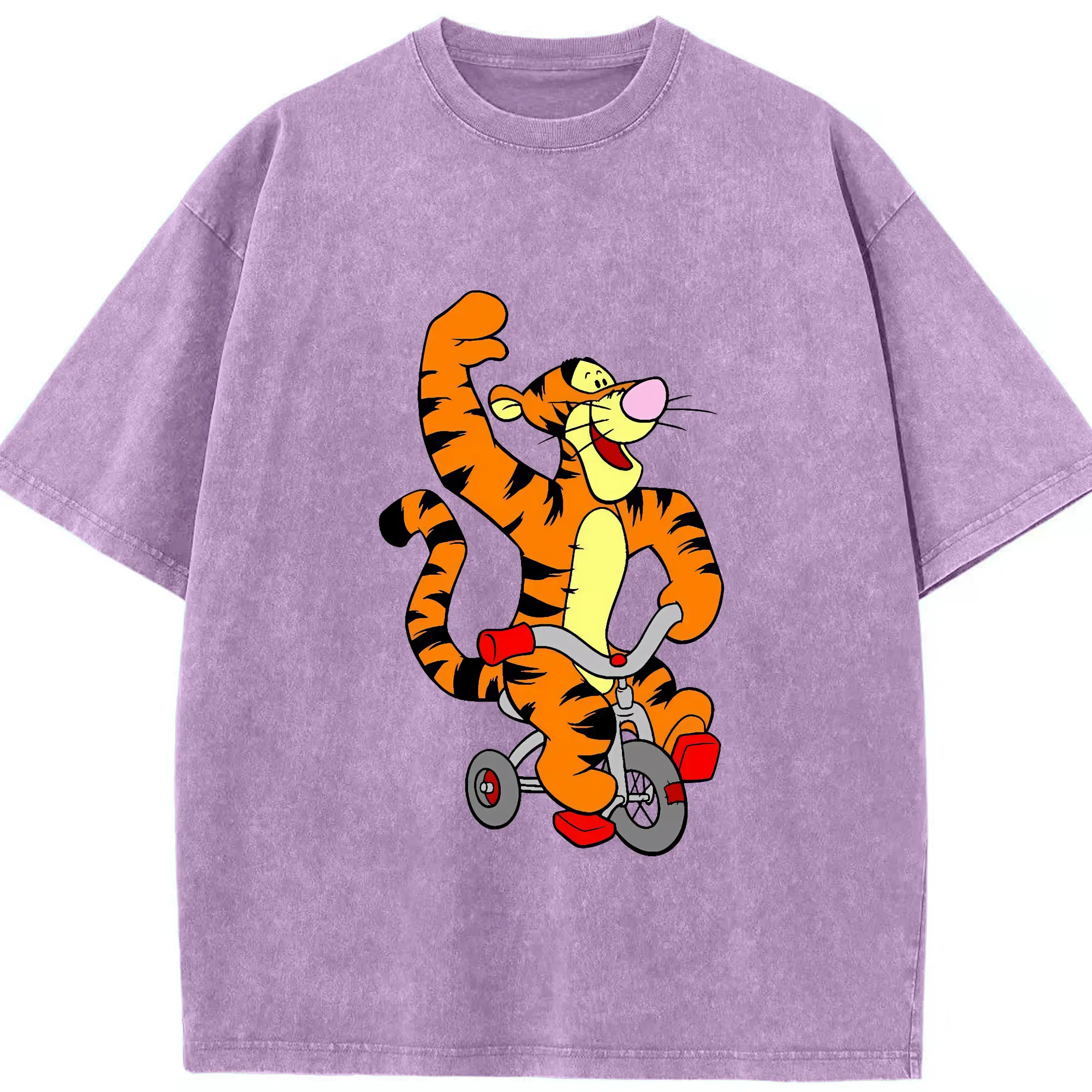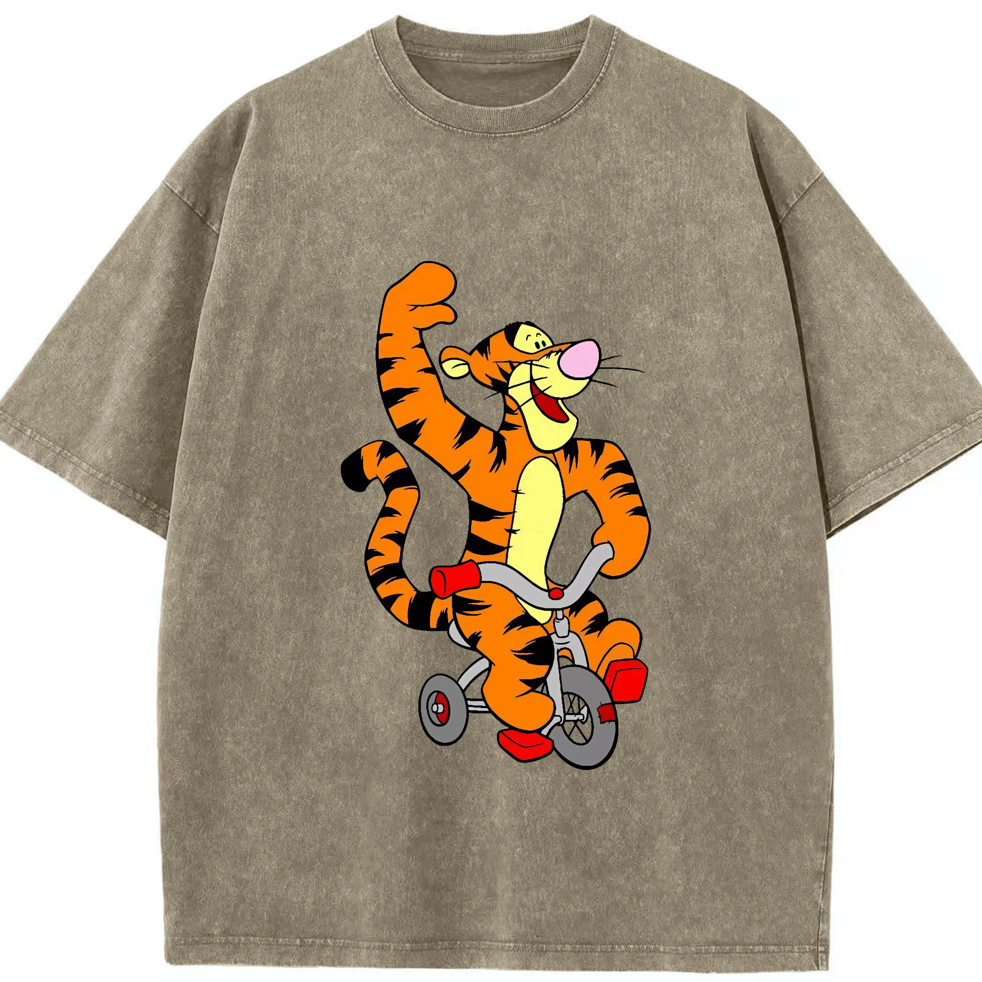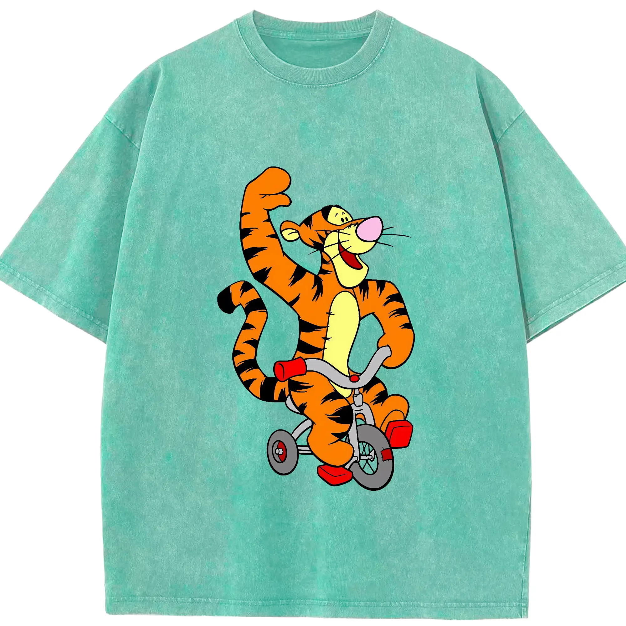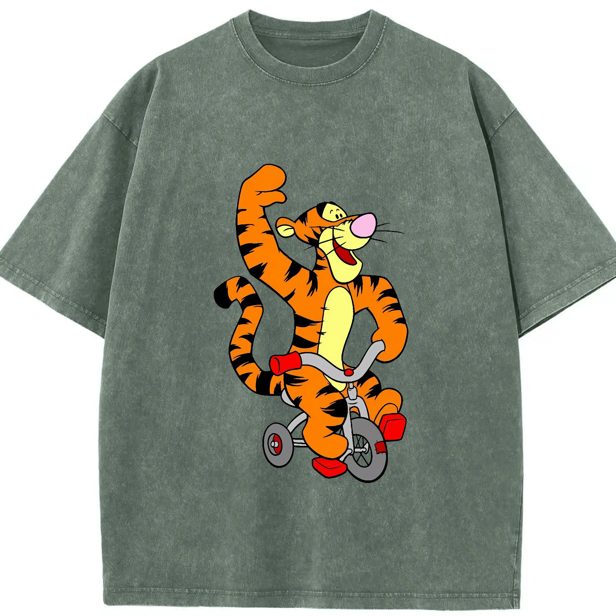 プーさん グッズ ティガー - 綿100% ヴィンテージ風 半袖Tシャツ ・ 背面プリント ・ 柔らか肌触り ・ 通気性 快適 ・ スポーツ カジュアル 外出用
