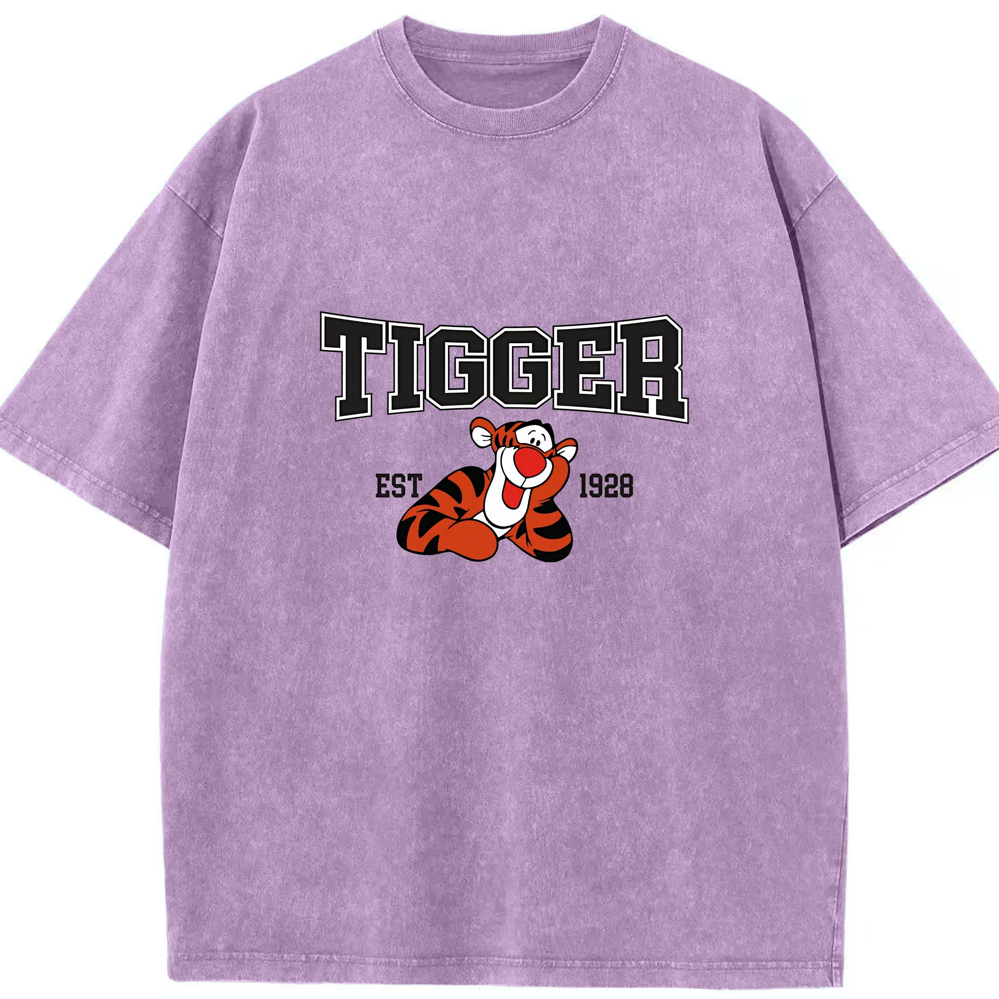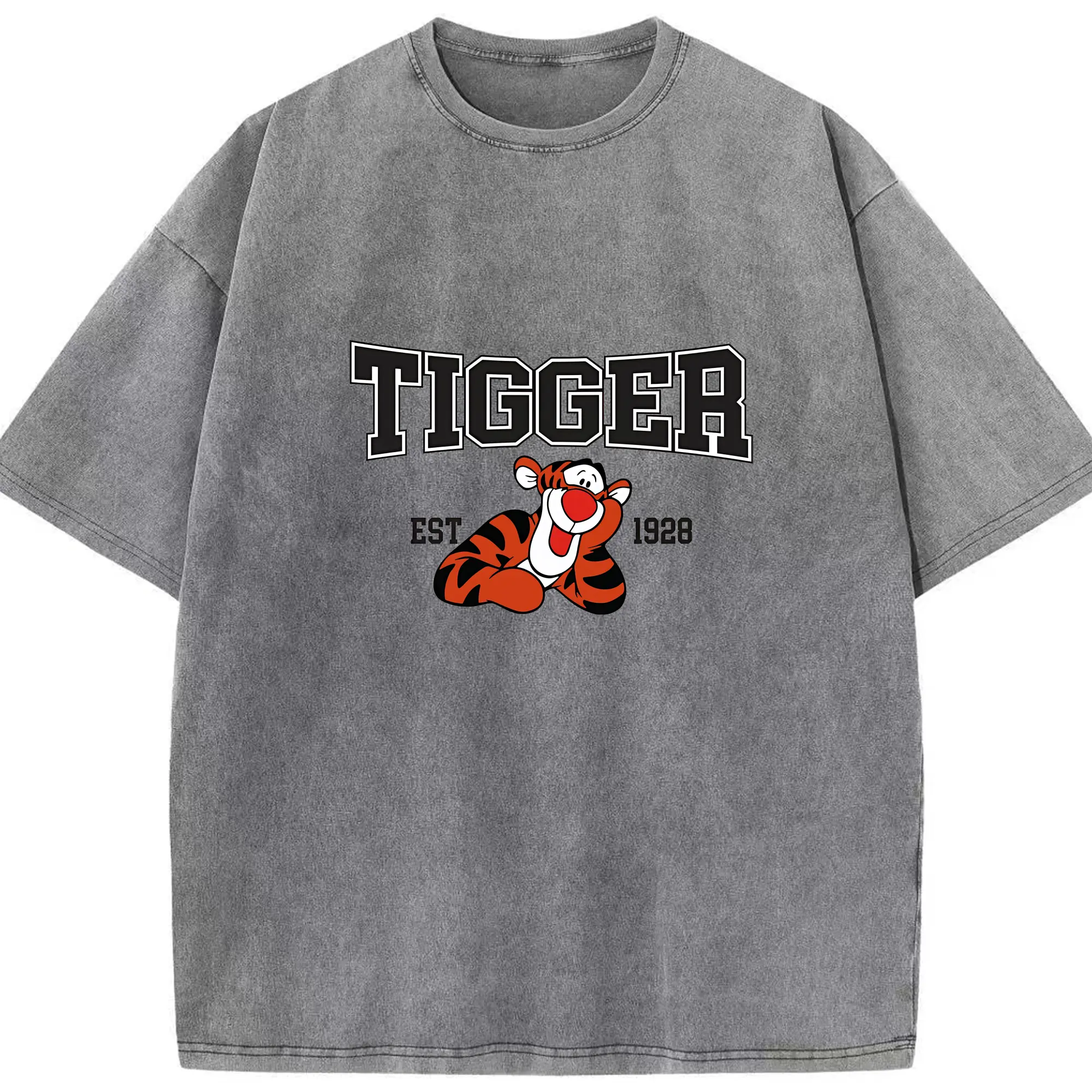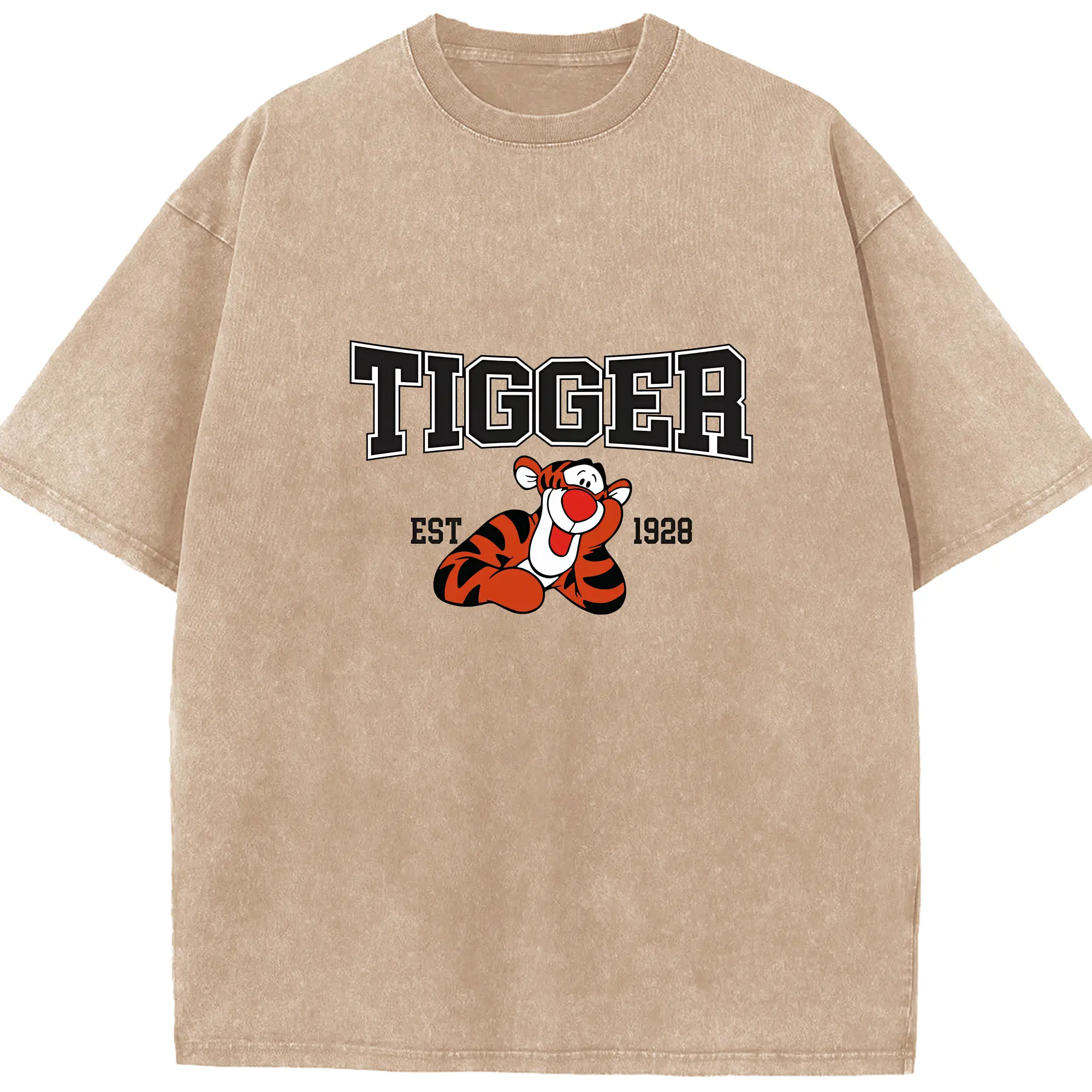 プーさん グッズ ティガー - 綿100% ヴィンテージ風 半袖Tシャツ ・ 背面プリント ・ 柔らか肌触り ・ 通気性 快適 ・ スポーツ カジュアル 外出用