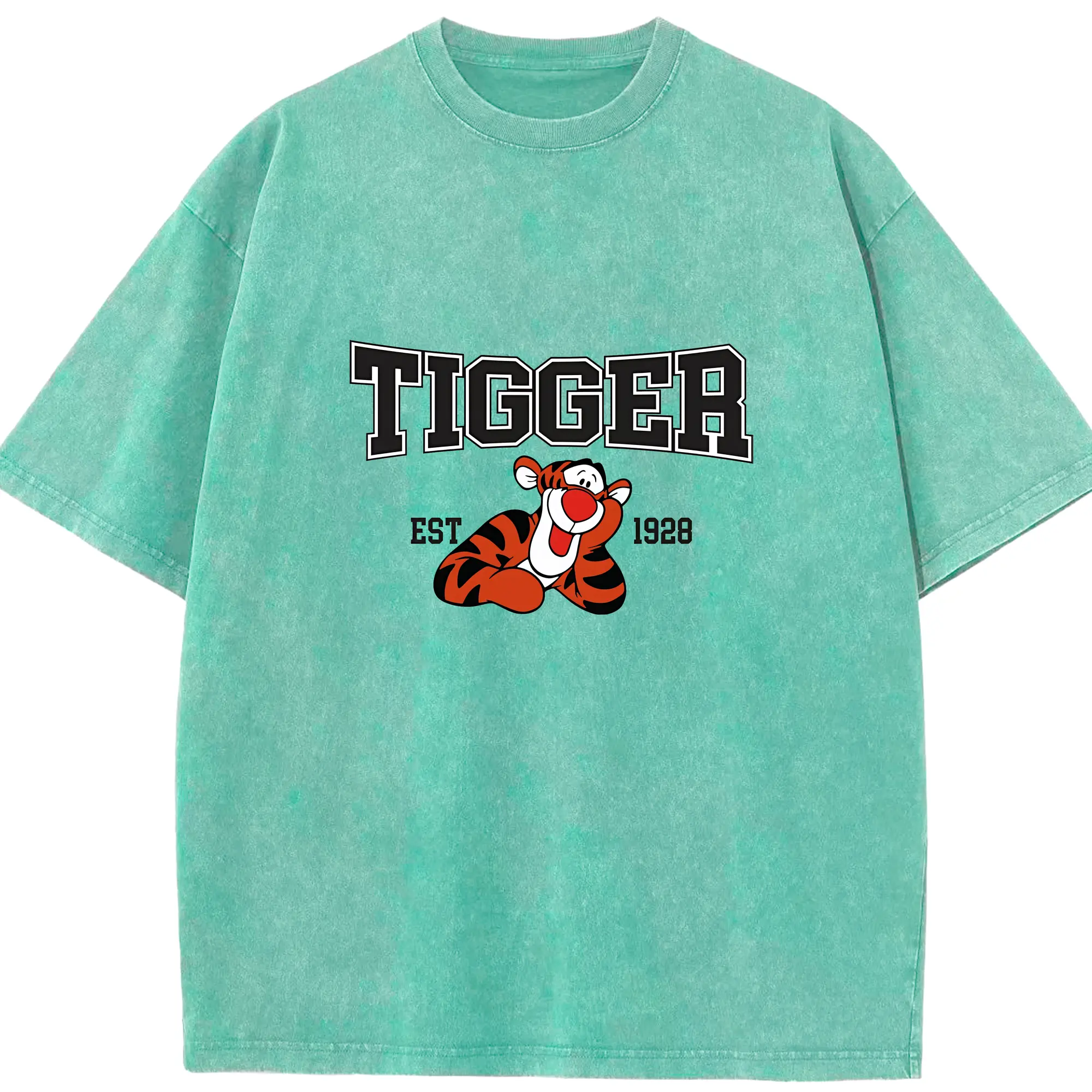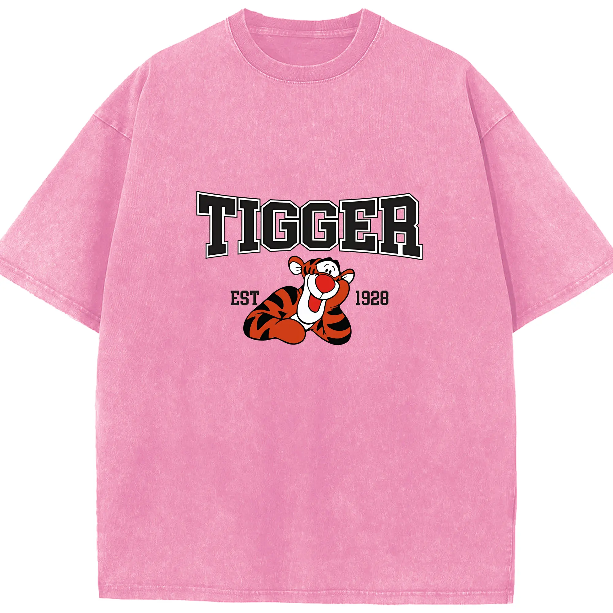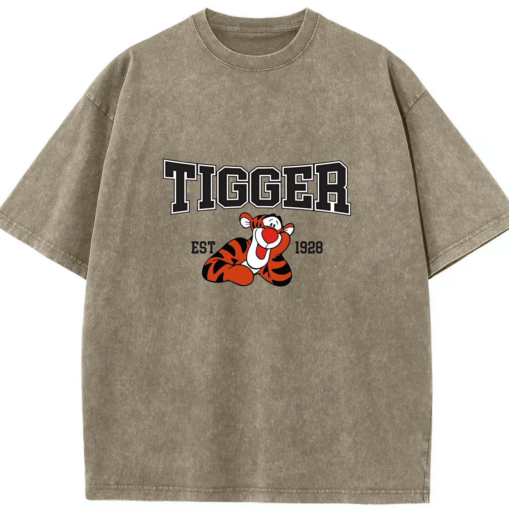 プーさん グッズ ティガー - 綿100% ヴィンテージ風 半袖Tシャツ ・ 背面プリント ・ 柔らか肌触り ・ 通気性 快適 ・ スポーツ カジュアル 外出用