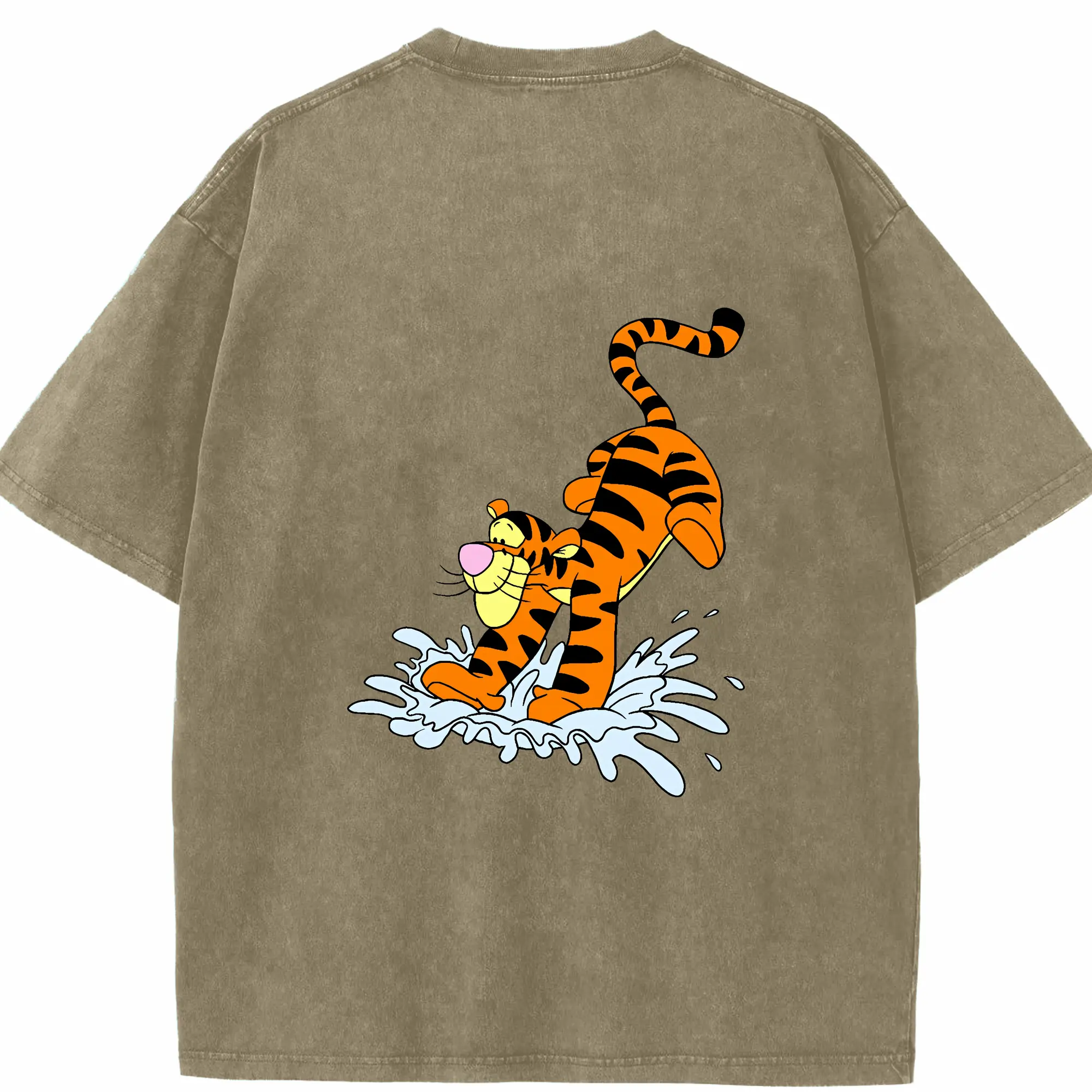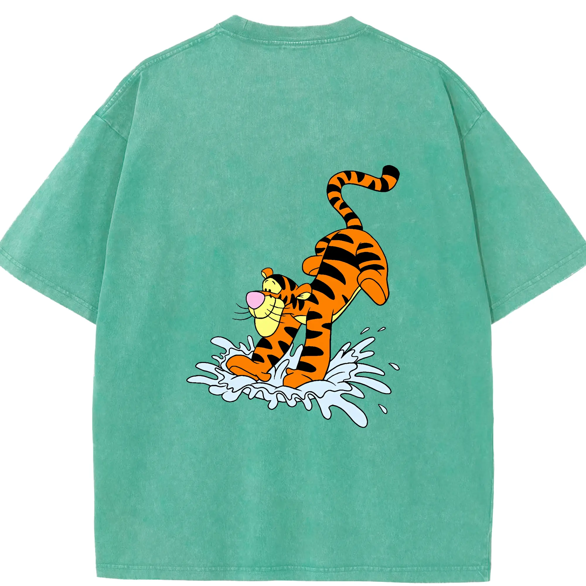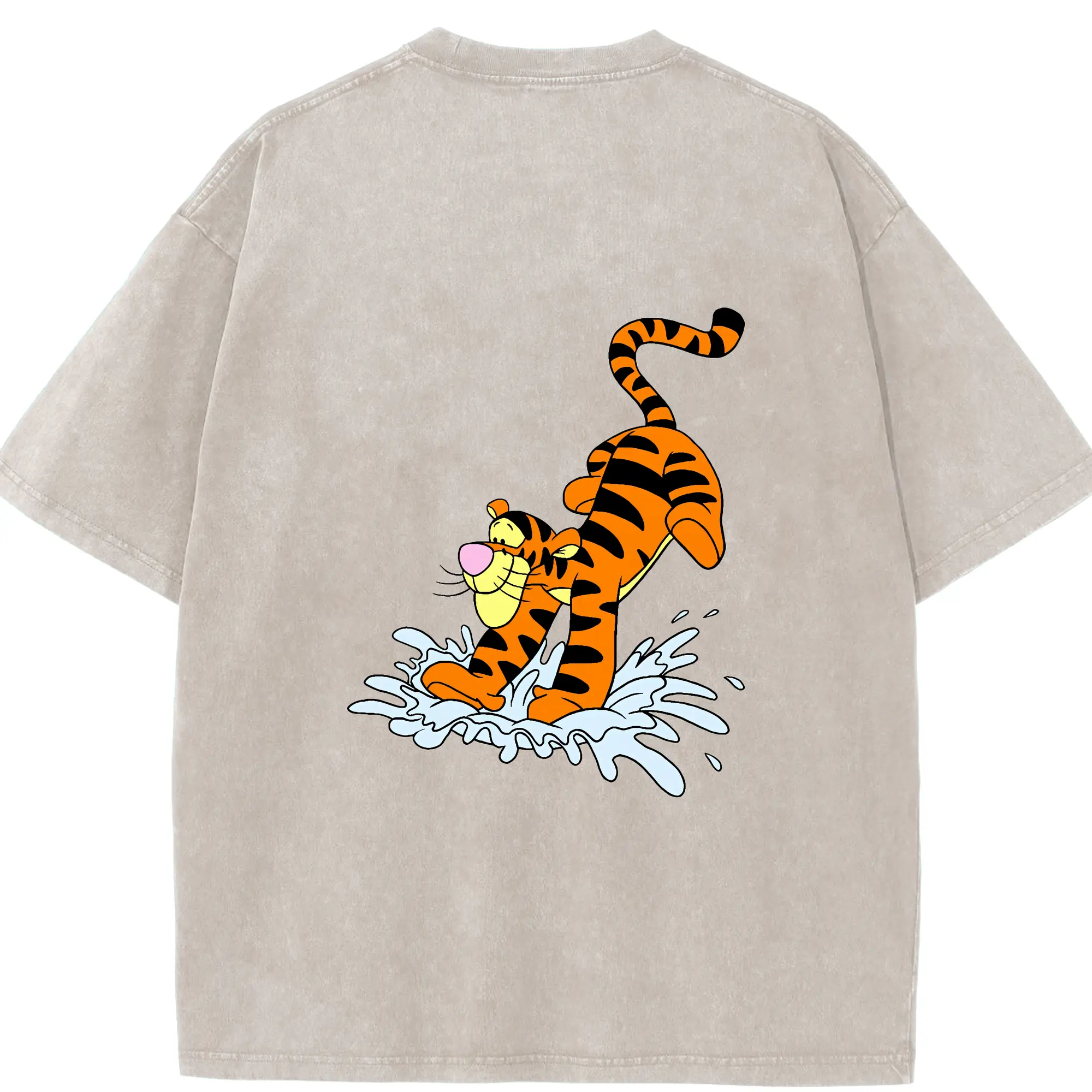 プーさん グッズ ティガー - 綿100% ヴィンテージ風 半袖Tシャツ ・ フロントプリント ・ 柔らか肌触り ・ 通気性 快適 ・ スポーツ カジュアル 外出用