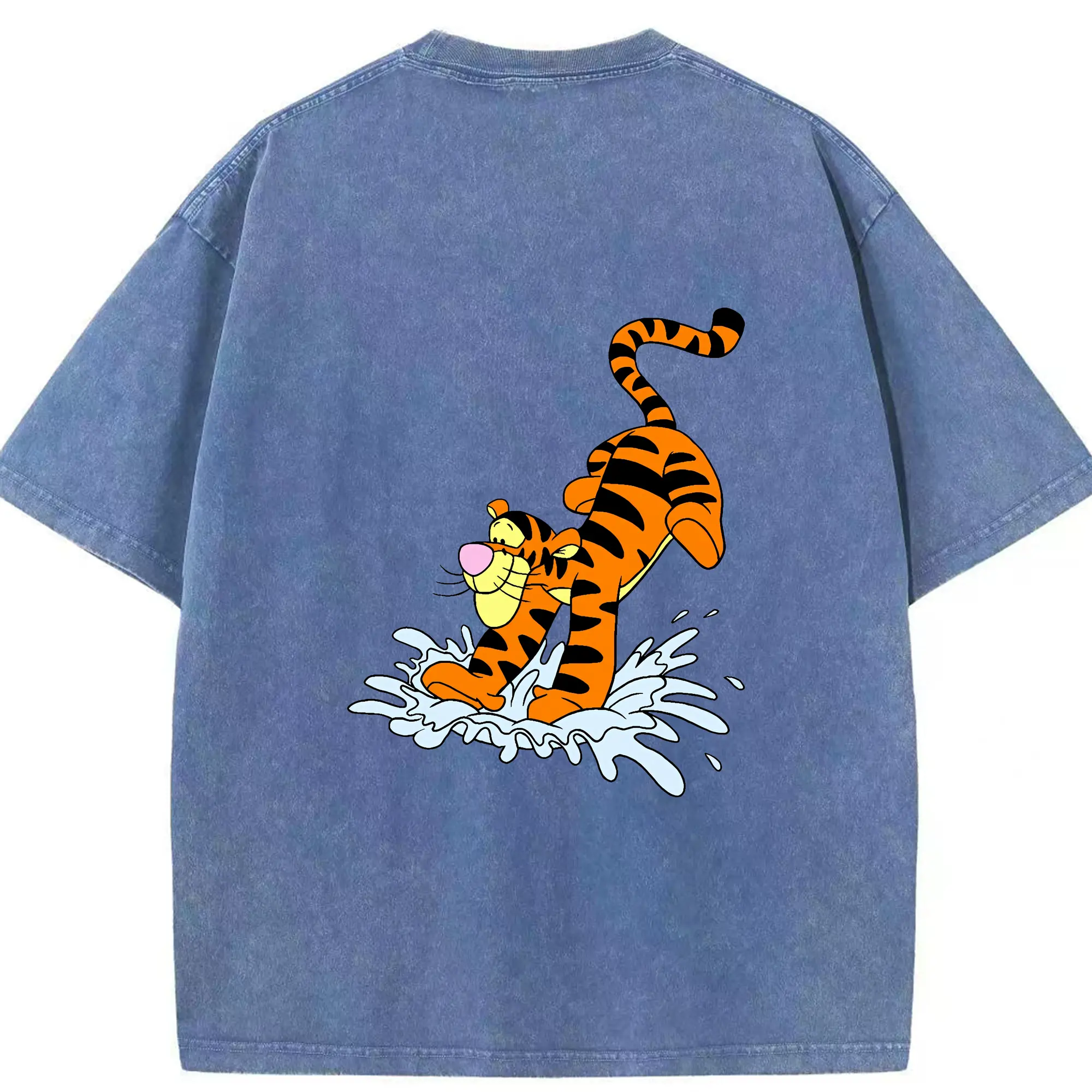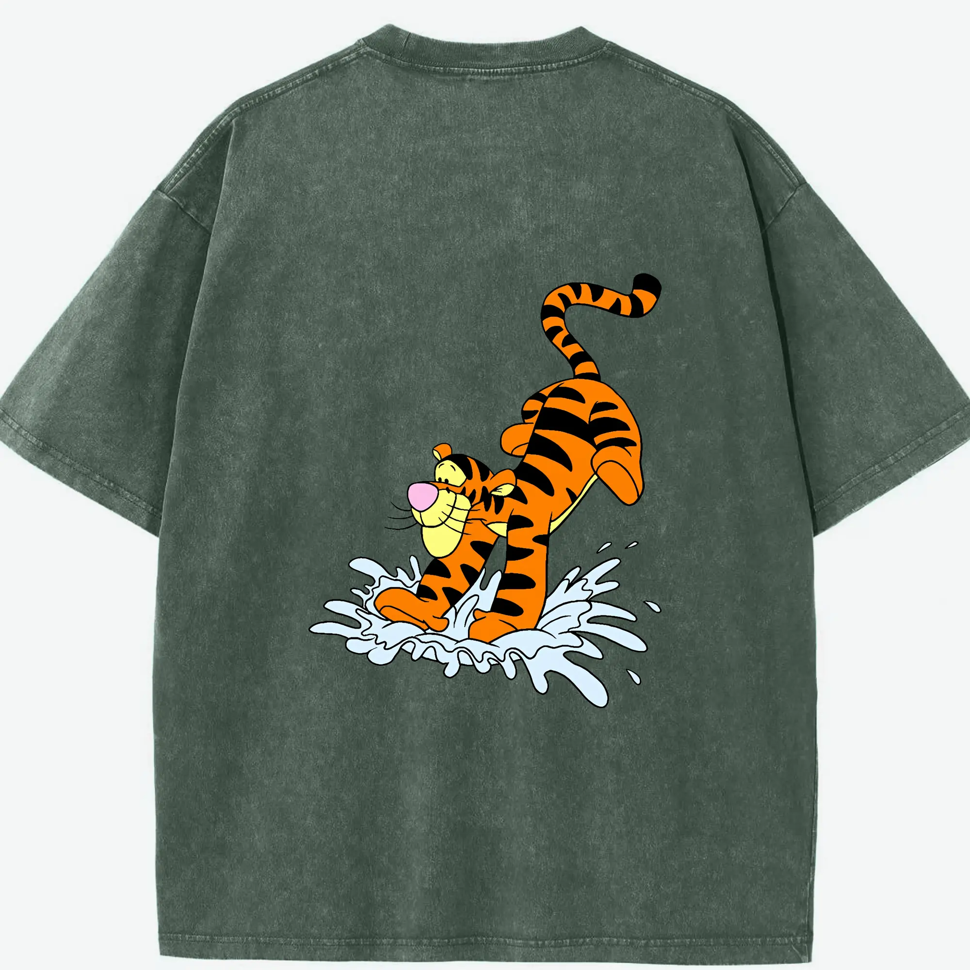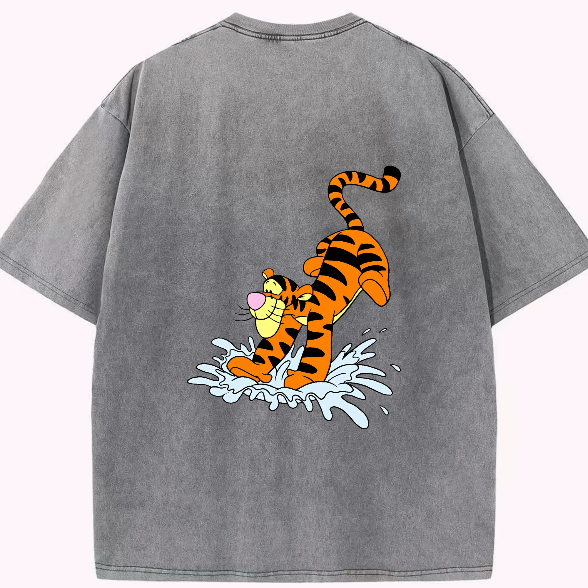 プーさん グッズ ティガー - 綿100% ヴィンテージ風 半袖Tシャツ ・ フロントプリント ・ 柔らか肌触り ・ 通気性 快適 ・ スポーツ カジュアル 外出用