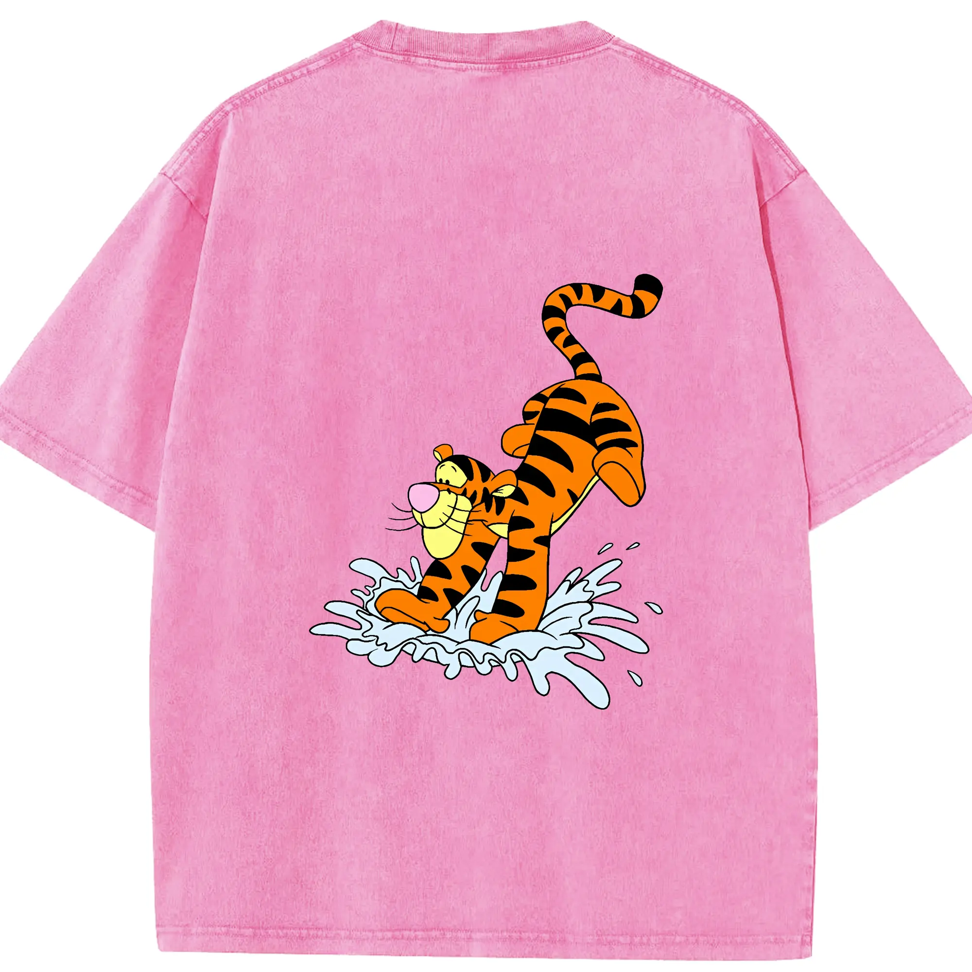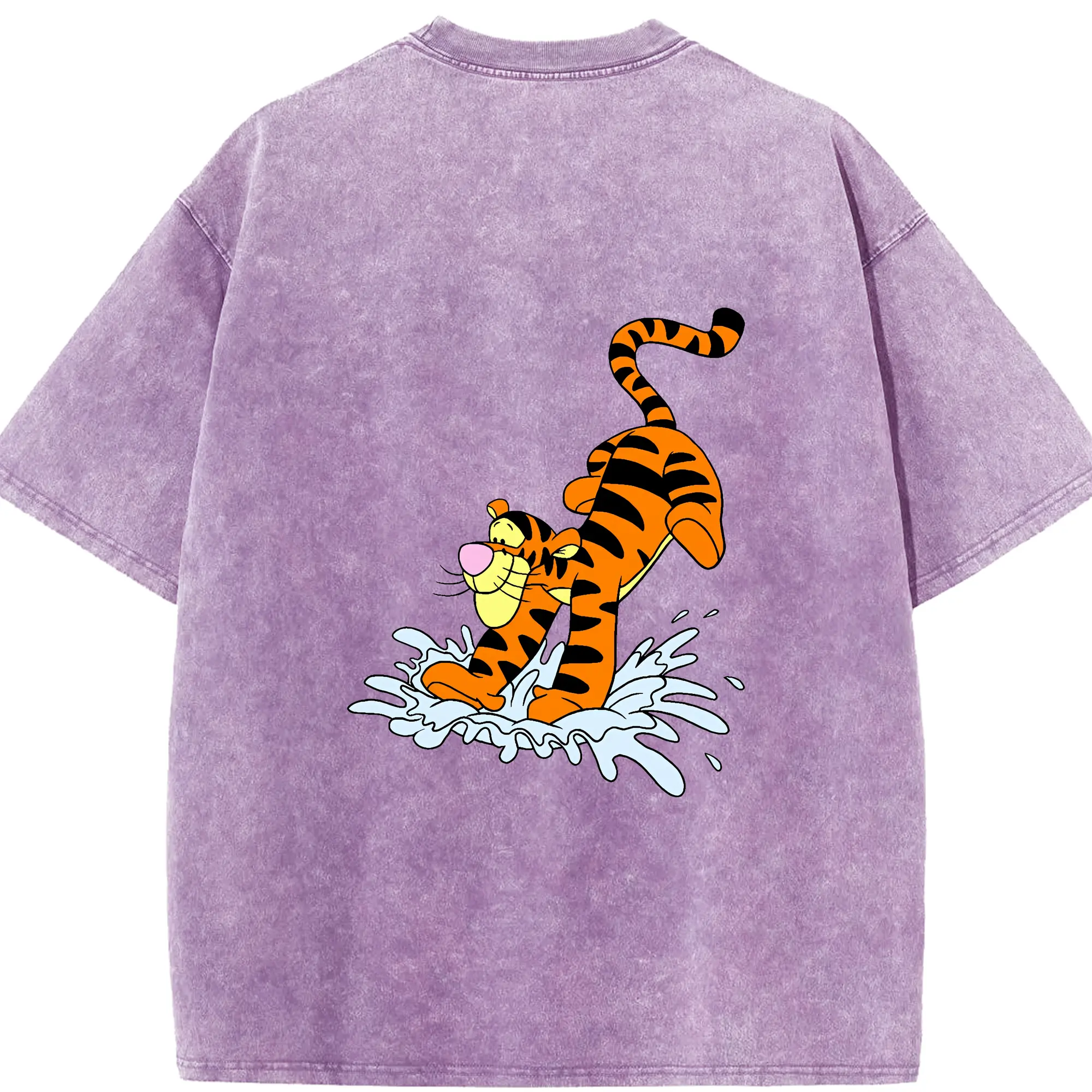 プーさん グッズ ティガー - 綿100% 半袖Tシャツ ・ バックプリント ・ 快適 通気性 ・ 日常使い 散歩 スポーツ用