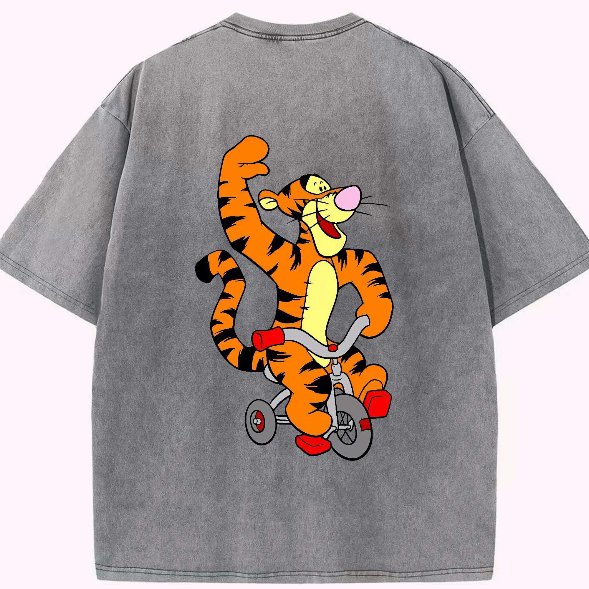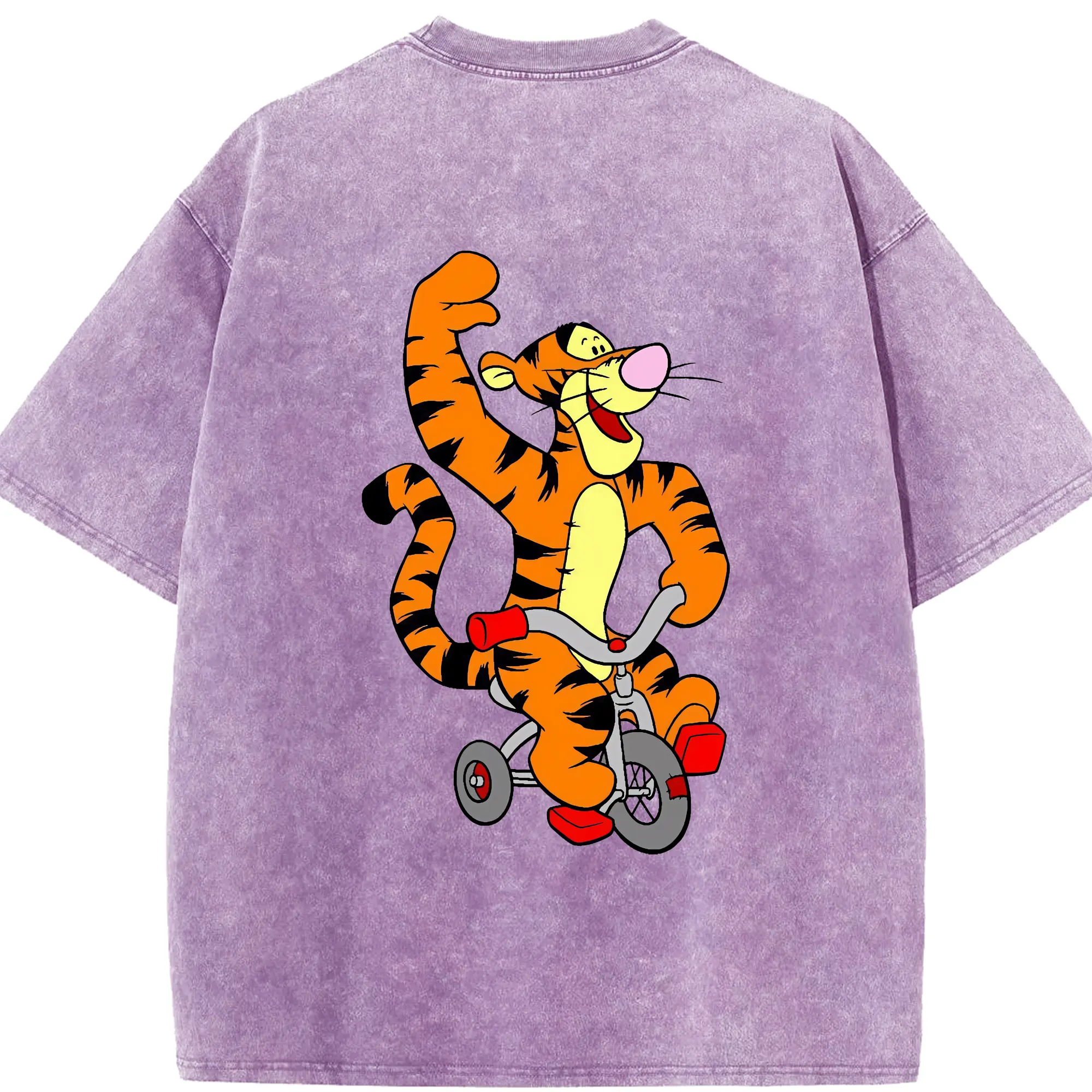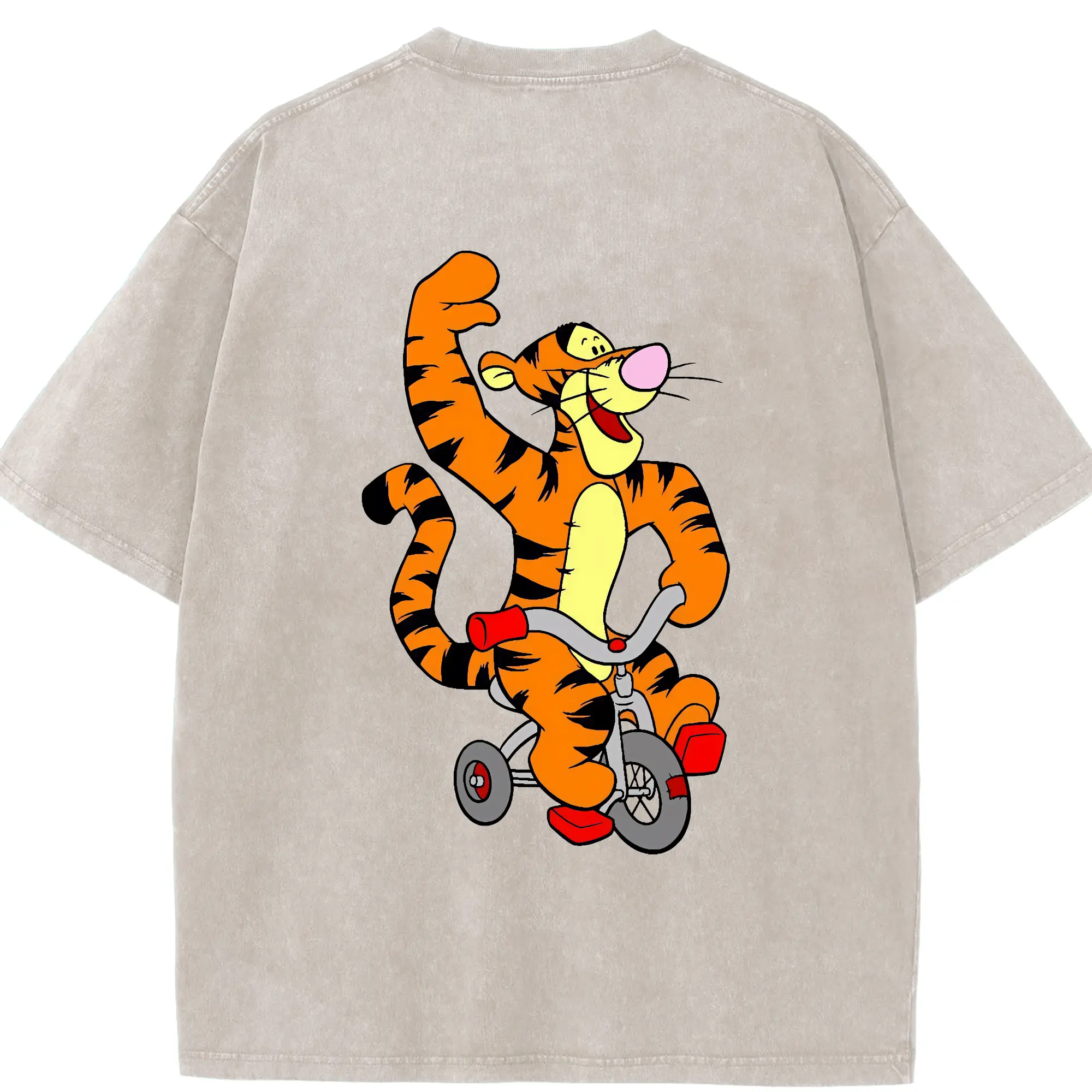 プーさん グッズ ティガー - 綿100% ヴィンテージ風 半袖Tシャツ ・ フロントプリント ・ 柔らか肌触り ・ 通気性 快適 ・ スポーツ カジュアル 外出用